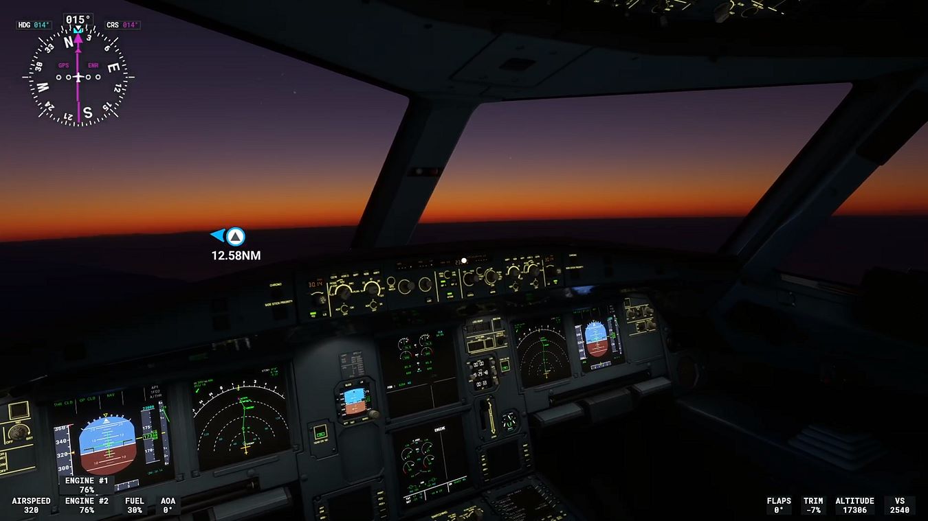 After reading the POH, and configuring my controls with a few extra assignments, I started up in VR and practiced the taxi out to the runway. Taking off went well, the turn to crosswind at 500 AGL went fine, and the turn to downwind at pattern altitude went ok, but I realized I was using VFR landmarks that I would not have when flying with the group to unfamiliar airports. I tried to figure out how to read the huge compass in front of me, and decided I needed some 2023 pocket technology.