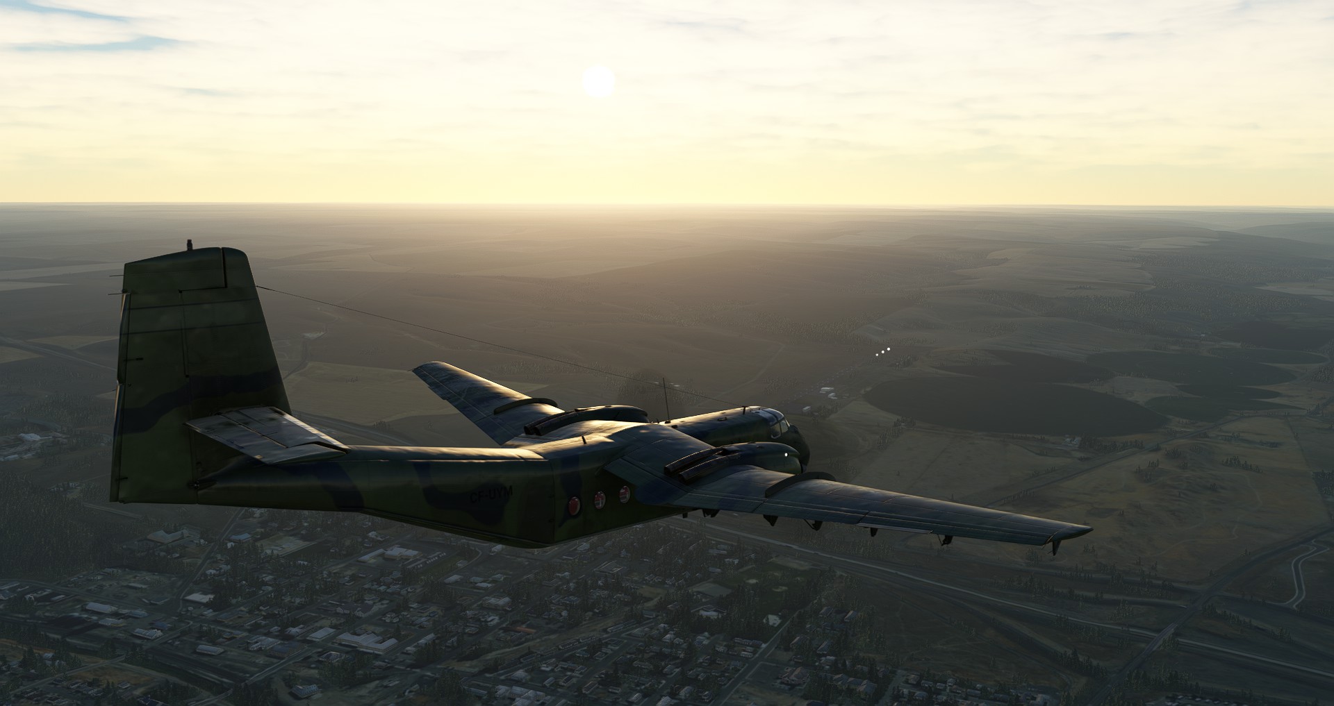 So, I finally decided to venture out of the Pacific Northwest from my home on Whidbey Island. I took off from KEAT Pangbord Memorial to explore in the wonderful DHC-4 Caribou. I’m searching for the VR zoom button, and suddenly I lose engine power. I start my checks. Fuel boost gives me a touch more power, but not enough to stop descent. I start looking for a field to land on, when I notice my mixture is at idle. Mixture up, and engine power returns! Note to self, check the control maps. Finished up with a nice short field landing. What a sweet ride!