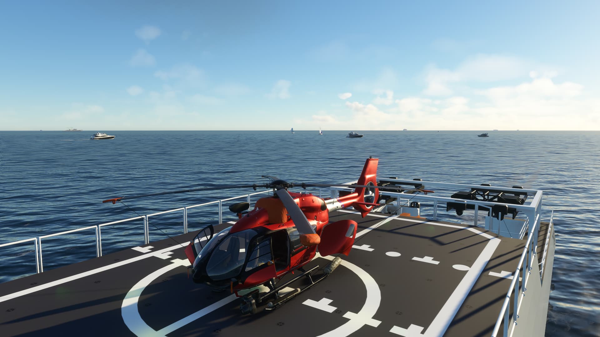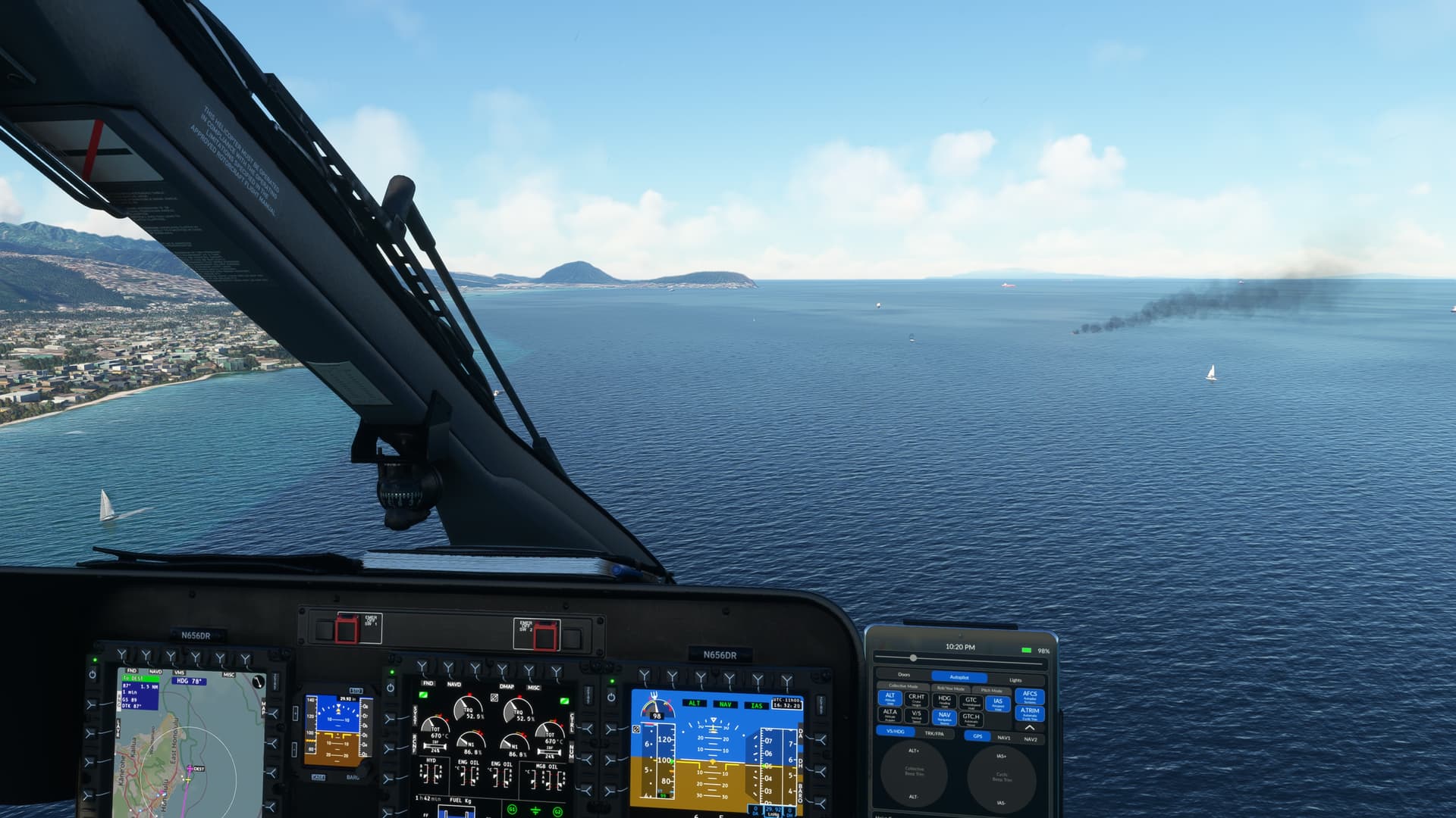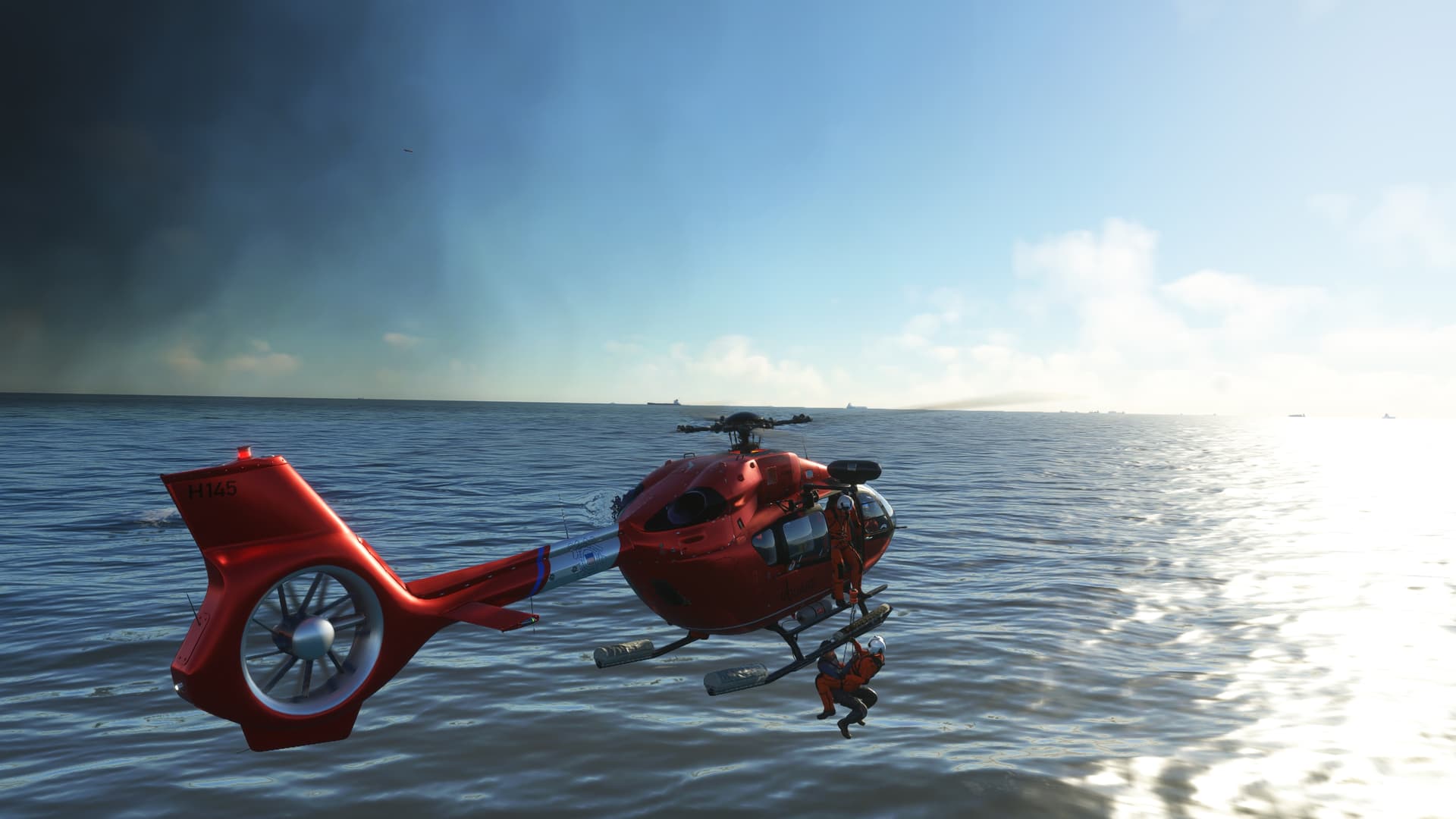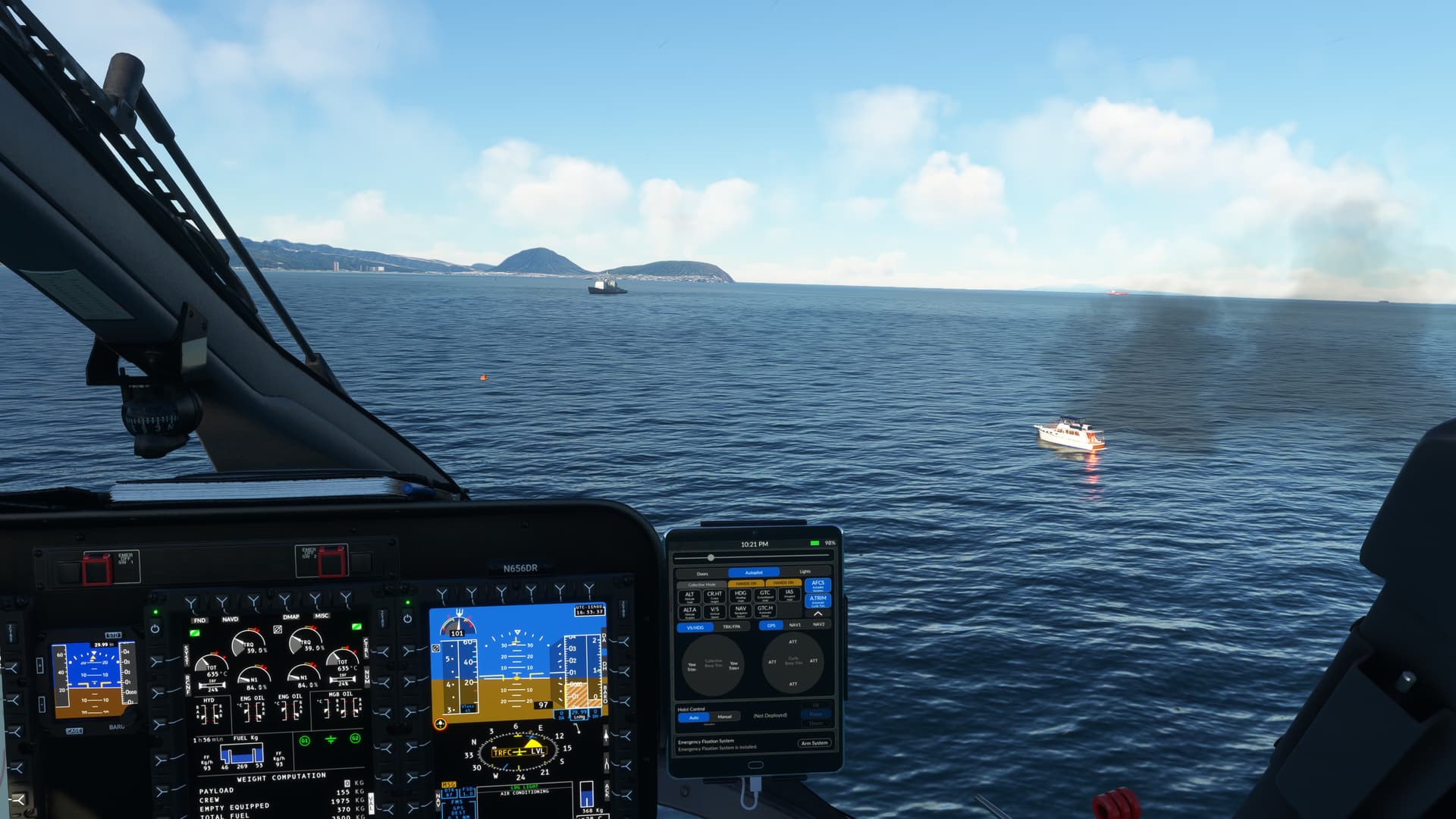 Had a much more interesting time in Maunalua Bay. Hopefully, someday, someone will make a proper USCG station at Kalaeloa Airport. Anywhoo, using the right 145 type, I could use the Ponyboy mod to have a dramatic rescue. After finishing that mission, I decided to land and finish on the moving Coast Guard cutter at Sunset. Aloha.