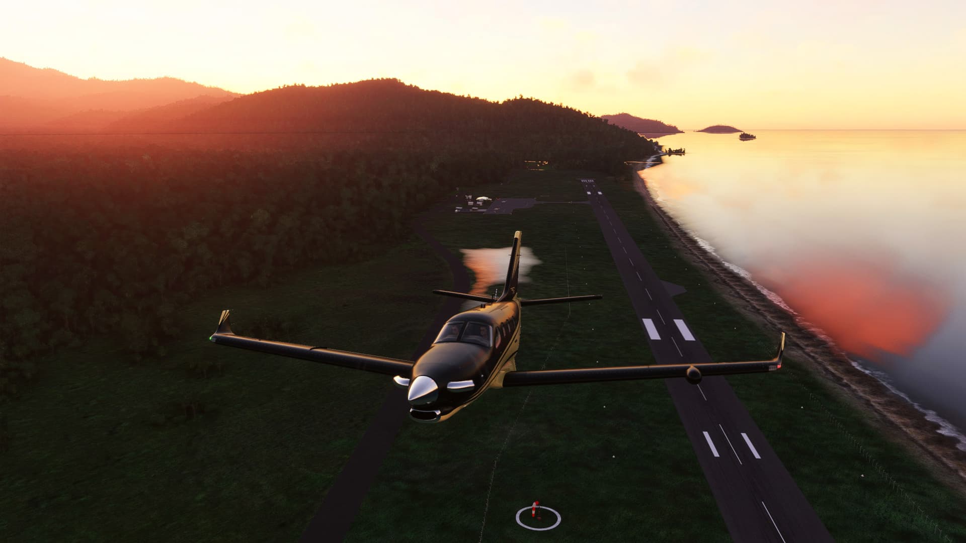 A twilight flight from Kieta-Aropa Airport, Bougainville Island to Nusataupe Island, Indonesia, over the Solomon Sea - in real-time, real-weather: