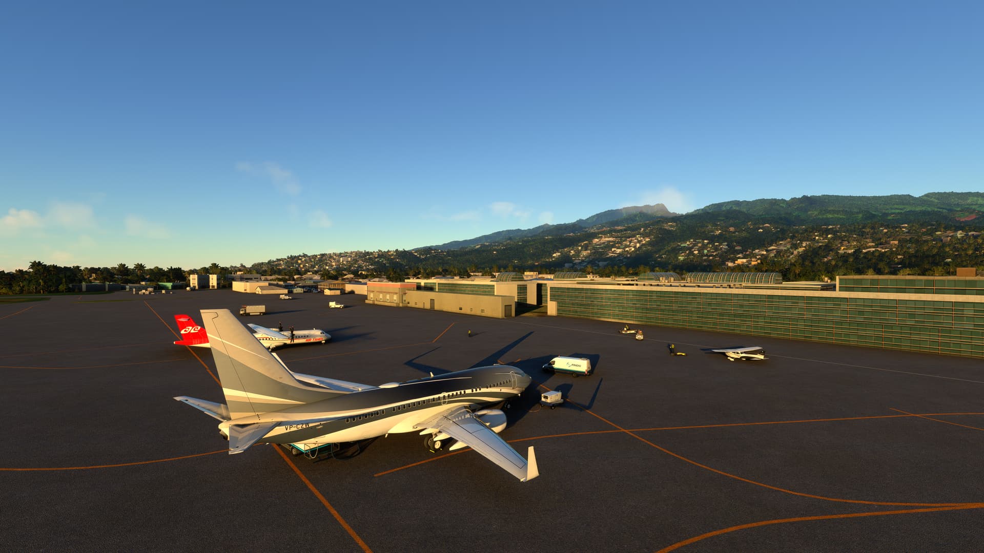 Flew from New Orleans to Fiji in the PMDG 737-700 BBJ. A 10+ hour flight. A lot of this flight was over water but once I arrived to the island it was beautiful.