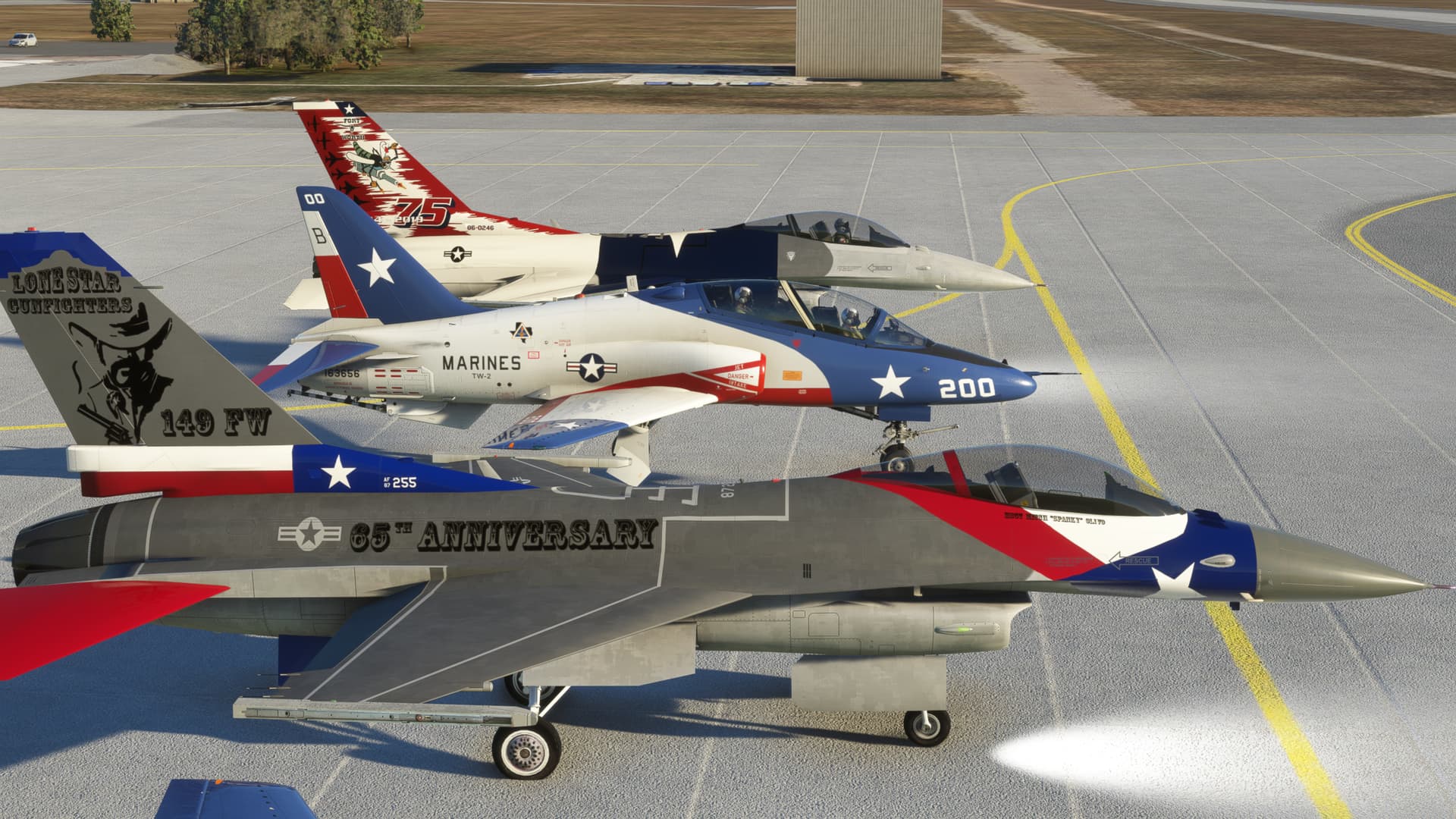 I completed a UT and Circuit of the America’s fly over in Texas themed liveries in the F16 and T45.