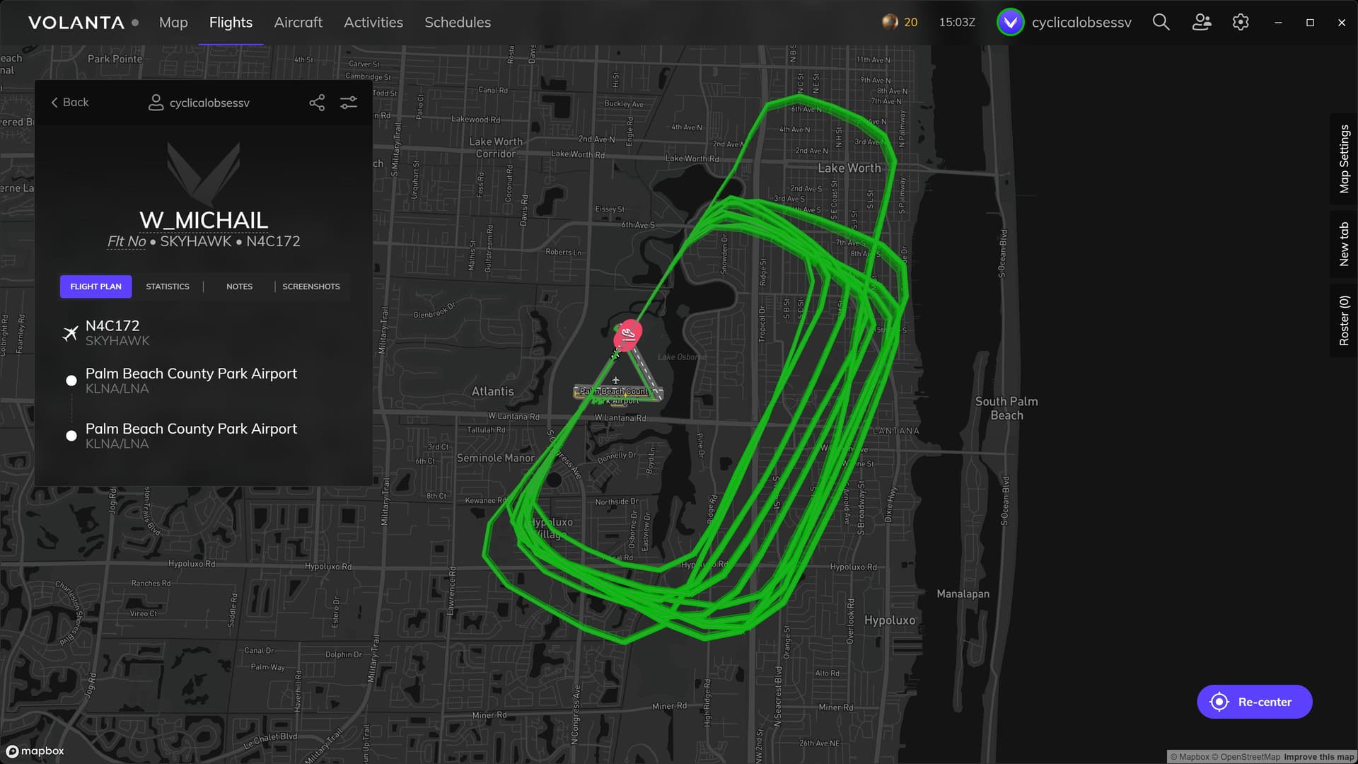 We both were flying VR in the Cessna 172 on rwy 22 at Palm Beach County Park Airport in Lantana Florida and using Atlantic Coast Flying Club Discord as the CTAF channel for position and intention announcements. ( I got my PPL there 28 years ago, and still feel “at home” there. Michail71 built the airport scenery to match the current buildings.)