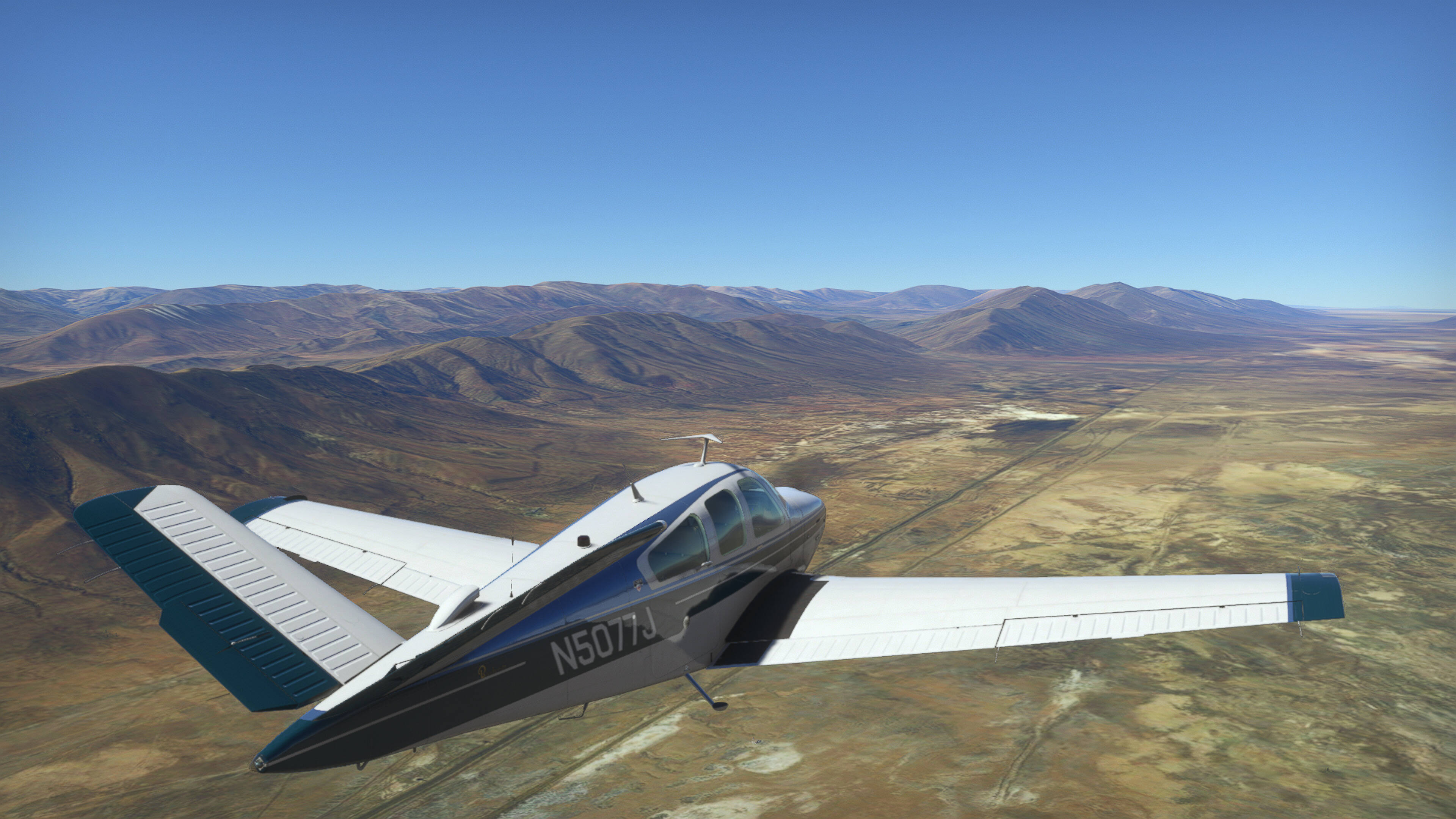 Continuing my round the world flight, this stretch in the Bonanza, following Route 1 in Bolivia along the former shores of Poopo Lake and the Azanaques Range.