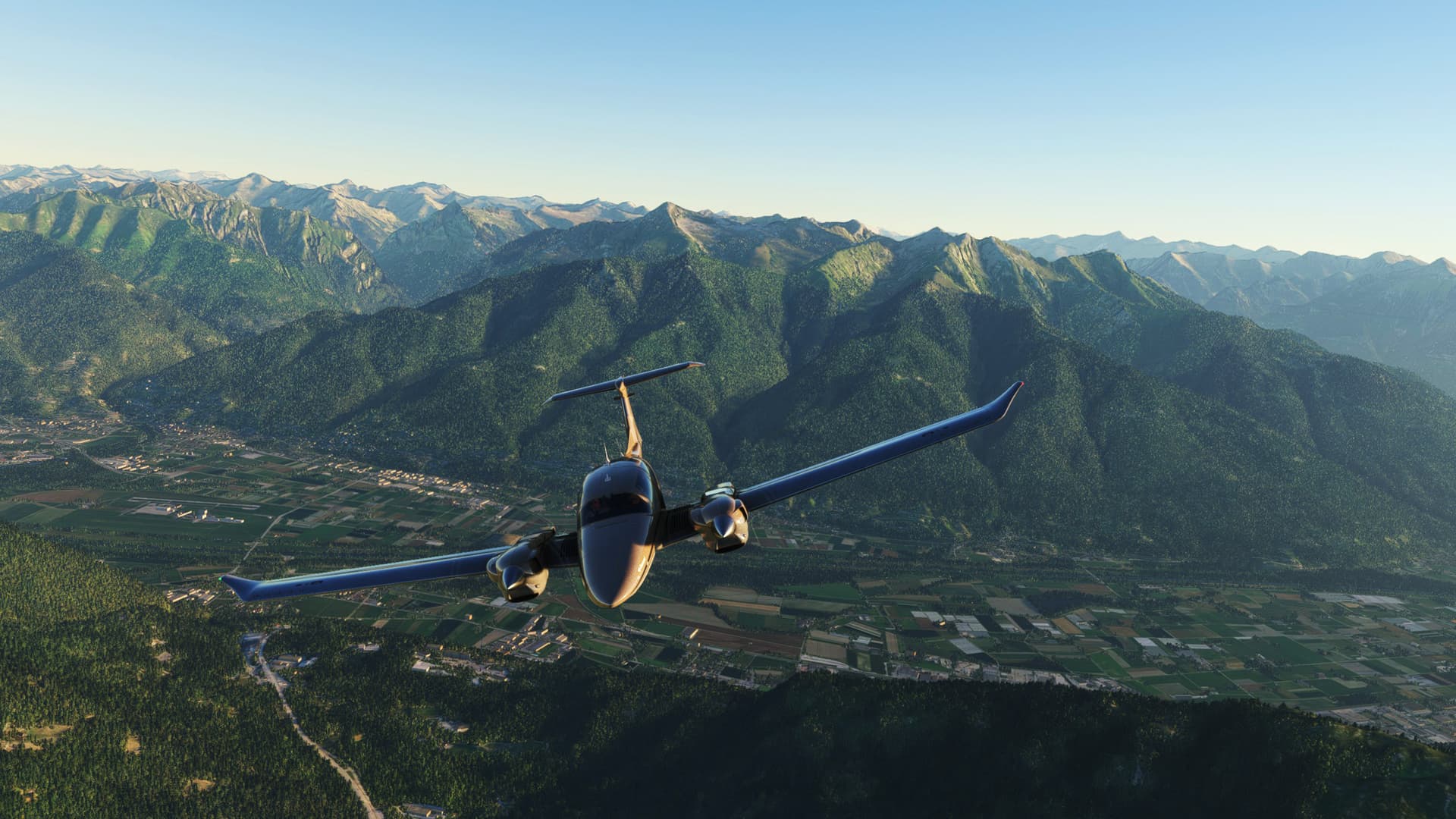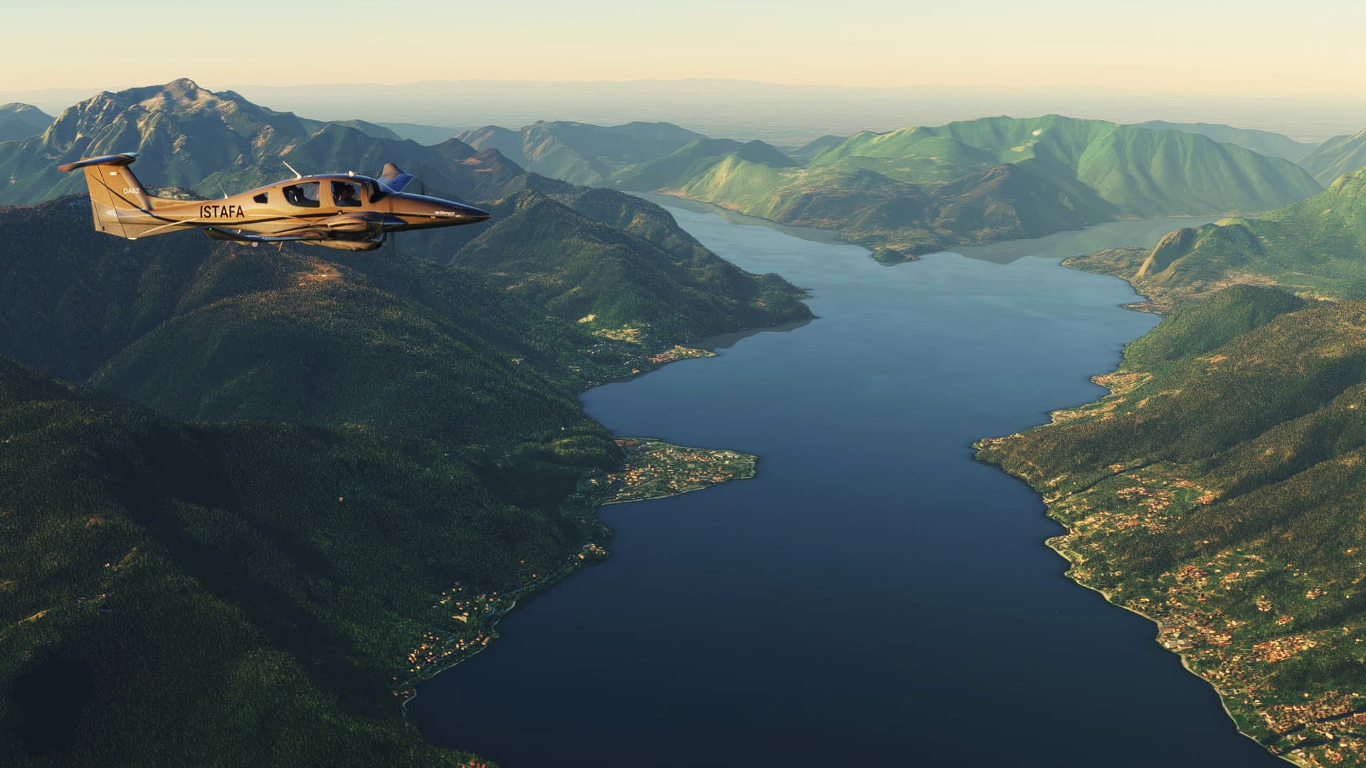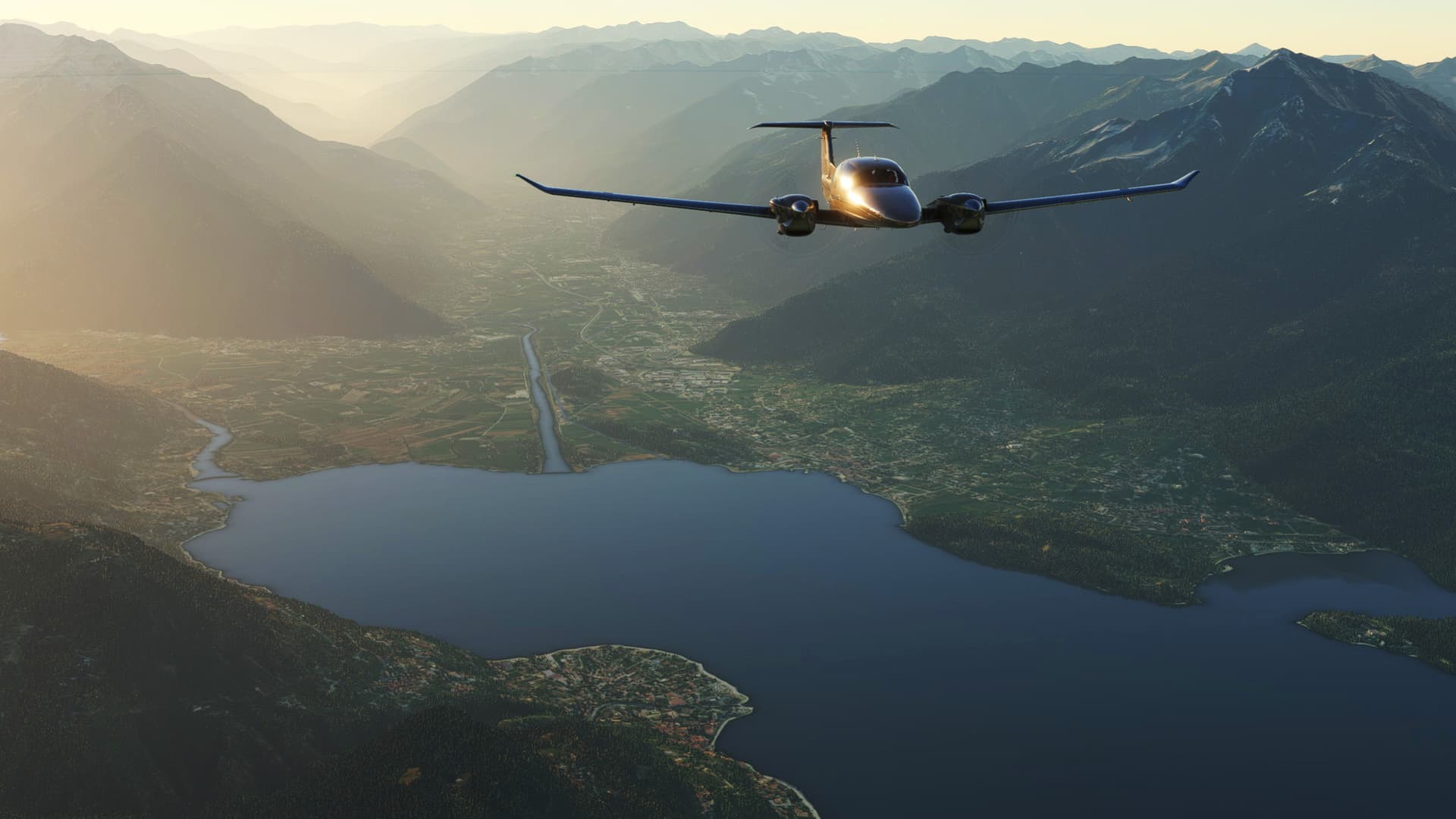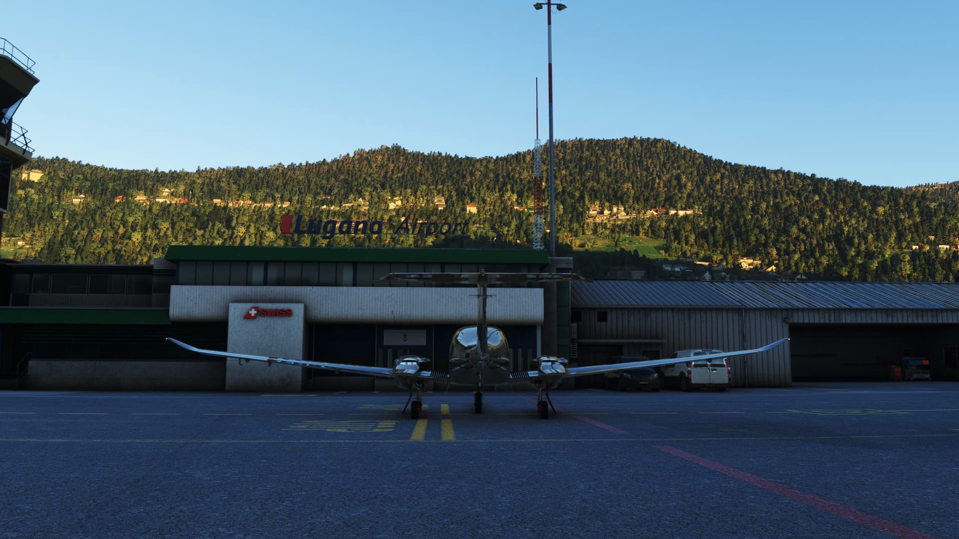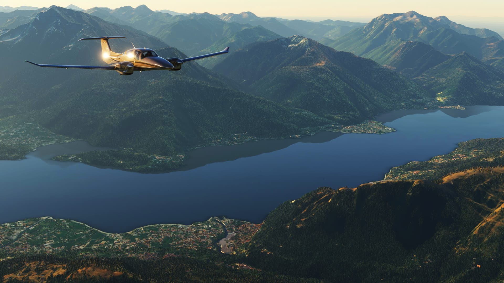 An early morning flight from Sondrio Ciaolo Airport, Italy to Lugano, Switzerland, through scenic views of Como Lake, Mizzola Lake, Maggiore Lake, Locarno… and more – in real-weather, real-time.