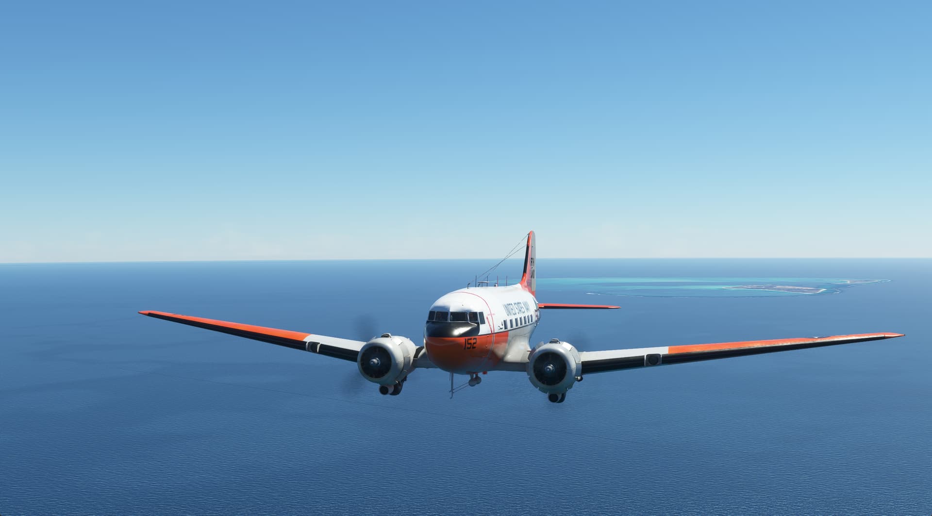 very long, ocean-filled flight, PMDY - PWAK. Had to add fuel along the way as the model does not reflect the actual range of the DC-3. Livery was cool, but wish a generic one existed.