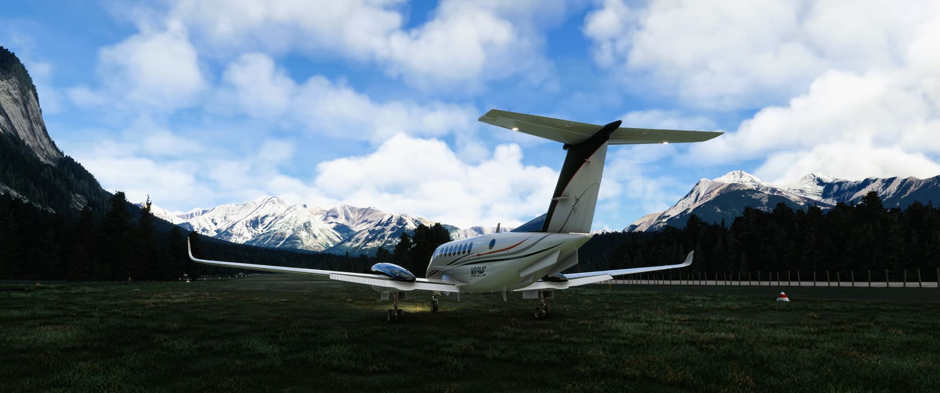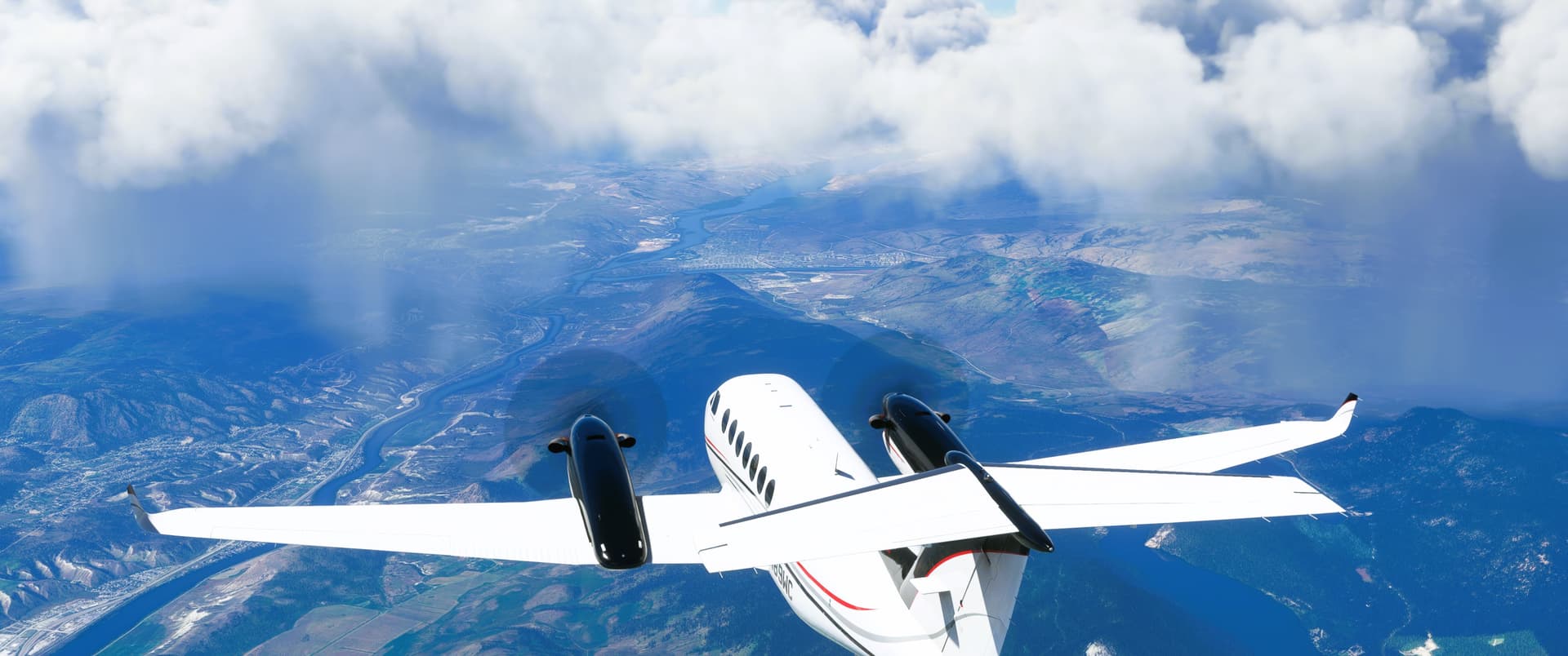 Barely made the take-off from Banff, AB, Canada CYBA. My poor virtual passengers as I just about scrapped the trees. On route to Kelowna, pics go as far as Kamloops. Holy mother of beautiful mountains!