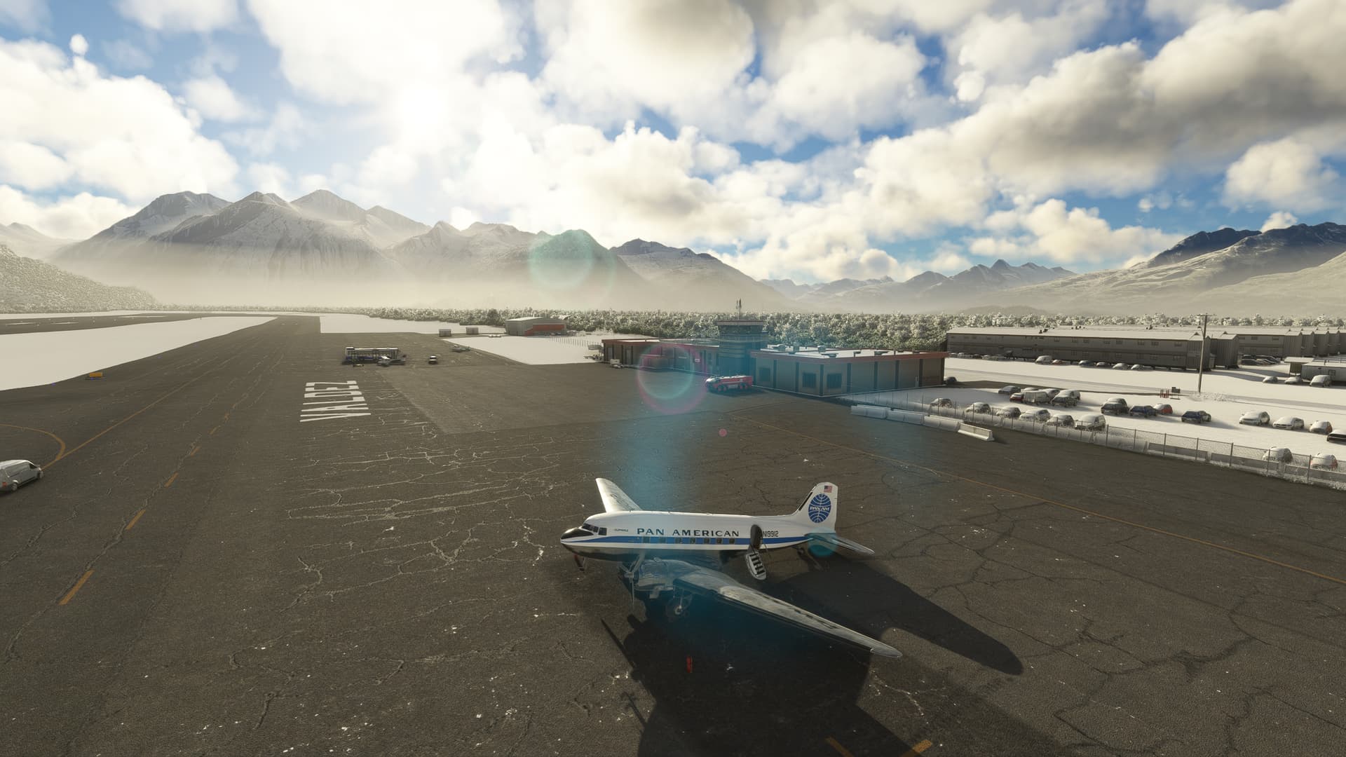 I was quite busy last week, but today I found some time to fly. And it was also good weather in Alaska, so I could continue my trip around Pacific in DC-3 in real weather. Today I landed at star airport of Valdez.