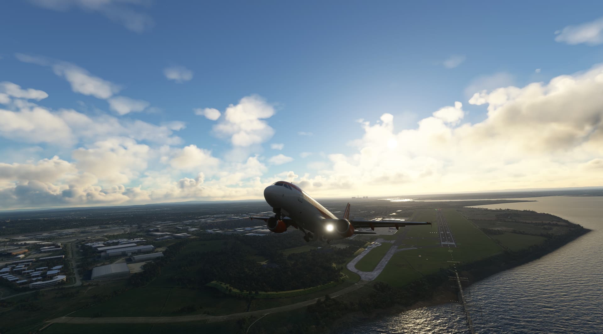 METAR didn’t look that good. However, until I planned and loaded the flight, the weather got better. No overcast, but nice sunrise. So I took off against sunrise and then followed the coast. Then I turned northeast to follow strait covered in morning mist and VOR on a small island. I tuned destination ATIS and weather got even better. Visibility was good, but especially no more wind gusts. So I tuned tower and got cleared to go straight to rw 08. Listening to ATC, there was some traffic at the airport. I was afraid that ATC tells me to go around, but luckily it all departed before I reached final. There were some hills on final, so I had to descend steeper than expected. But the runway was long, so could bleed the speed.