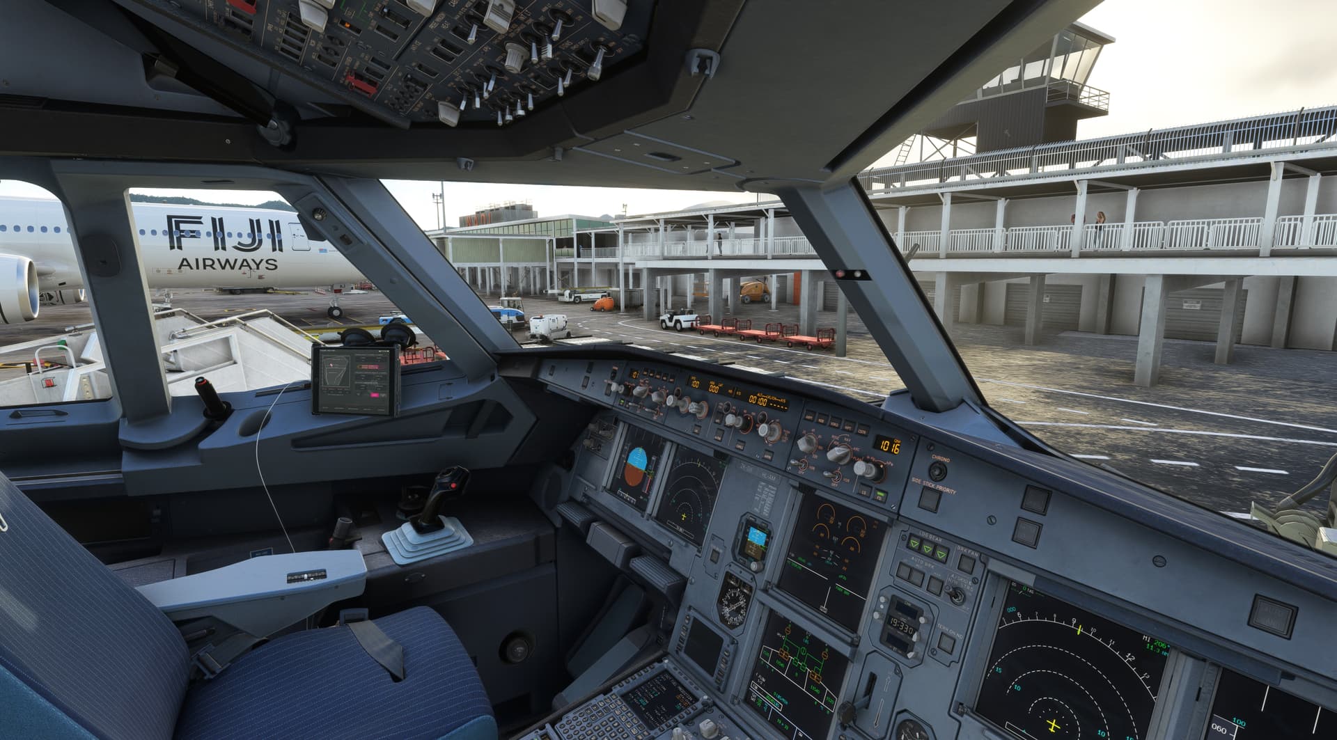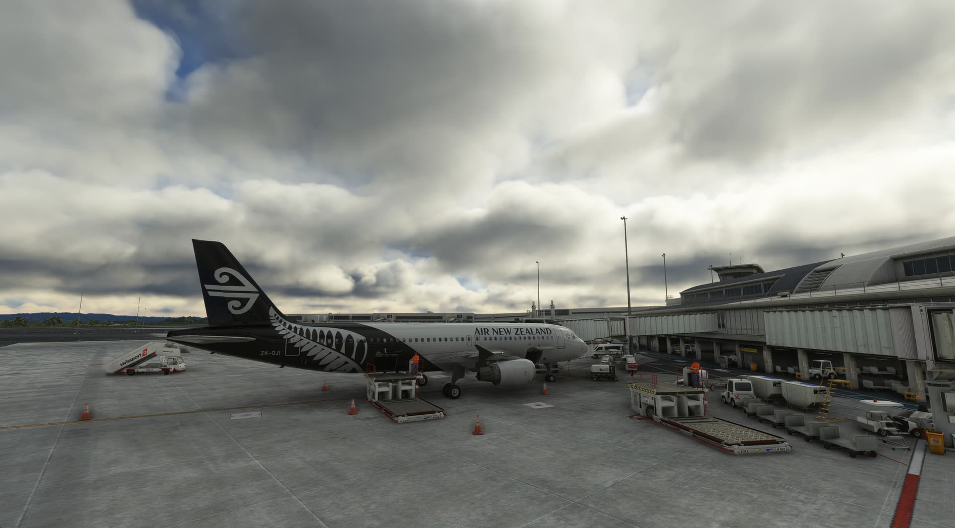 Nadi to Auckland. Because it does not happen often, I had a frustration with GSX and scenery gates conflicting in Auckland. Easy fix, once I remembered how, was to quit sim, go to GSX, turn off its gates, start sim and finish my flight properly. Both airports are great in side the towers.