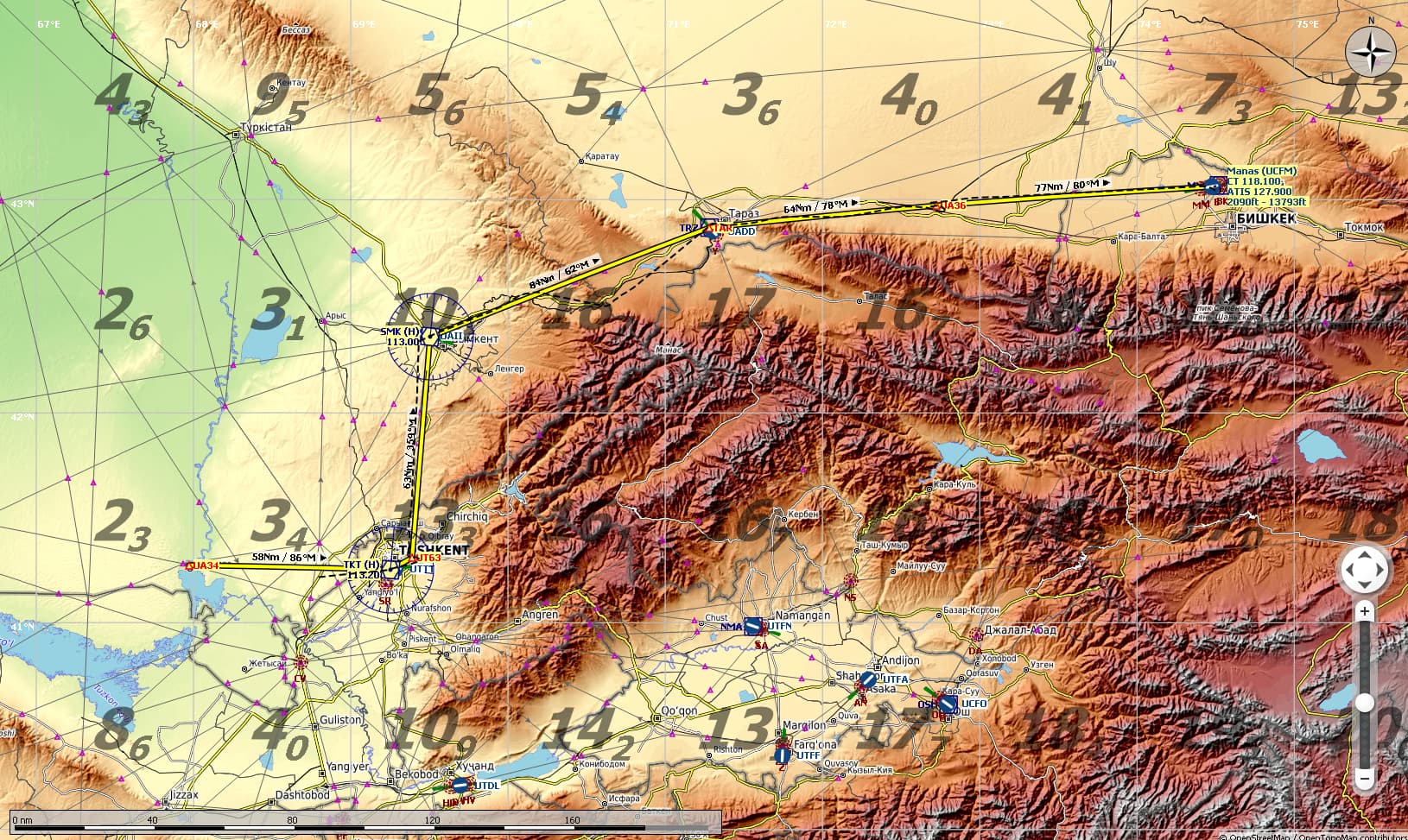 leaving UA34 Chardara, (Kazakhstan) to join UCFM Manas , (Kyrgyzstan) with few stops at UT63 Tashkent Vostochny, (Uzbekistan) & UA36 Lugovoy, (Kazakhstan)