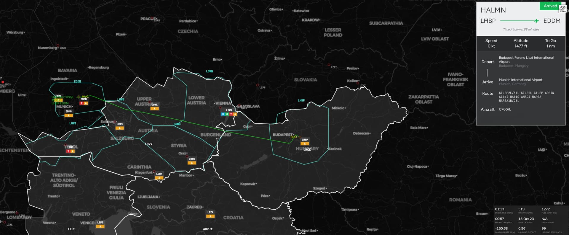 A quick Sunday morning flight in the Longitude from Budapest Liszt Ferenc International (LHBP) to Munchen Franz Josef Strauss (EDDM)