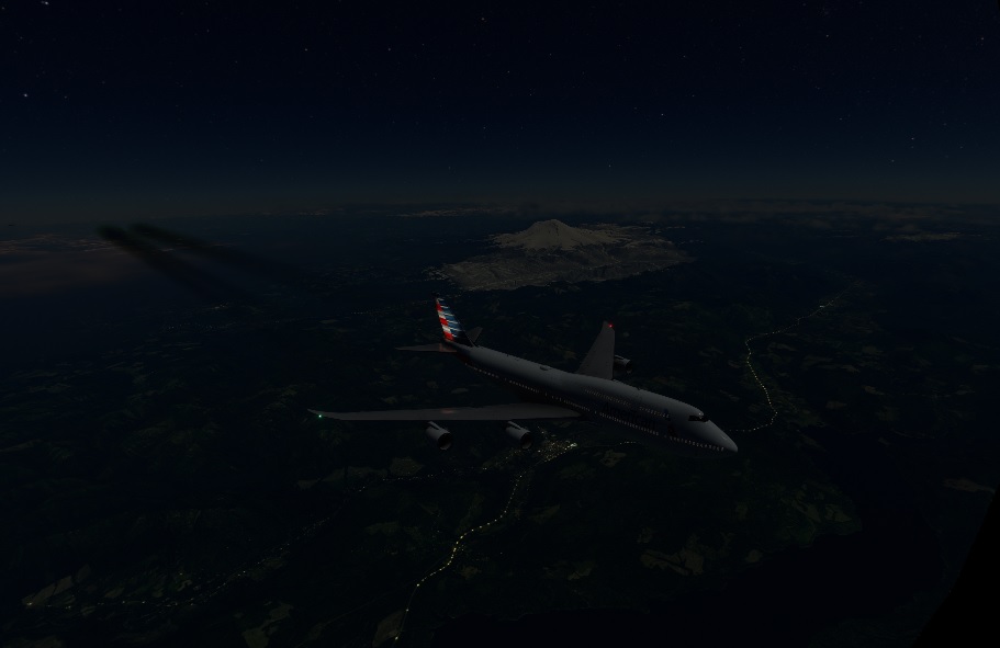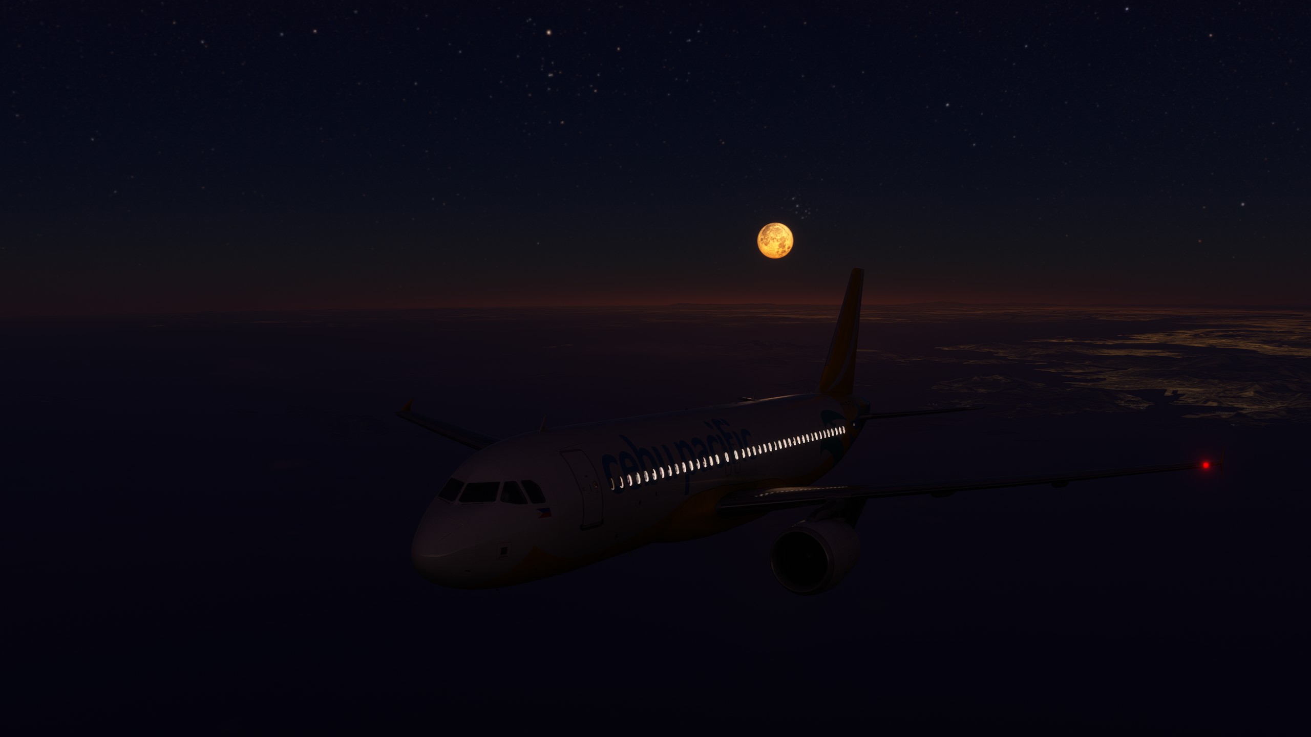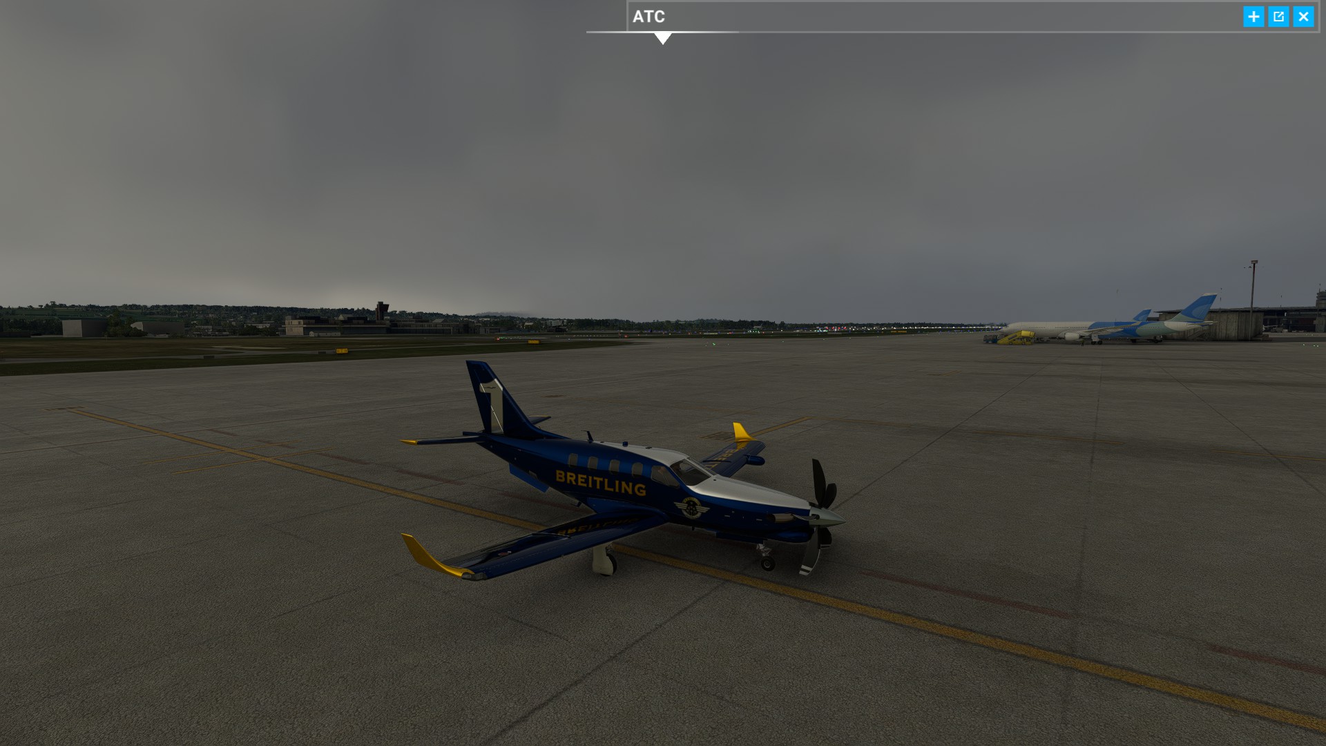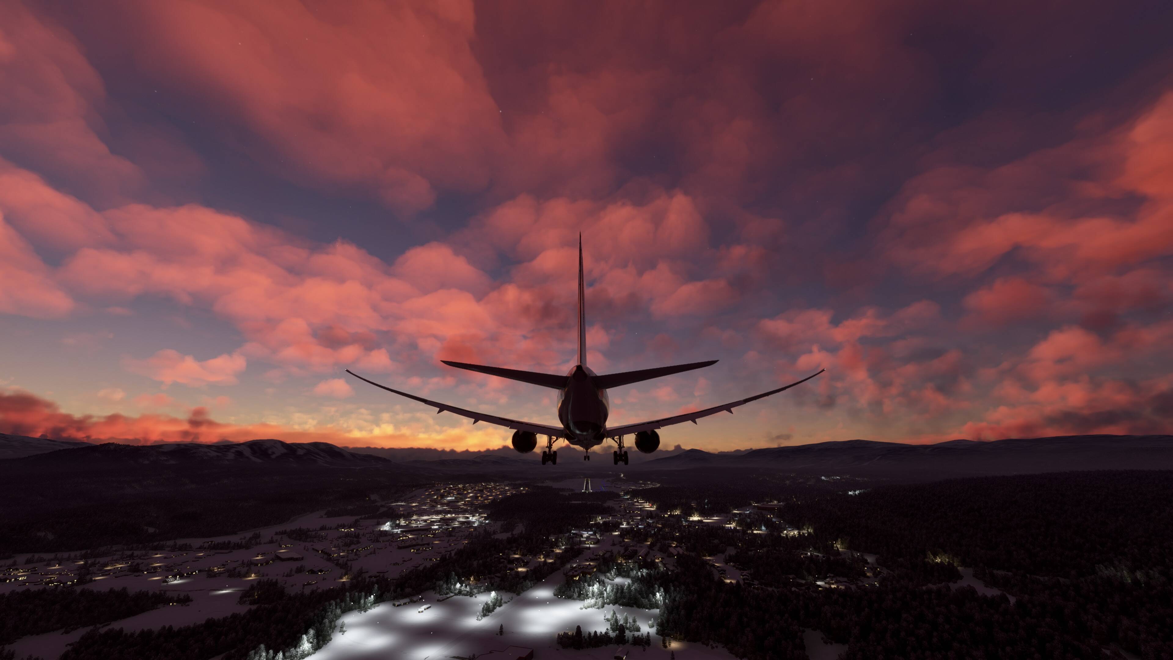 Lined up and waiting for overhead traffic to clear. “Wishful Thinking’s” younger stablemate, former Lufthansa Starliner D-ALAN, watches from the sidelines. Sadly, I don’t think she’ll ever fly again, and the clean model in MSFS belies the real airplane’s steadily deteriorating condition.