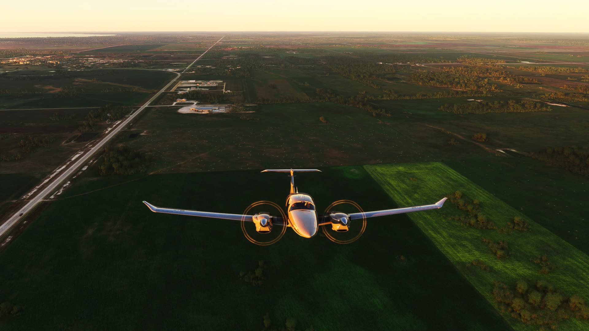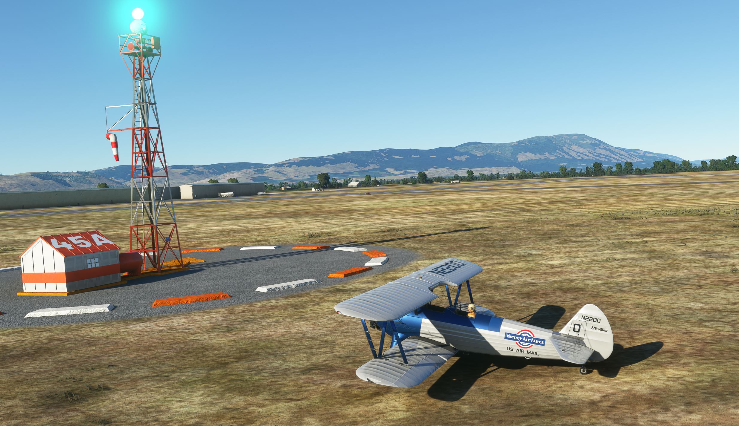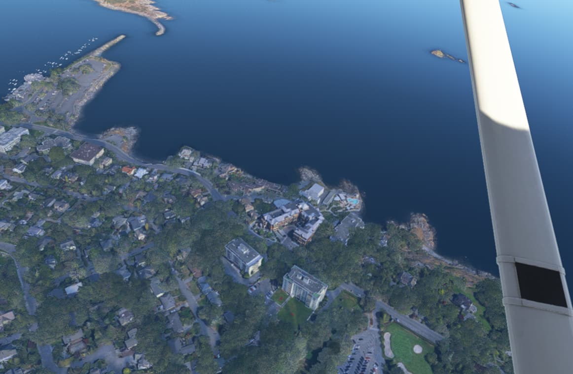 I planned to reach 42VA at 1546 Local and nailed it almost perfectly. With nobody in the pattern, I flew overhead to look for the windsock which, as is often the case in MSFS add-ons, indicates backwards in this otherwise flawless scenery package. I’ll maneuver to the east, then return to land to the west, but first…