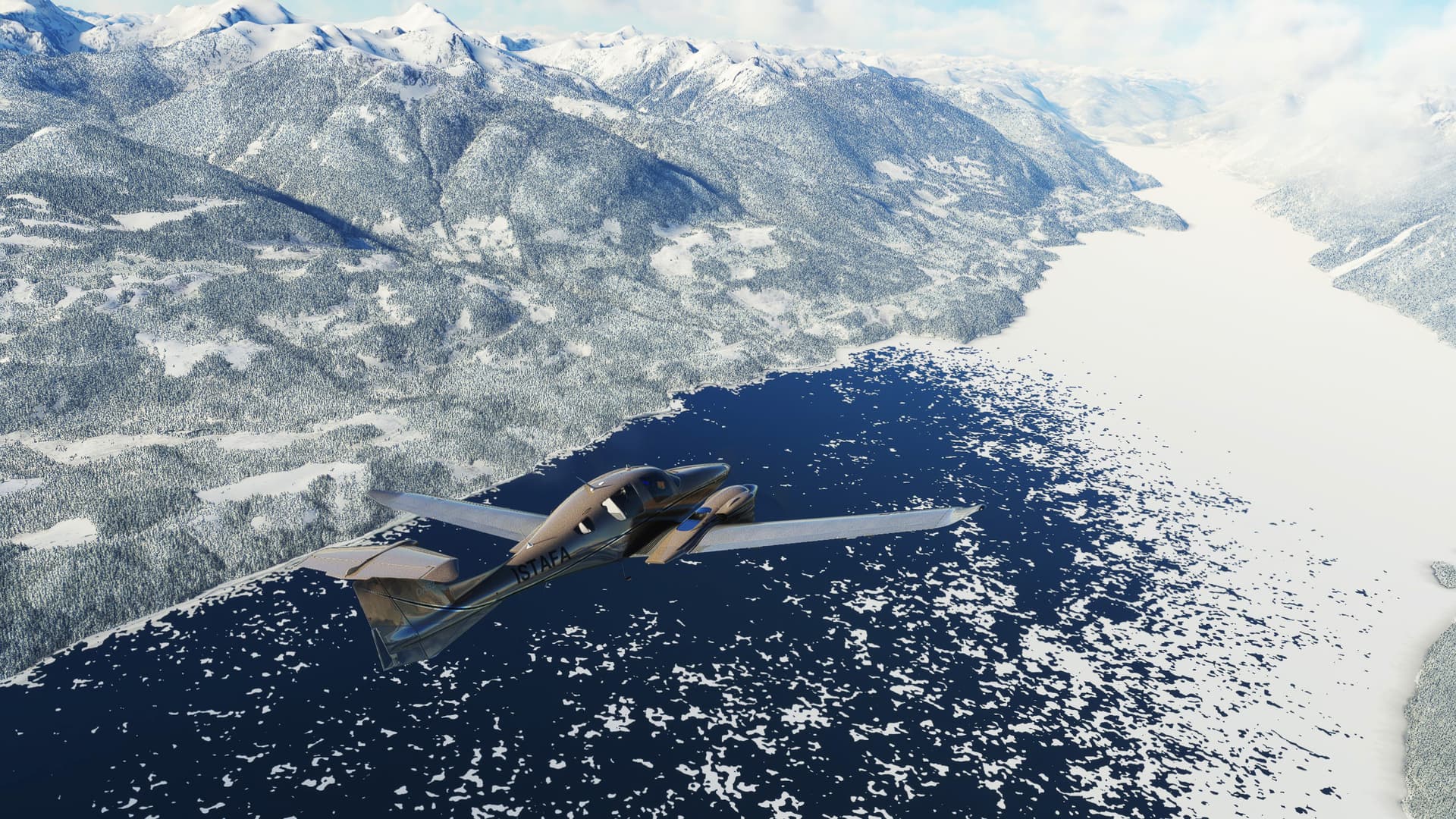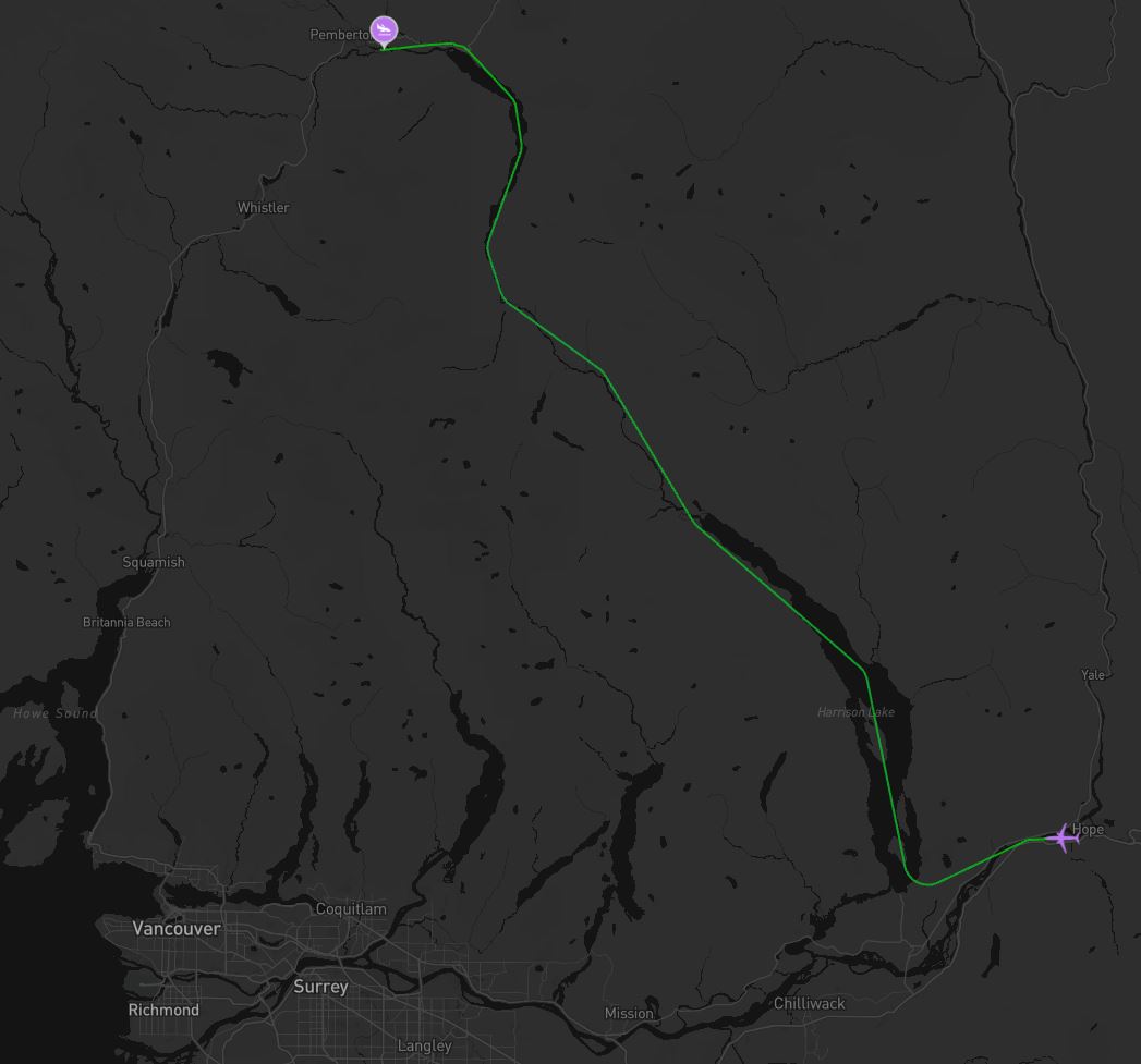 Flying out from Hope, British Columbia, Canada ( where First Blood was filmed), following the Fraser River, taking right from Harrison Hot Springs towards half-frozen Harrison Lake, following the valley towards Lillooet Lake and then taking a hard left for Pemberton Airport… in real-weather, real-time