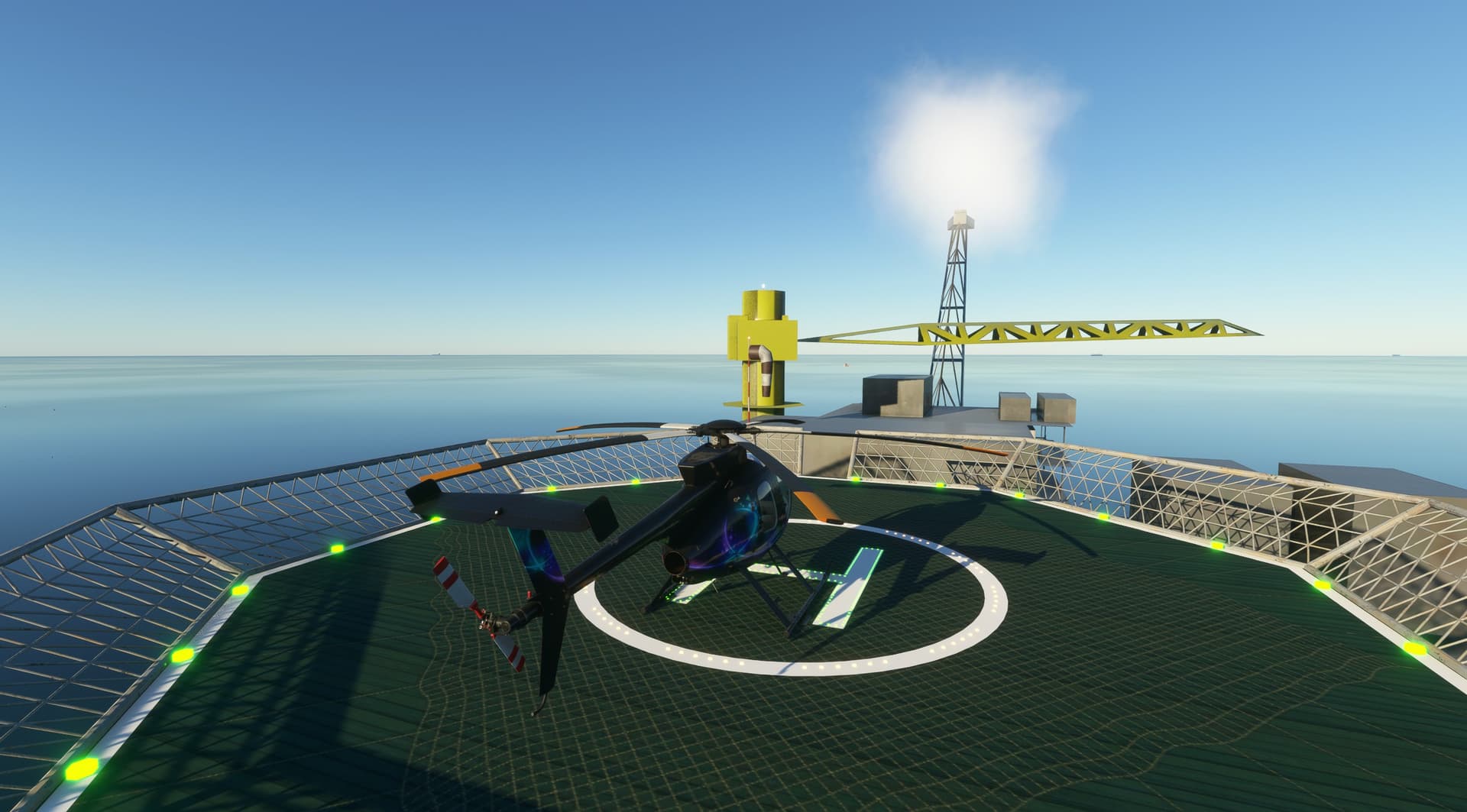 Still, I had to give Aerosoft’s North Sea Landmarks a go. I suppose they’re called landmarks because you can land on them. Which I did eventually, descending on the first one I came across with great relief: