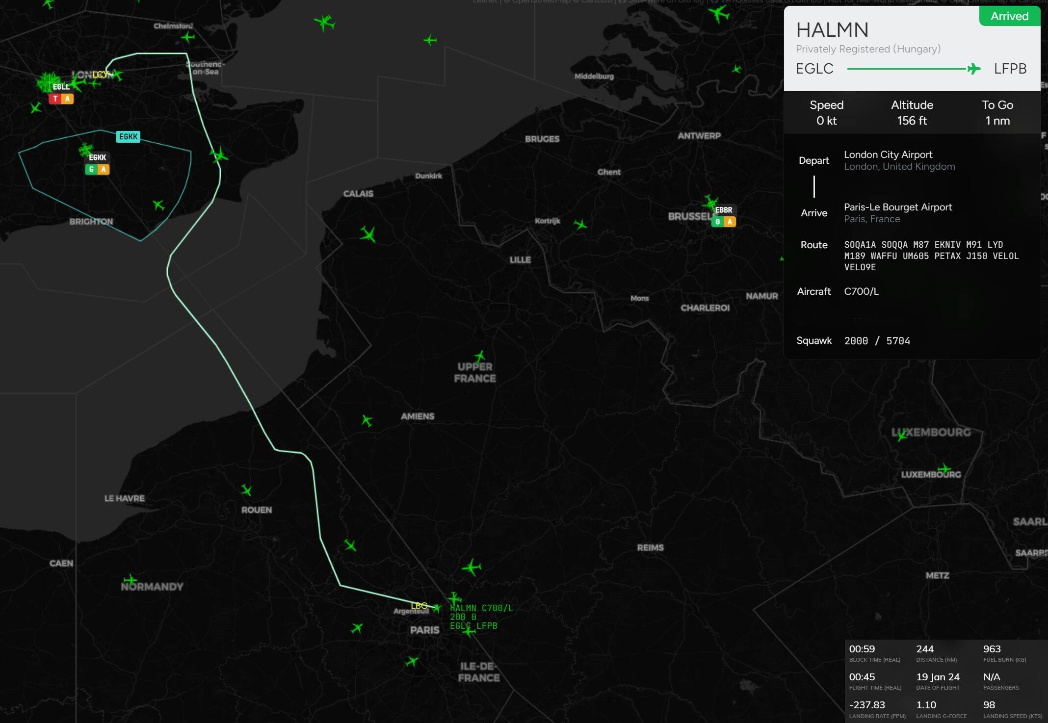 Decided to do a little night flight and not to alter the time for daylight for once. Just a short hop from London City (EGLC) to Paris Le Bourget (LFPB):