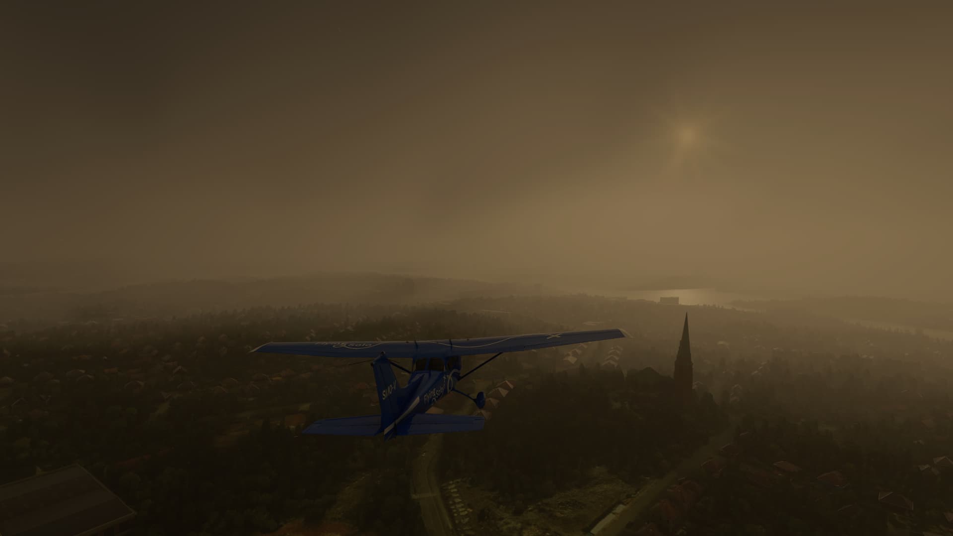 Taking off shortly after dawn, I found that as long as I stayed under the cloud layer at 1,500 ft, VFR flying was possible. Churches made great route markers: