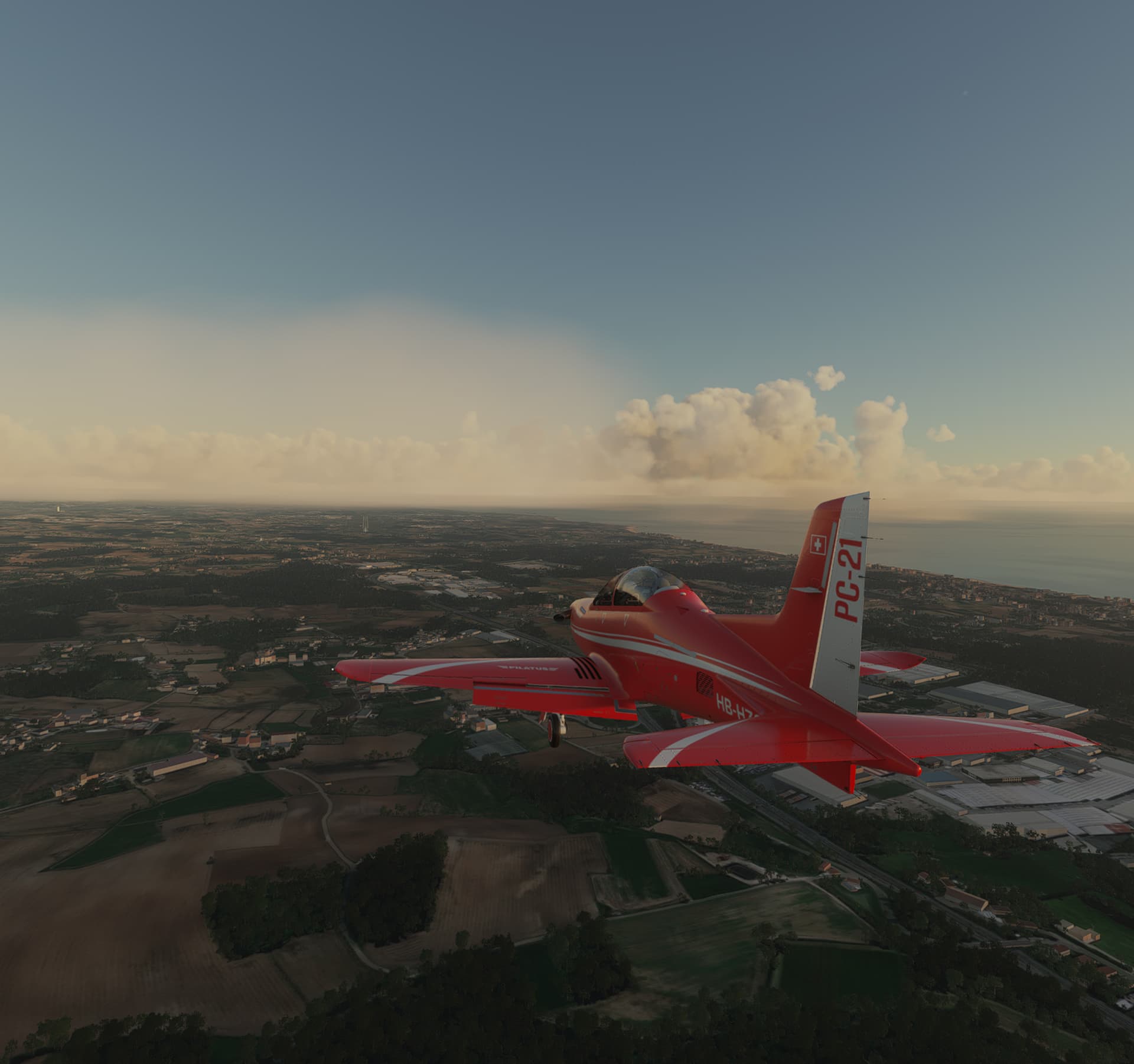 Short late afternoon flight from Vigo(LEVX) to Porto(LPPR), Iris PC-21, ActiveSky weather, FSLTL ai traffic.