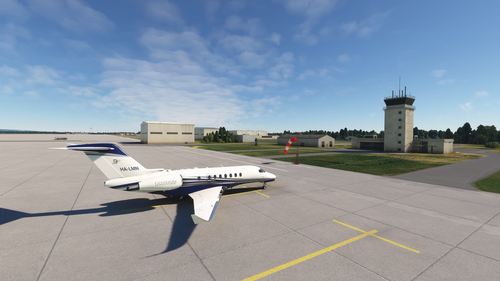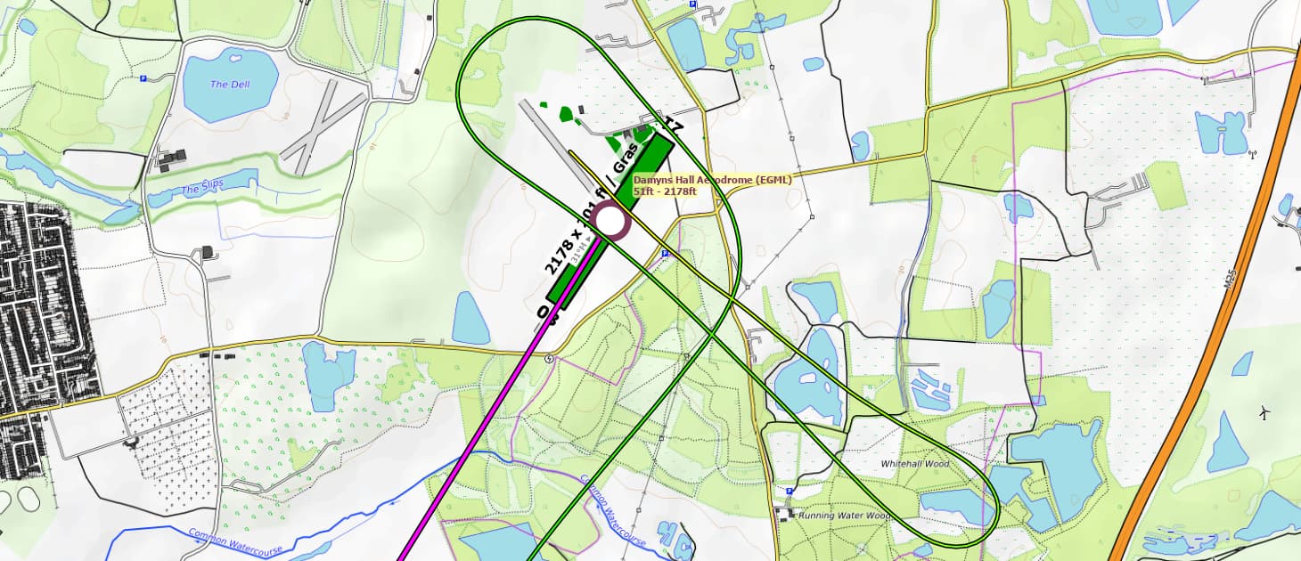 At my destination (Damyns Hall Aerodrome) I used a runway that was unfortunately forgotten in the MSFS. The wind left me no other choice.