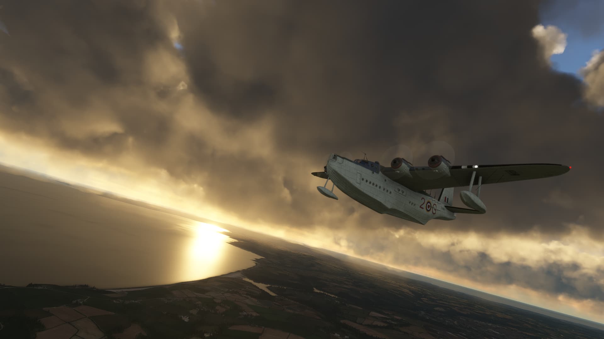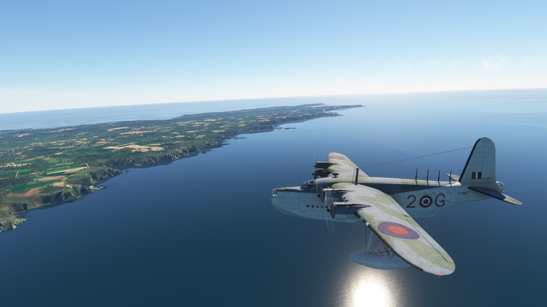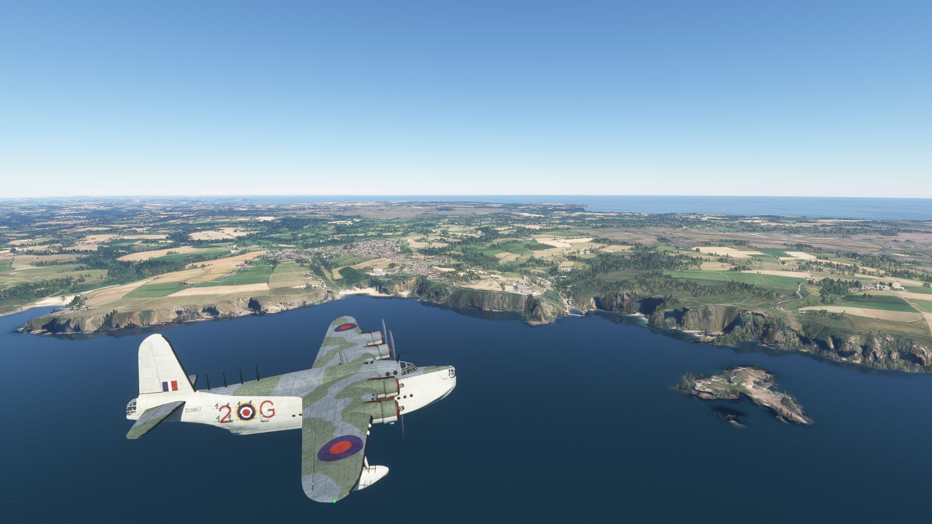 Crossed the Celtic Sea from Helston to Quimper in my Sunderland. Most relaxed plane I flew in quite a while! I also upped the amount of ships on the seas and it really fits the experience of using a patrol flying boat.