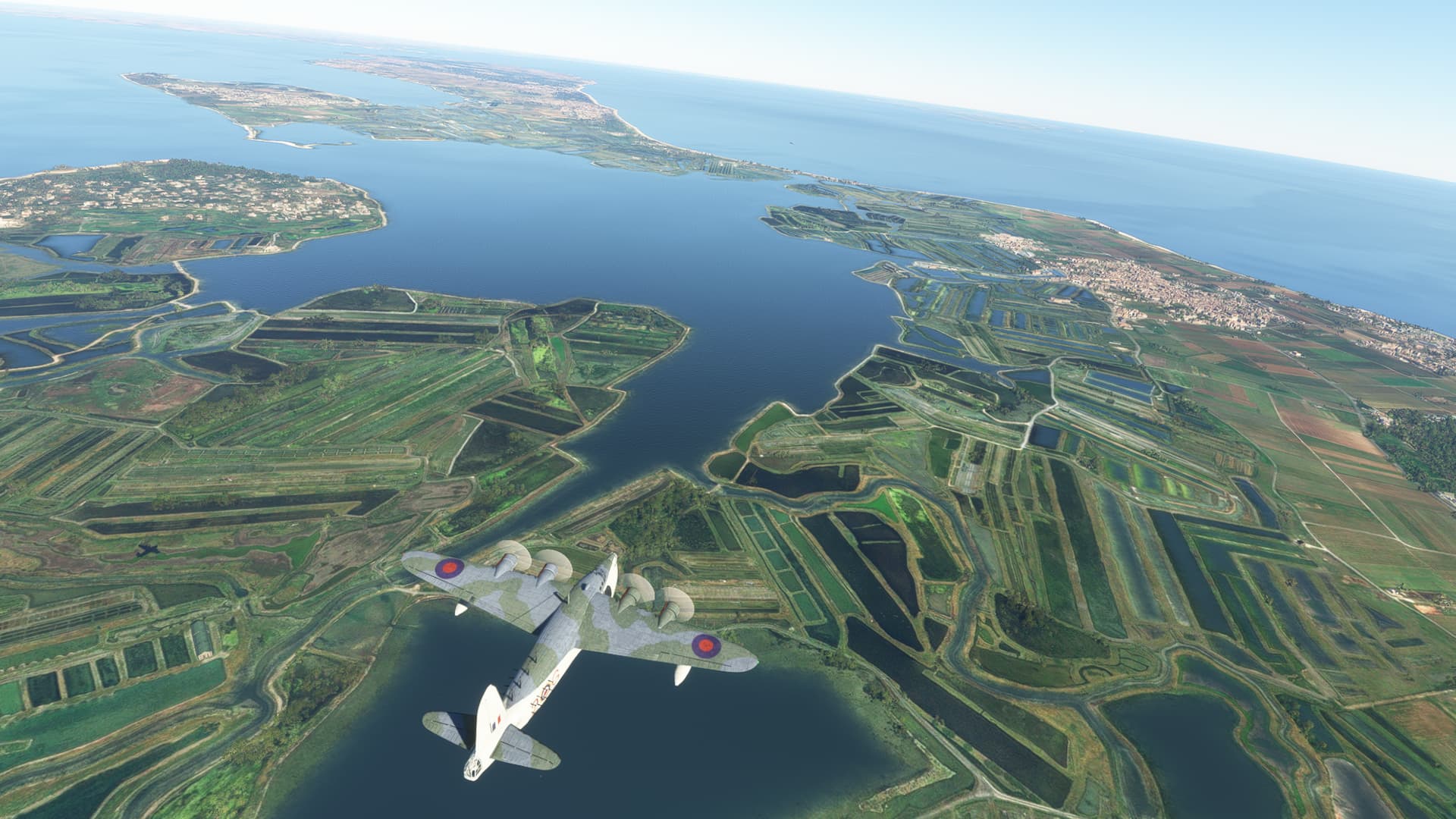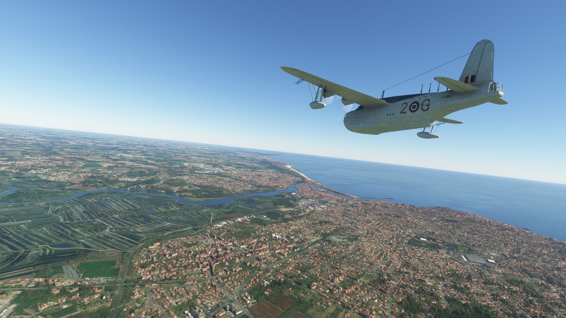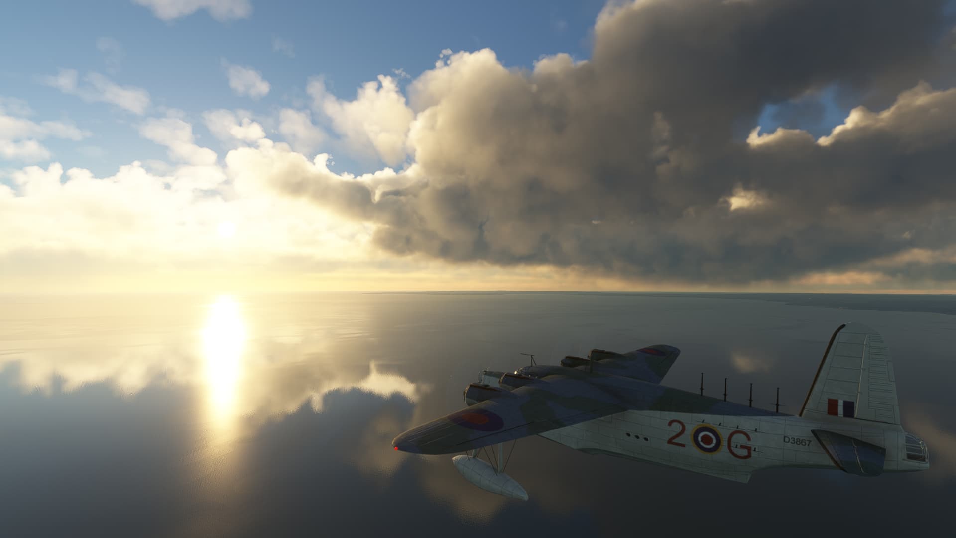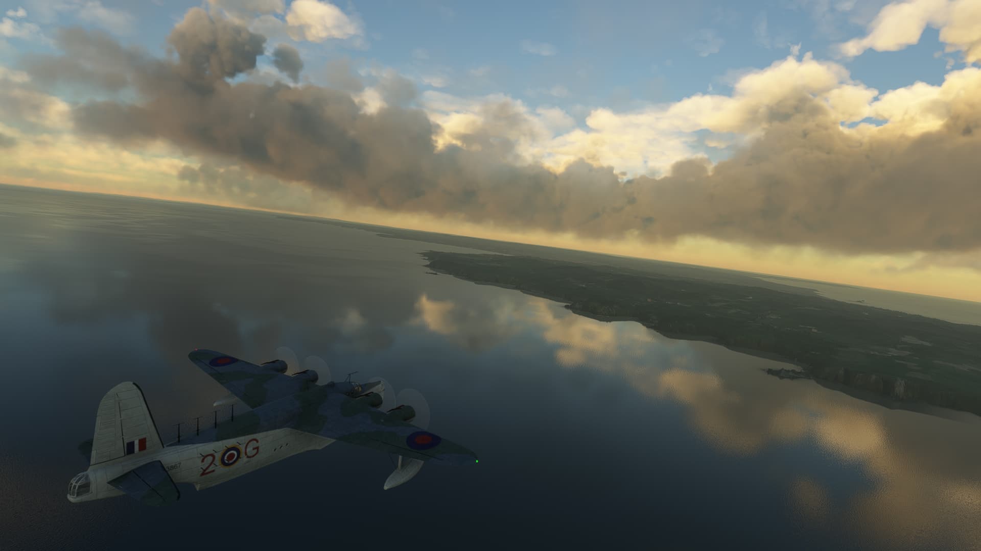 Crossed the Celtic Sea from Helston to Quimper in my Sunderland. Most relaxed plane I flew in quite a while! I also upped the amount of ships on the seas and it really fits the experience of using a patrol flying boat.