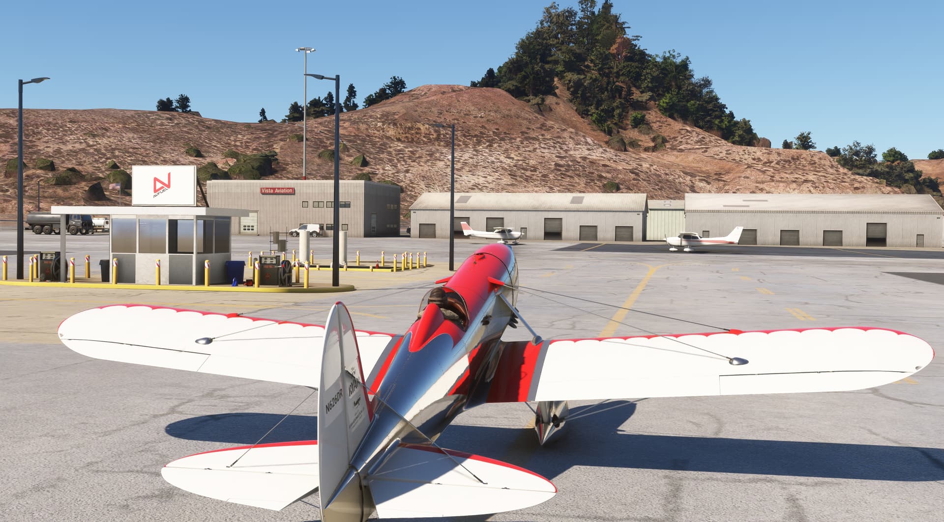 Leaving the desert heat for the cooler 80s in the LA Basin. Rosamond to Whiteman. Nice mod for KWHP, but why use European registry static planes?