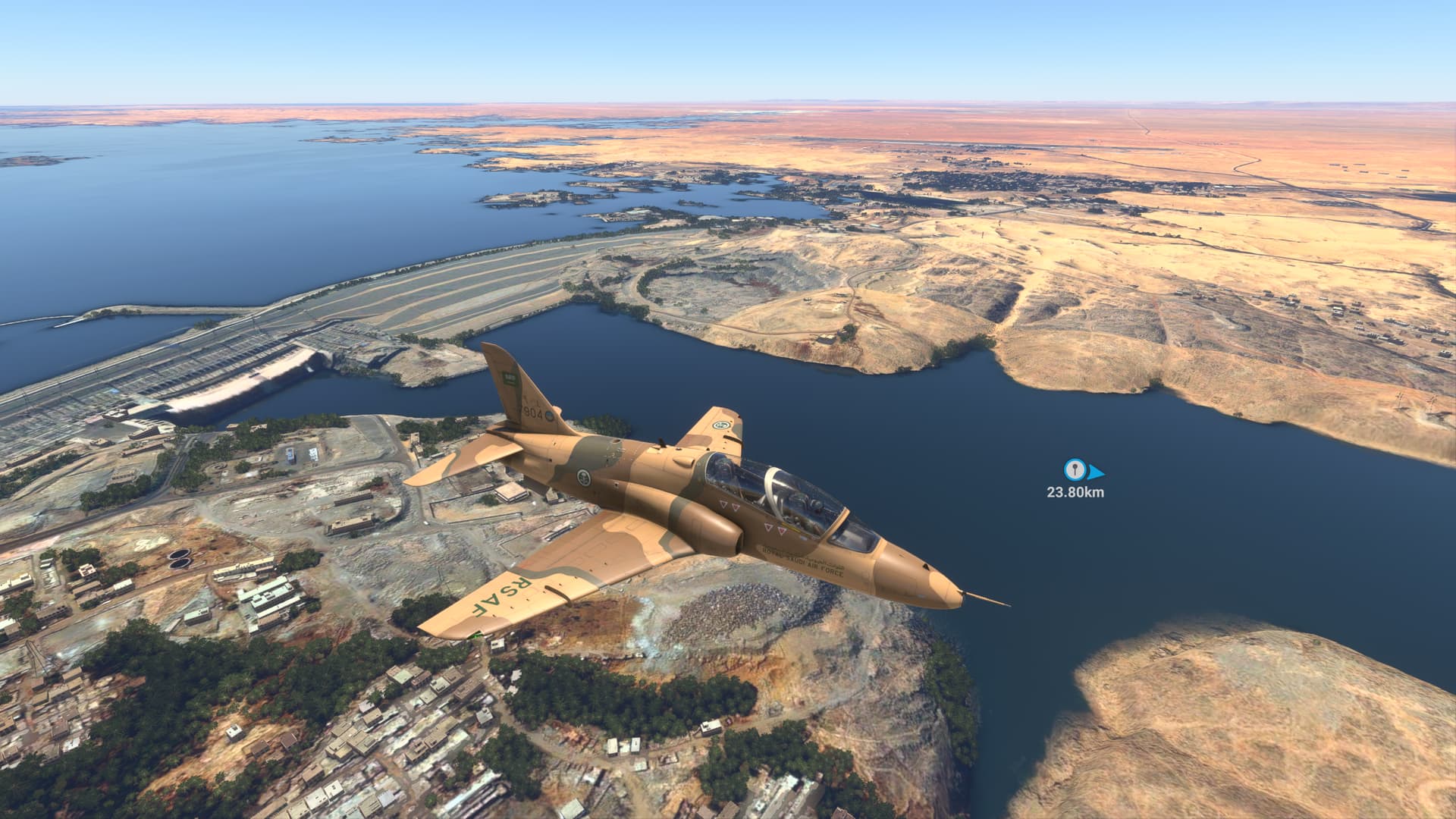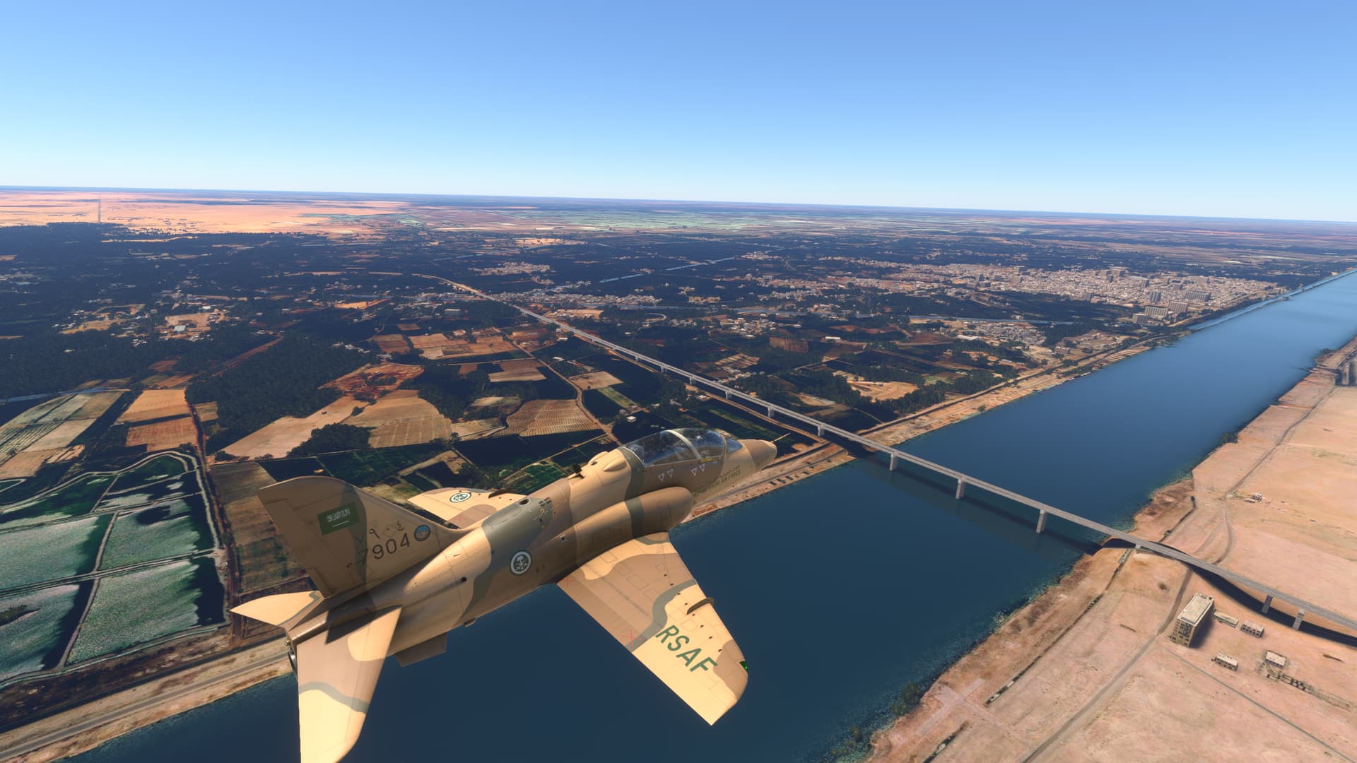 Took the Just Flight Hawk along the Suez Canal and along the Nile from Aswan Dam to an airbase just North of Cairo.