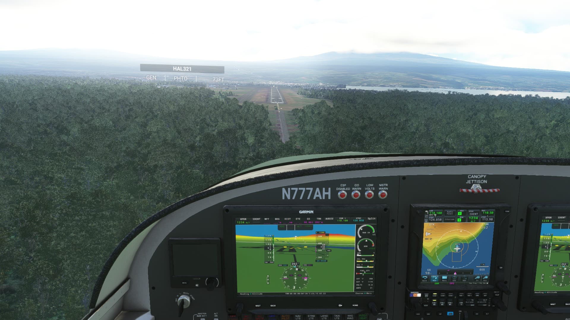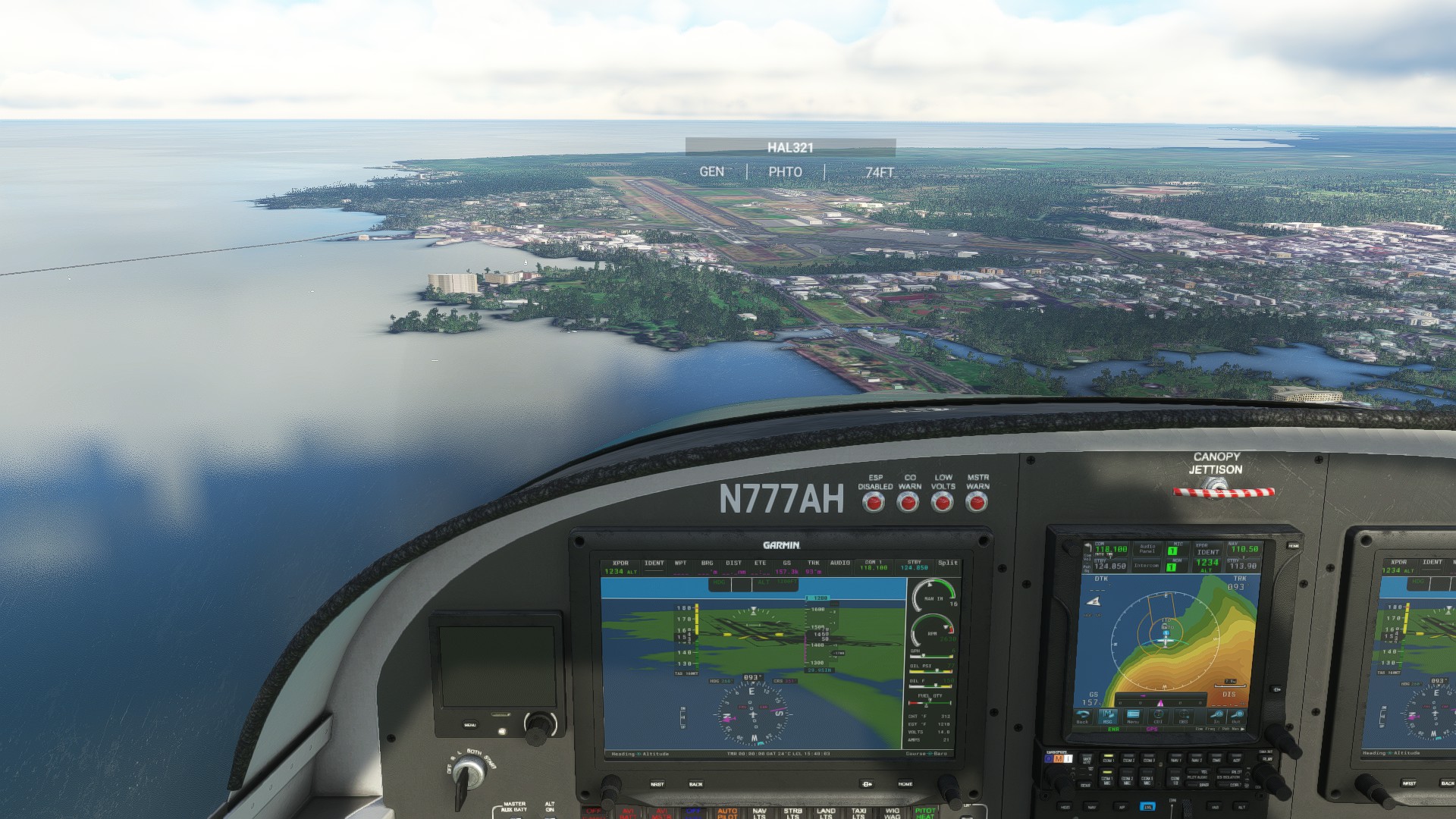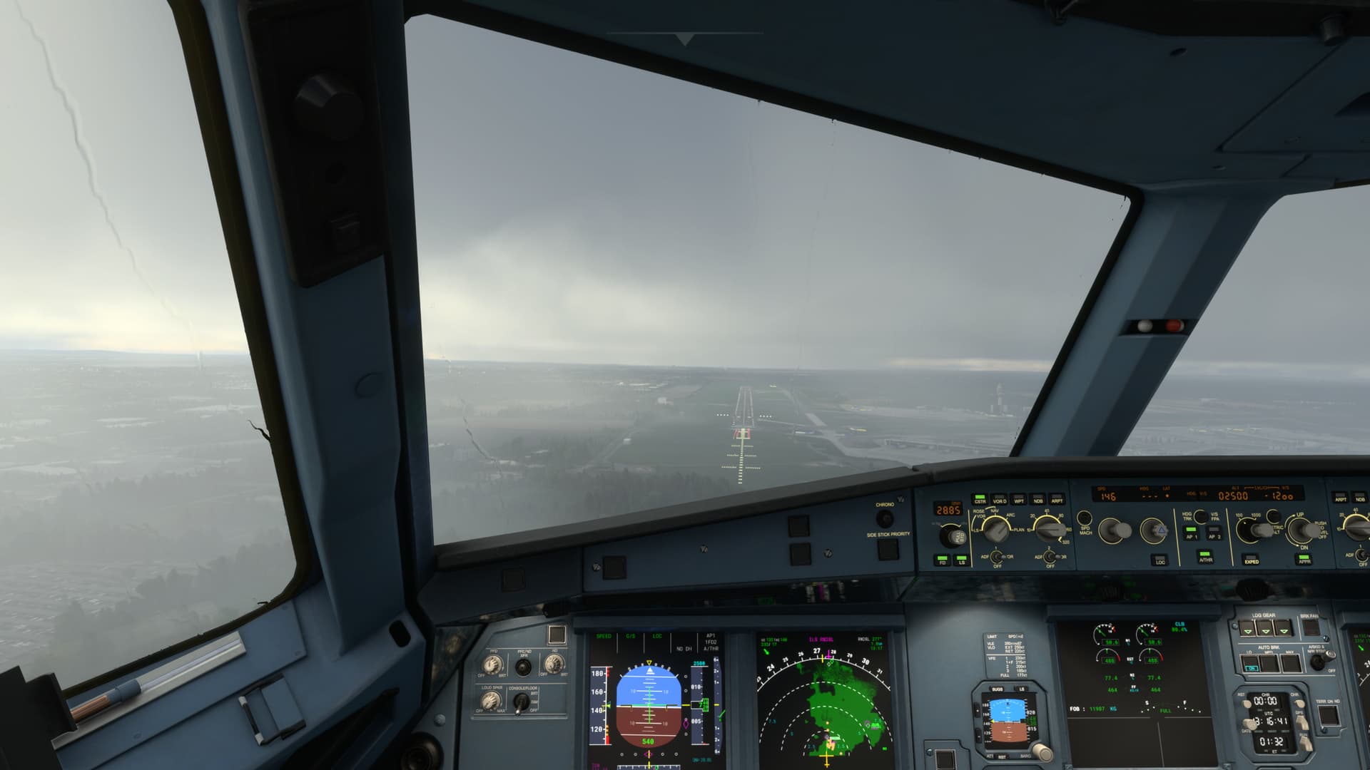 Circled around to hit the flight path (mine). Very difficult to keep aligned with the runway. Very slow to respond to changes of direction resulting in over correction and see-sawing. (maybe me being used to small planes).