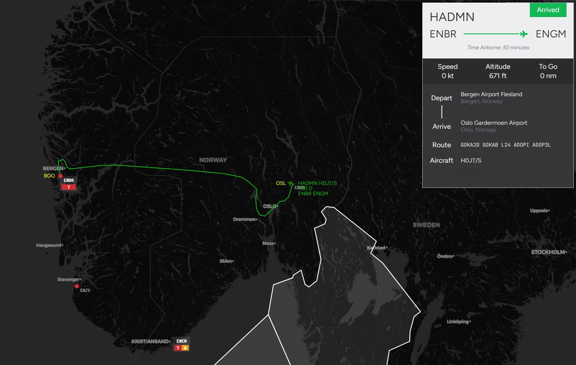 Bergen (ENBR) to Oslo (ENGM) in the HondaJet: