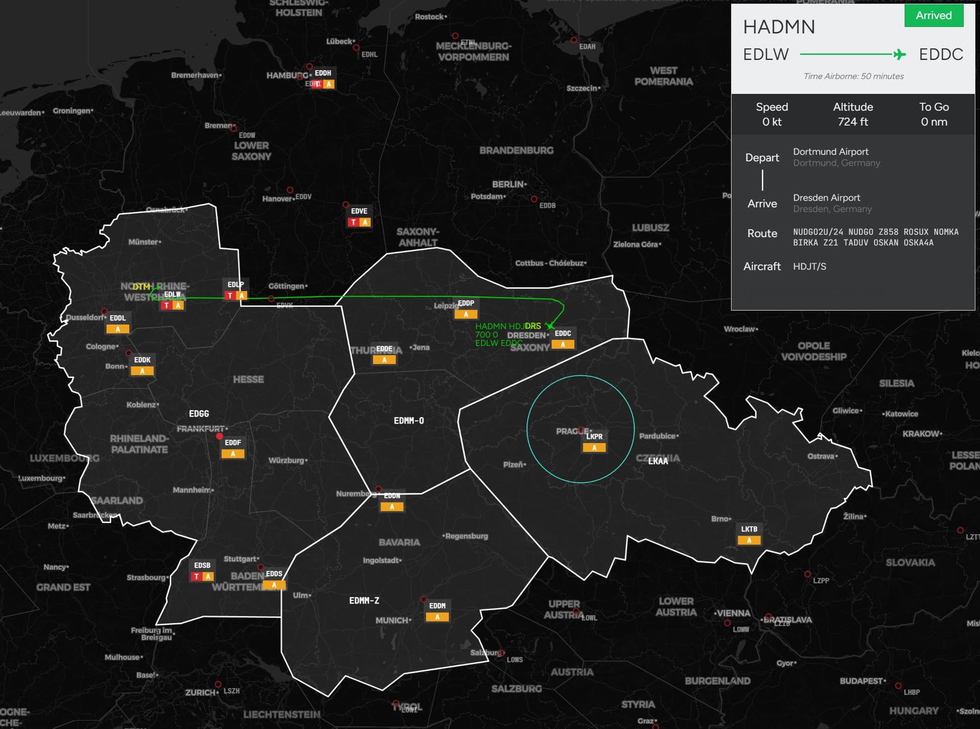 There was a good ATC coverage in Northern Germany so I decided to do Dortmund (EDLW) to Dresden (EDDC) in the HondaJet: