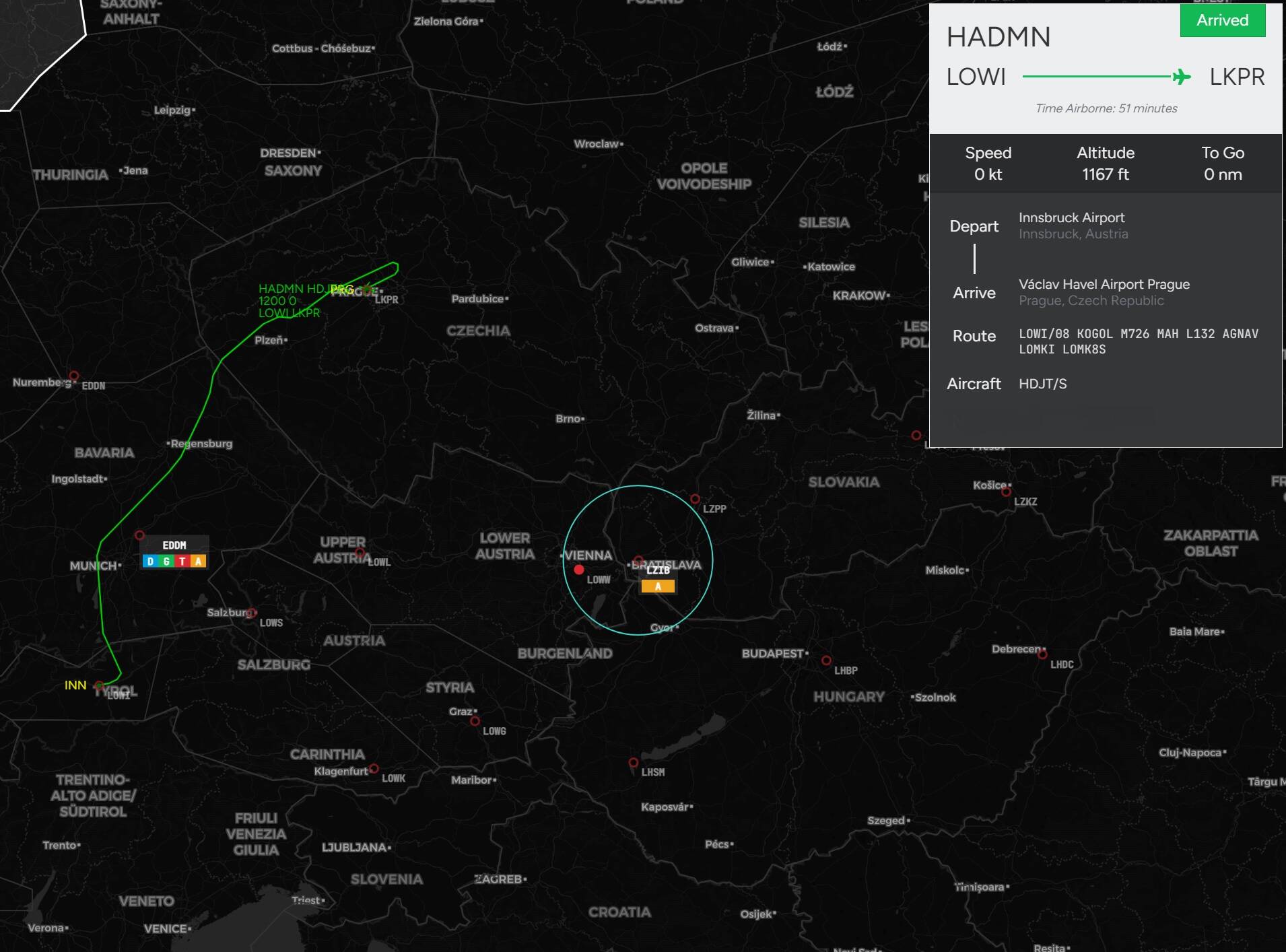 Friday night flight from Innsbruck (LOWI) to Prague Ruzyne (LKPR). I did fly Z-5 hours though, I prefer daylight for flying: