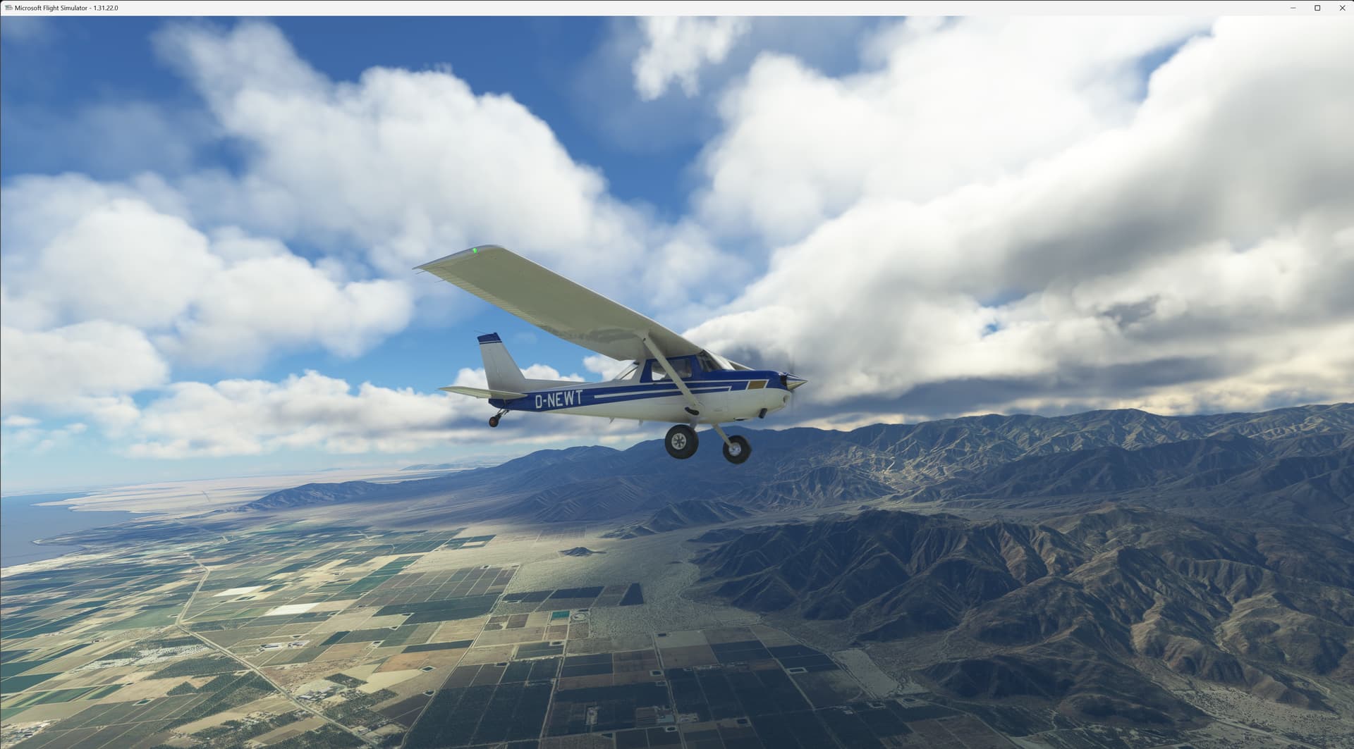 L08 to KPSP via the pink line. The desert scenery and clouds are soothing, and the propeller lulls me into childhood memories of camping around Borrego Springs and Ocotillo. Bit of a crosswind landing at KPSP, IRL I would most likely not be flying with quite so much crosswind. But that is why we have Flight Sim!! I am really enjoying the WBSim/JPL C152.
