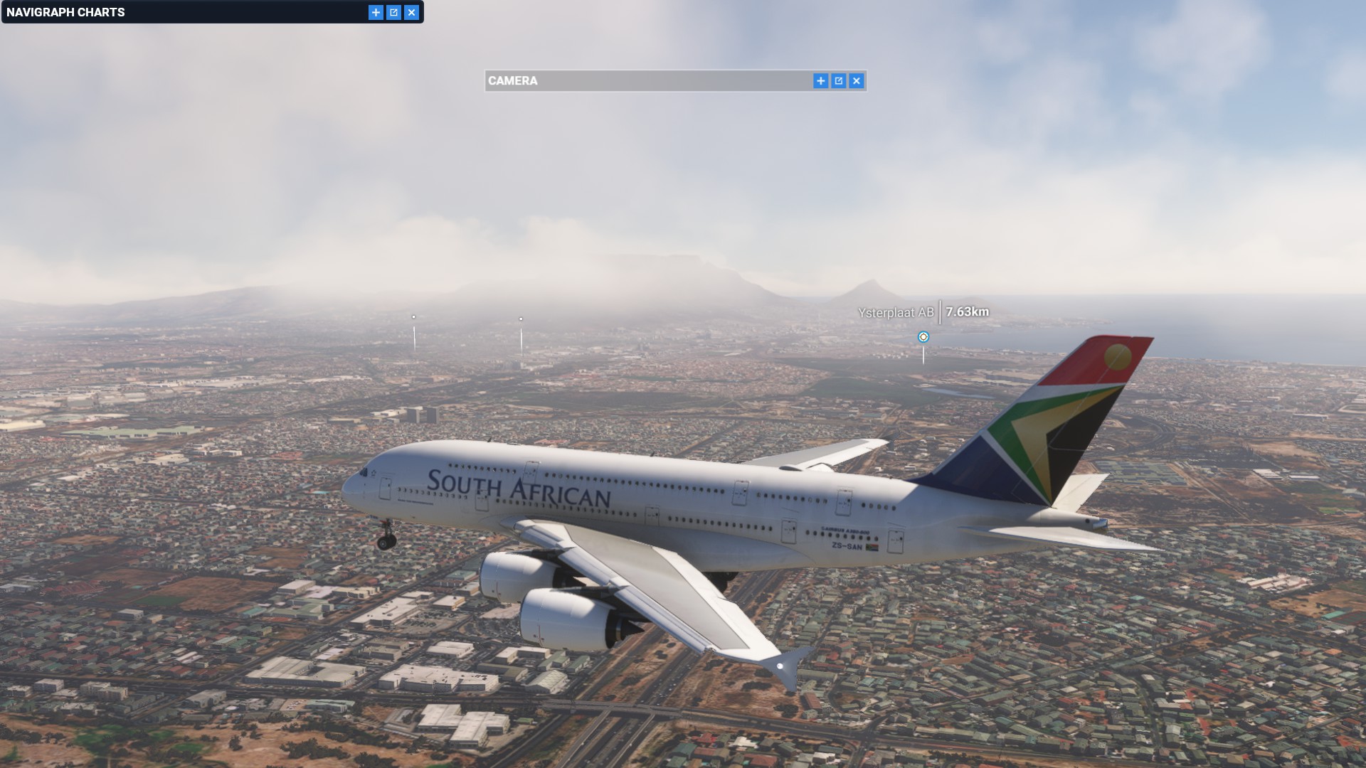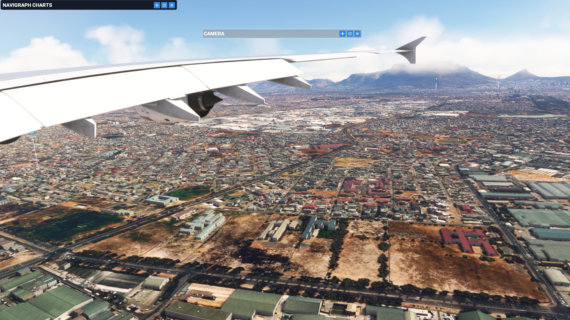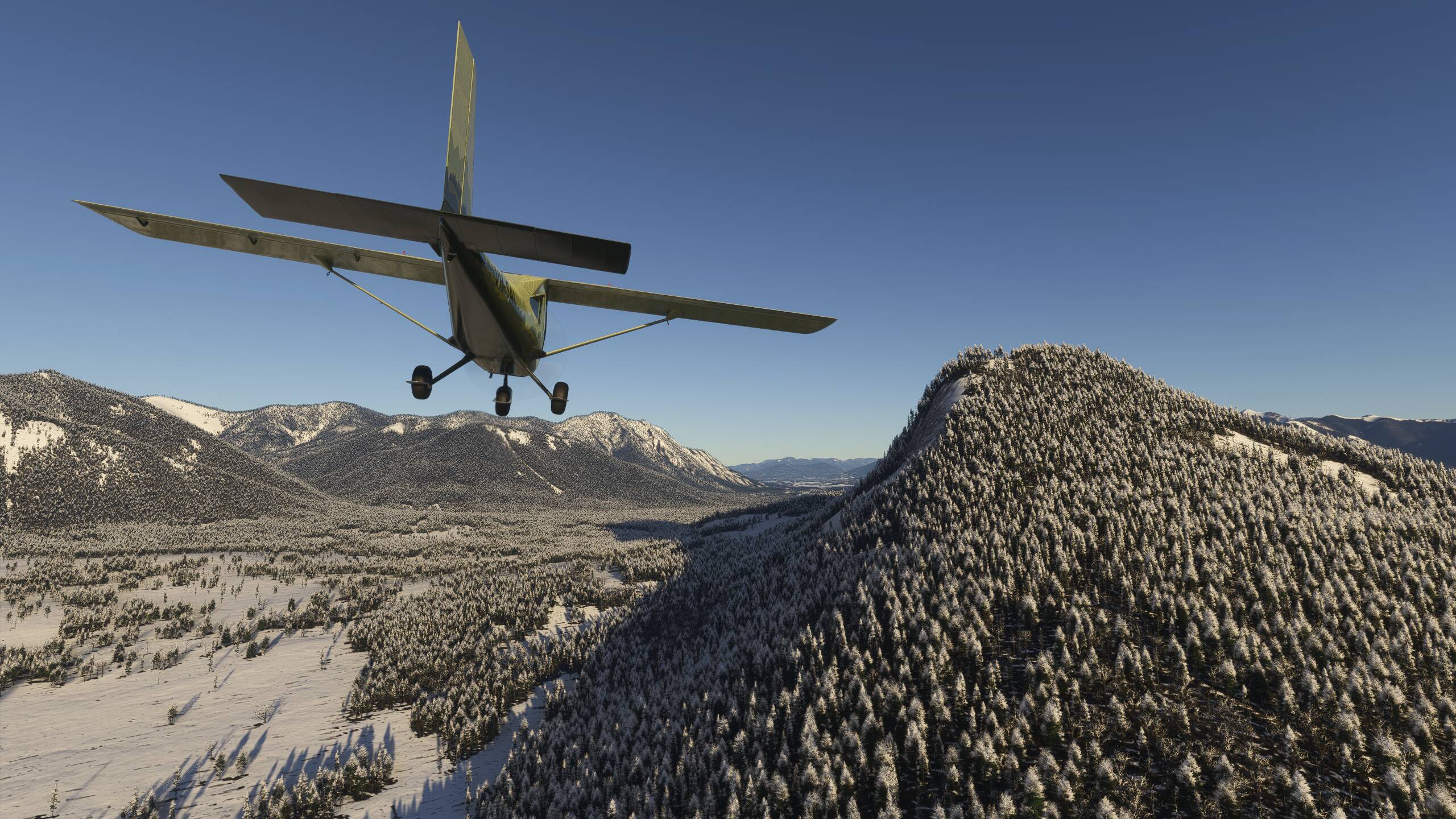 I had to make a stop before venturing into the range. Microsoft’s online Flight Planner has two airfields along the river at the Western edge of the mountains, whereas the sim has their Nav-aids but not the airstrips and instead has an airport between the two which the planner doesn’t have. I feel like I’m flying into the ends of the earth with out of date charts.