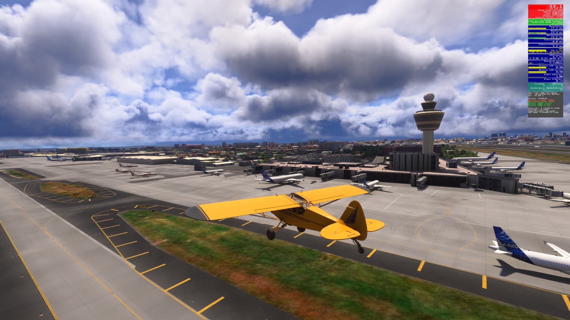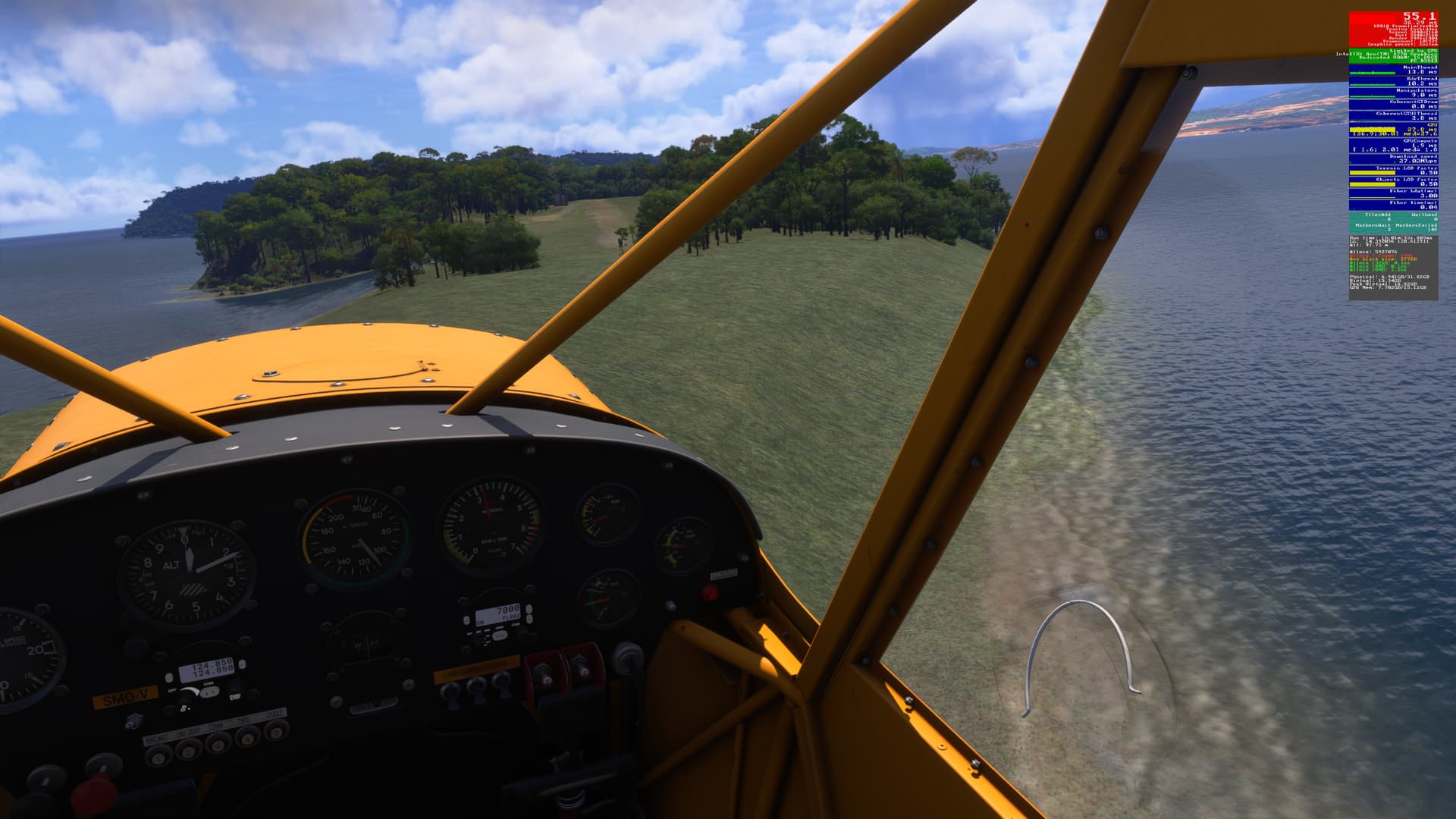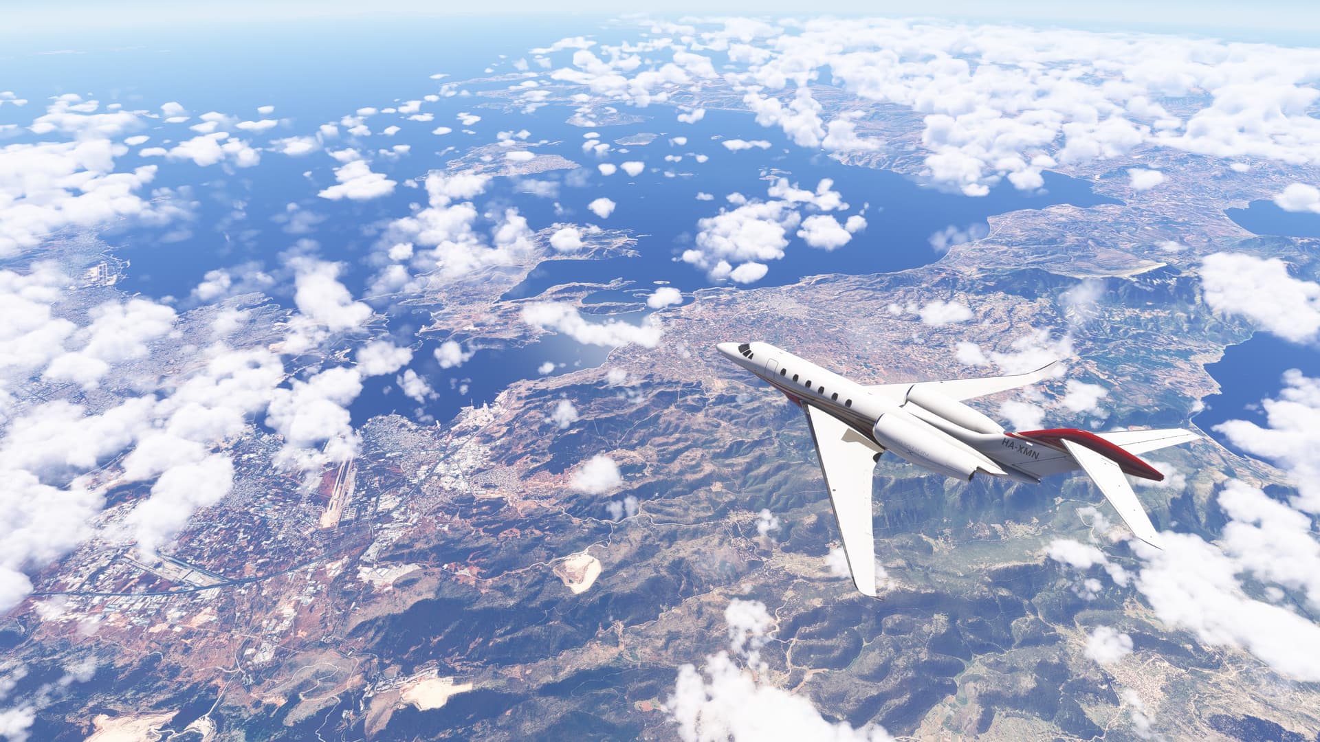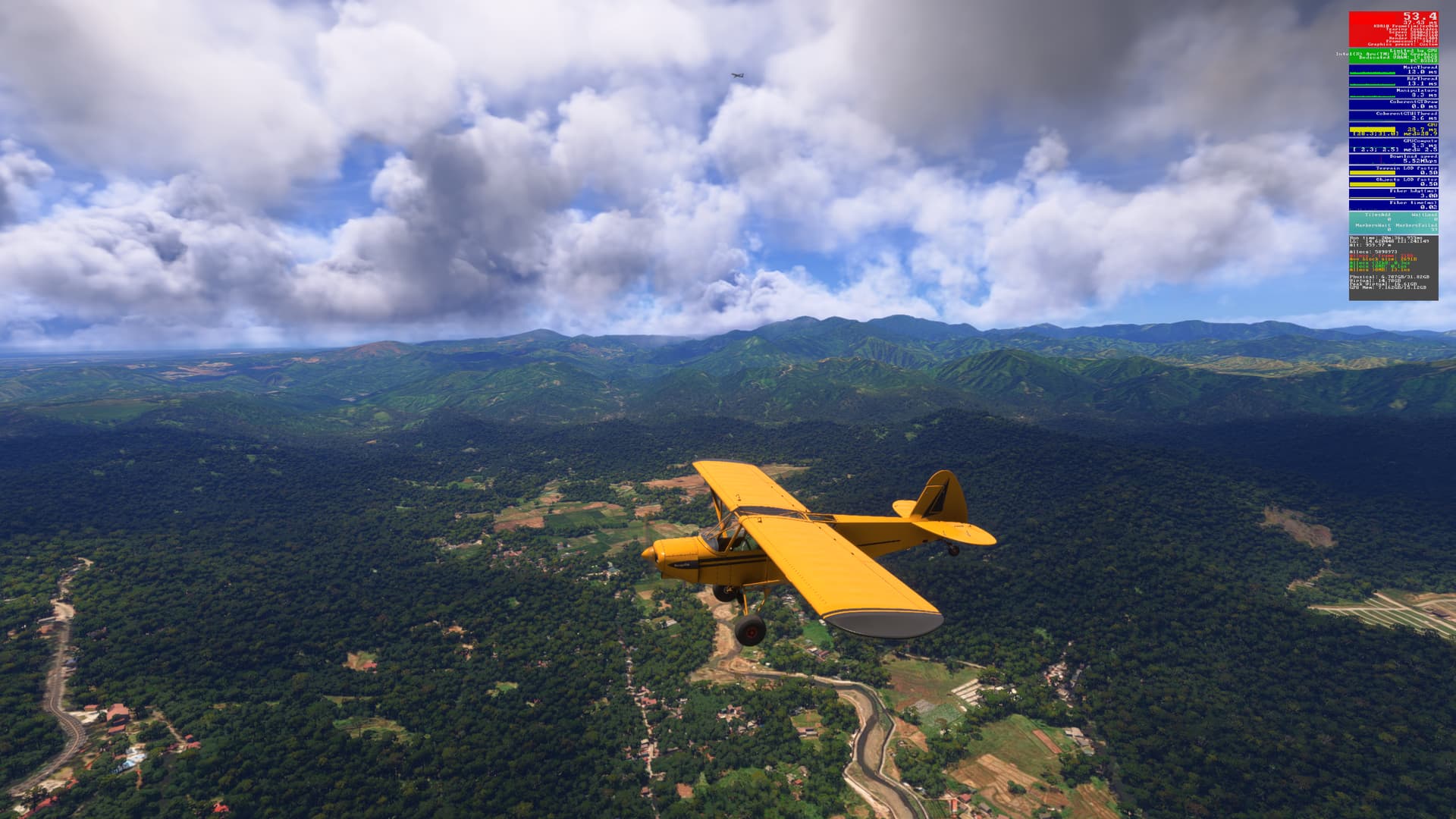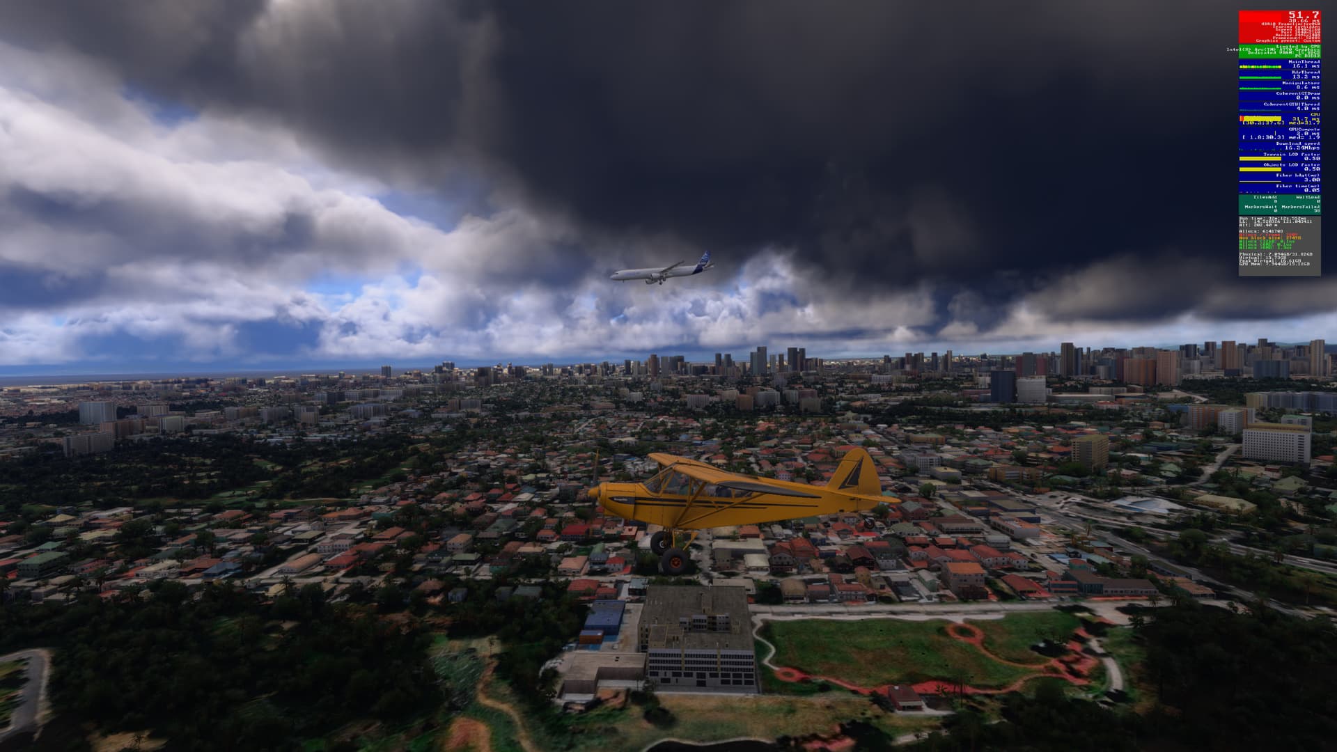 Sandwiched at 16,000 ft between two cloud layers. The upper layer is visually not too good (Volumetric Clouds = Ultra):