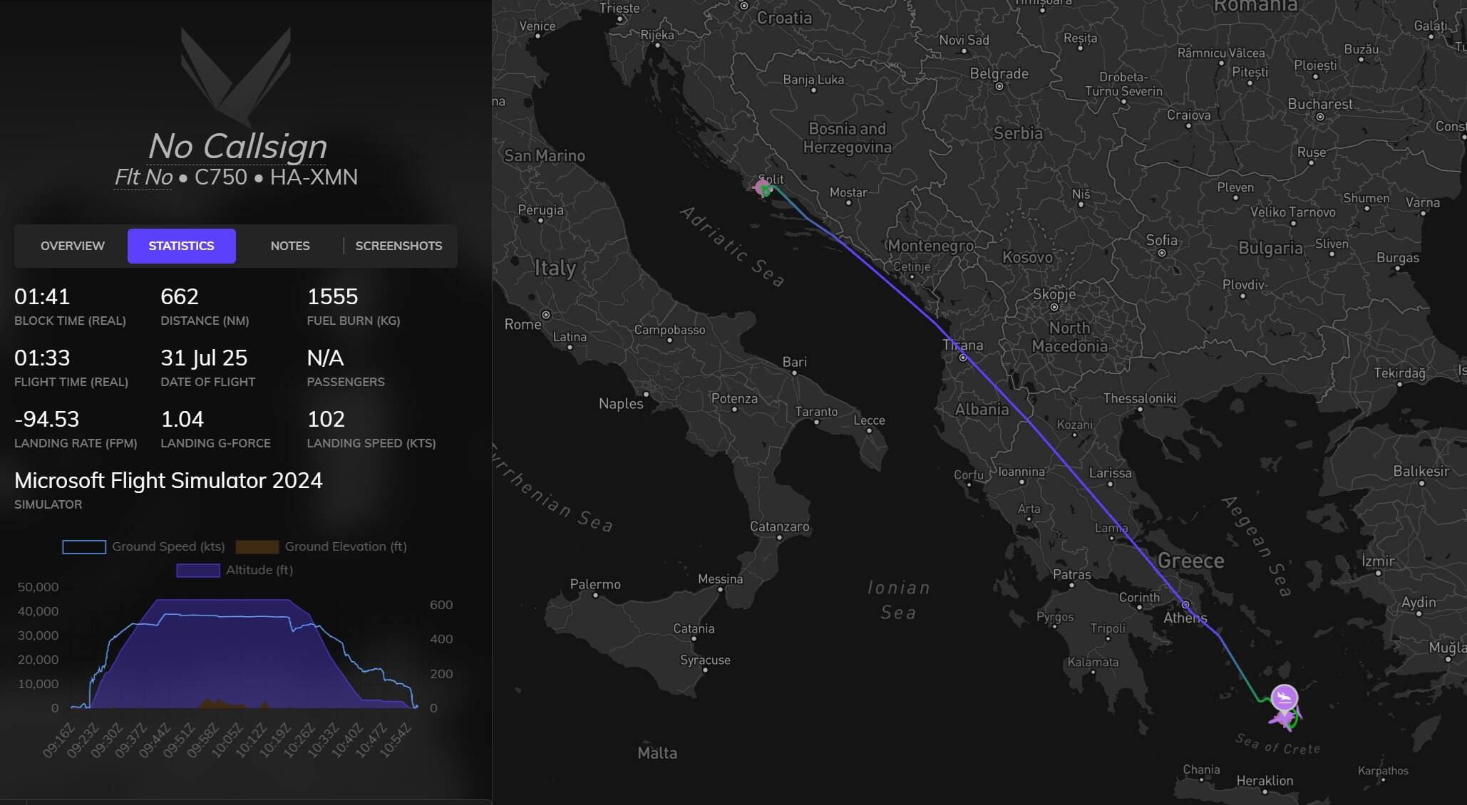 Tok the Citation X from Split Kastela (LDSP) to Santorini (LGSR) on BeyondATC: