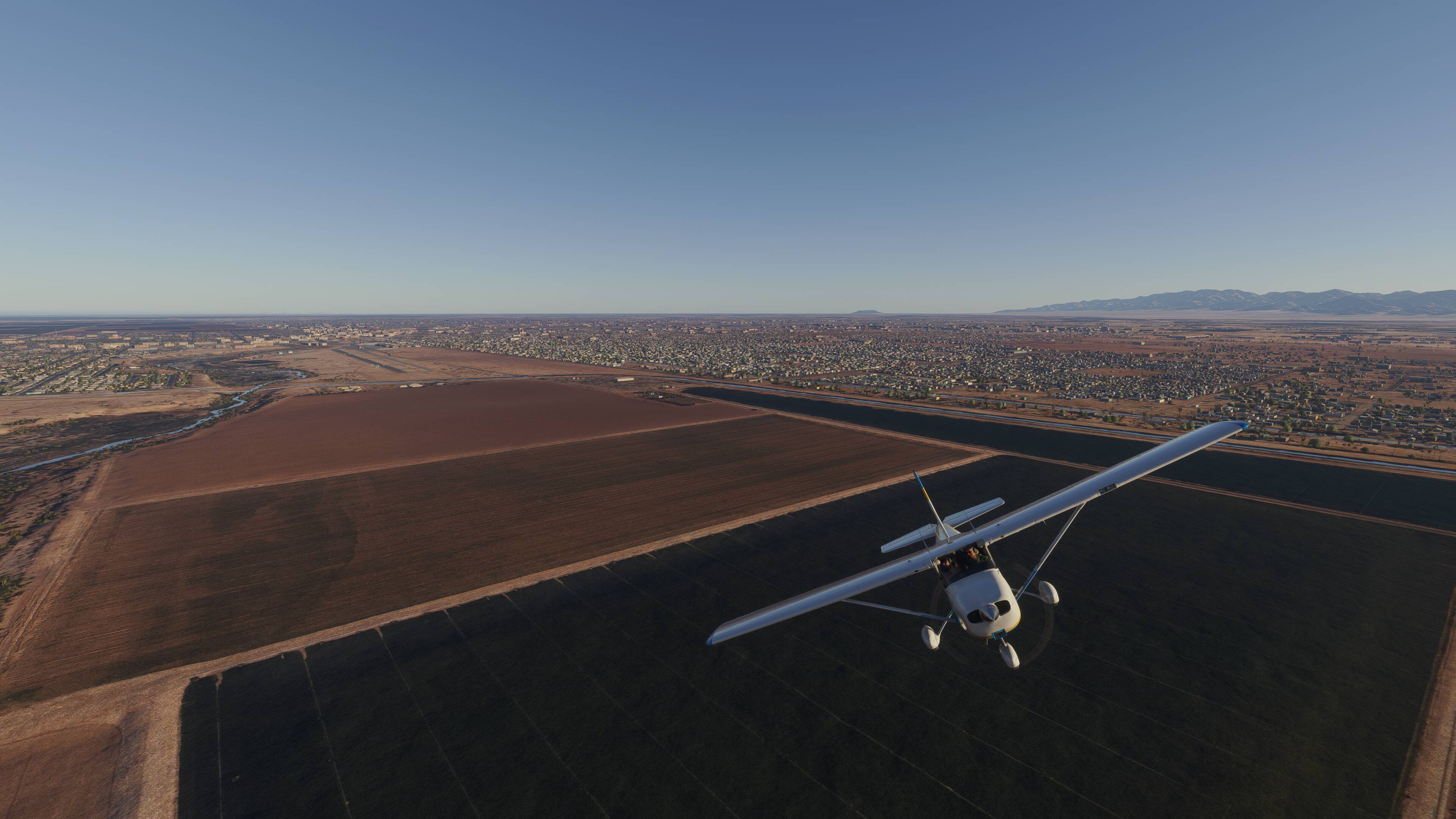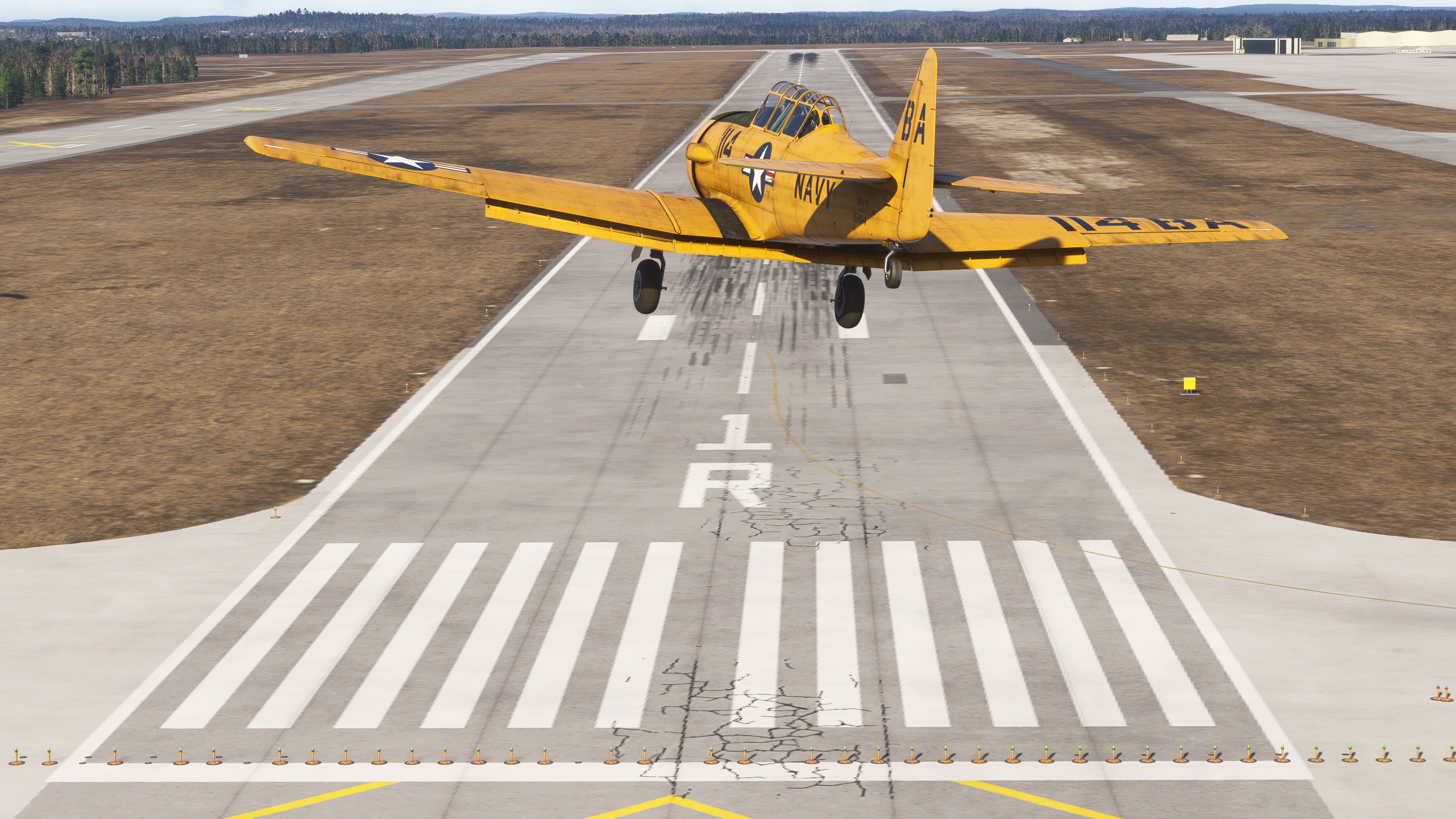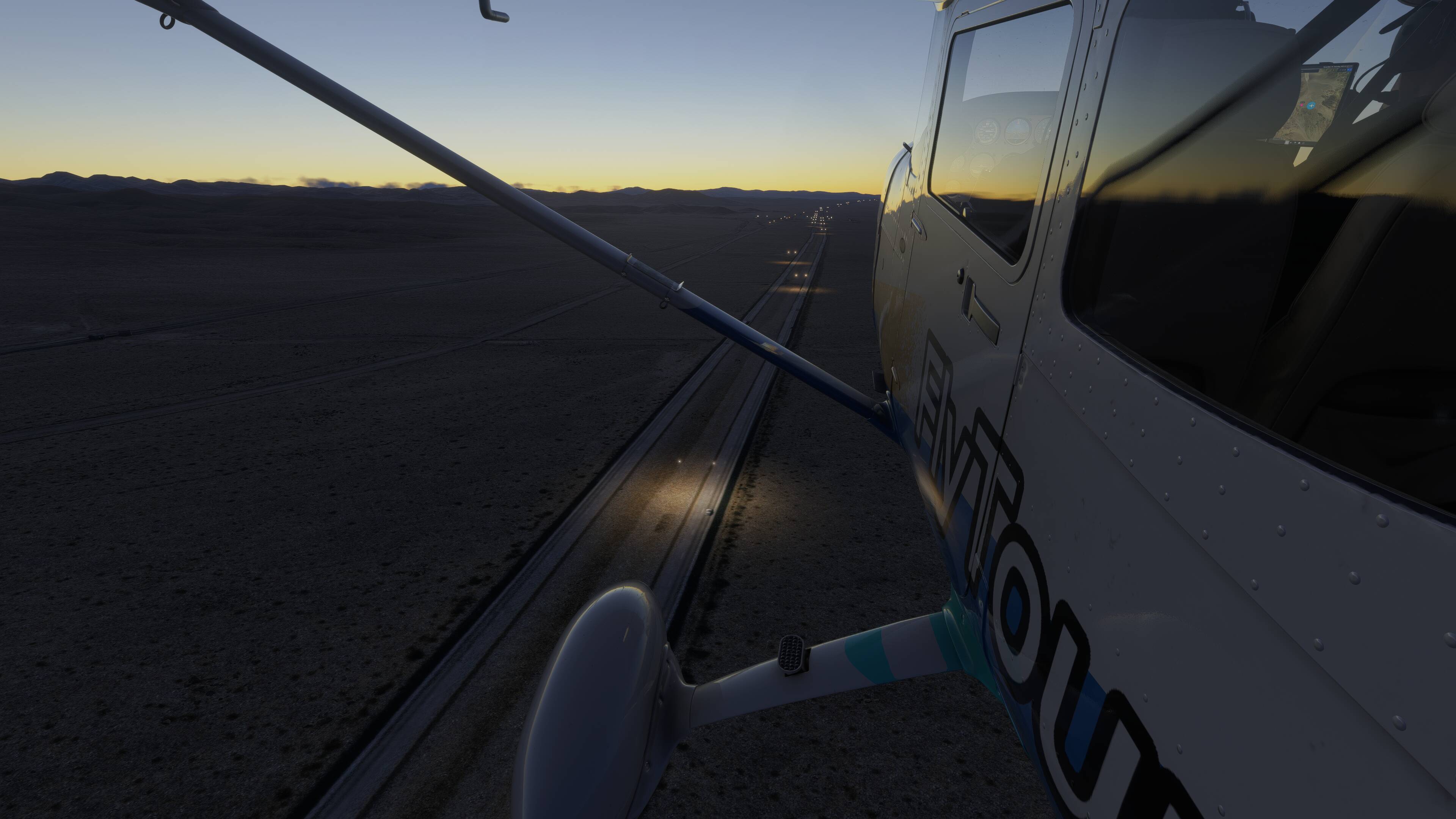 Nope. Wrecked it twice before it landed at what looked like a walking pace on my third reset. Super frustrating. This thing is like a leaf in a hurricane when Live Weather winds are above 20 knots. It wants to fly way, waaay too early. It’ll prematurely launch into the air on take-off unless you hold the stick forward, and when you finally do wrestle it on to the pavement on the landing, you’re basically at taxi speed and you can stop in a few feet. It’s like the wind is creating an enormous amount of lift when you’re still in ground effect. Screw it, I’m moving on from this leg and any notion of continuity in this aircraft’s condition.