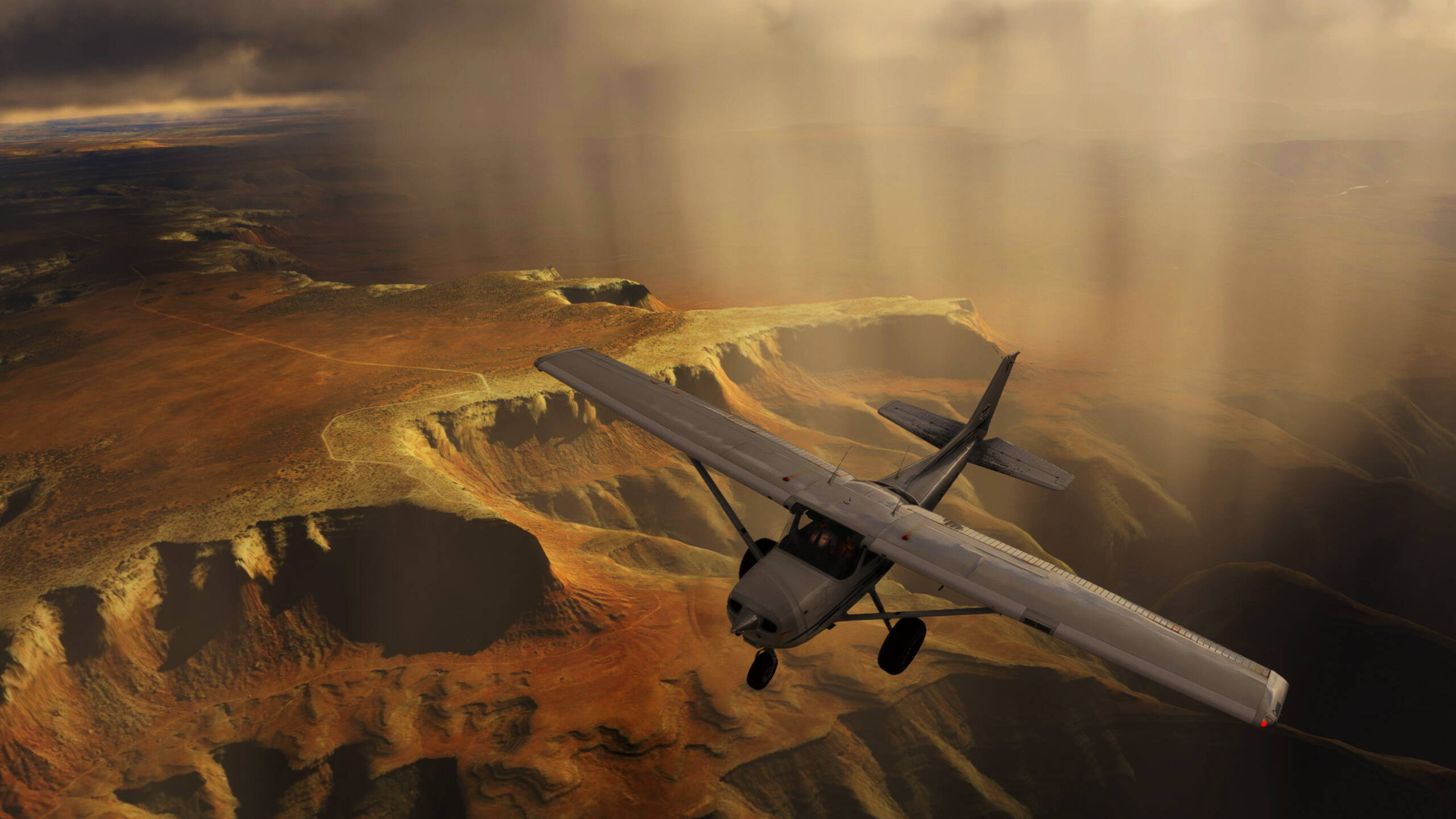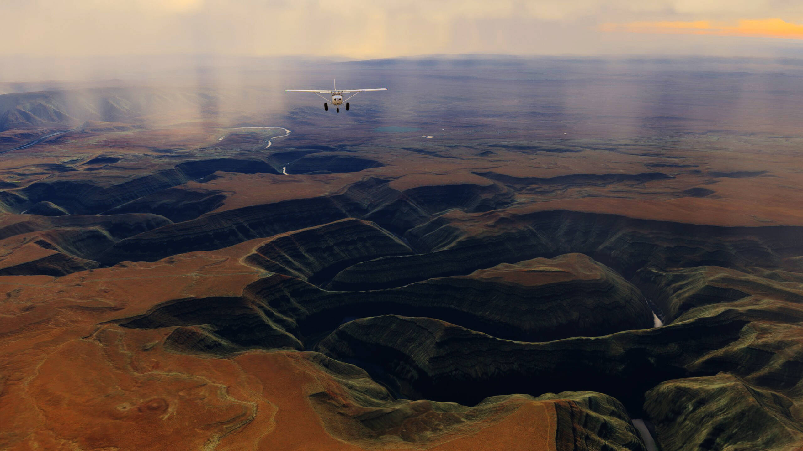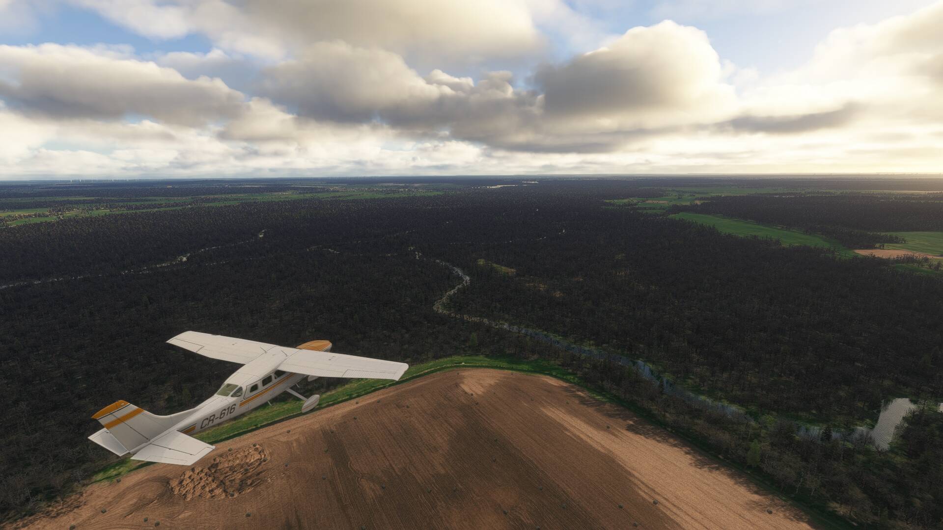 Nope. Wrecked it twice before it landed at what looked like a walking pace on my third reset. Super frustrating. This thing is like a leaf in a hurricane when Live Weather winds are above 20 knots. It wants to fly way, waaay too early. It’ll prematurely launch into the air on take-off unless you hold the stick forward, and when you finally do wrestle it on to the pavement on the landing, you’re basically at taxi speed and you can stop in a few feet. It’s like the wind is creating an enormous amount of lift when you’re still in ground effect. Screw it, I’m moving on from this leg and any notion of continuity in this aircraft’s condition.