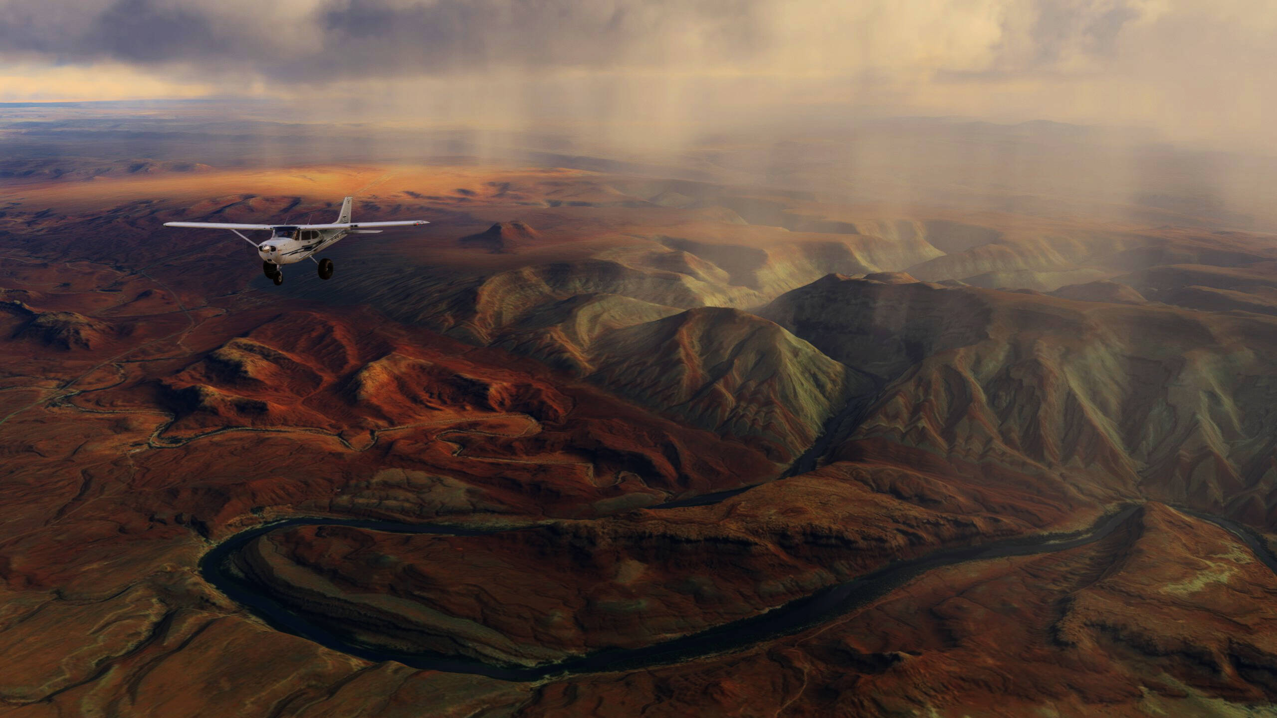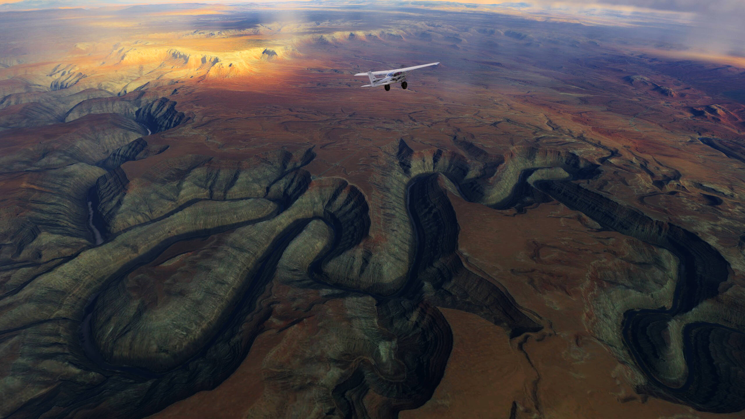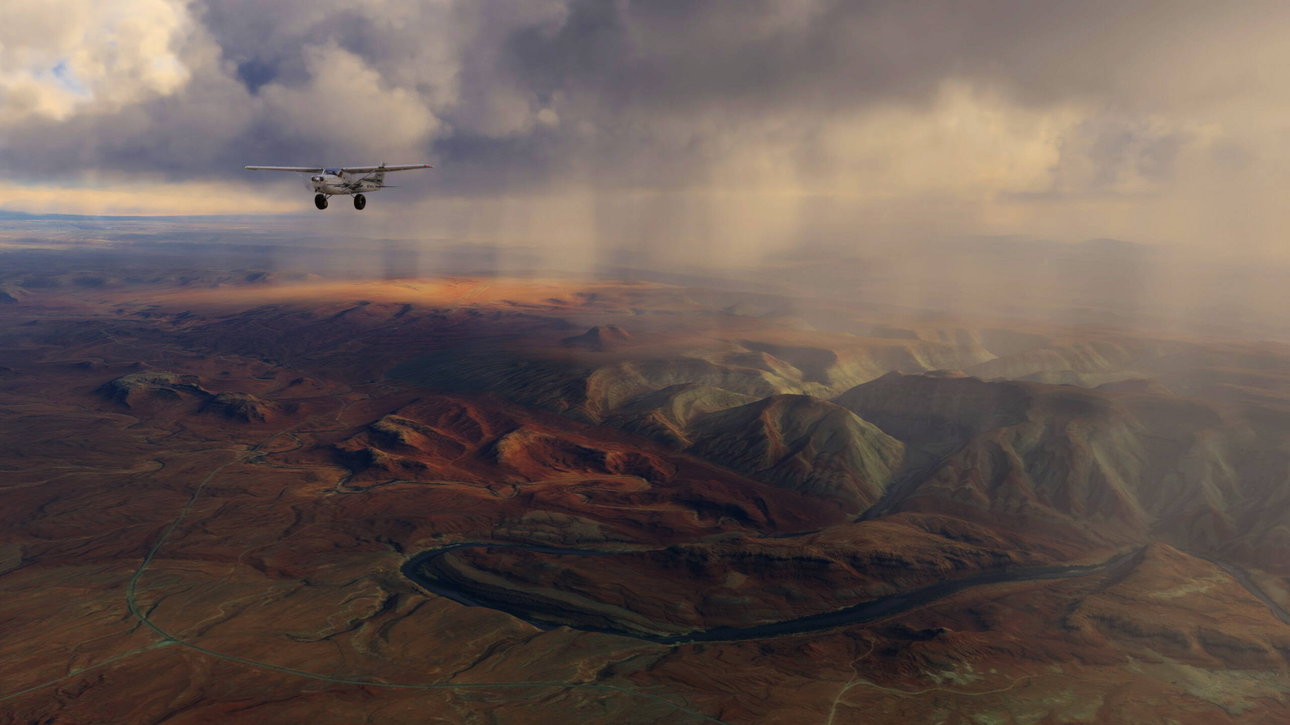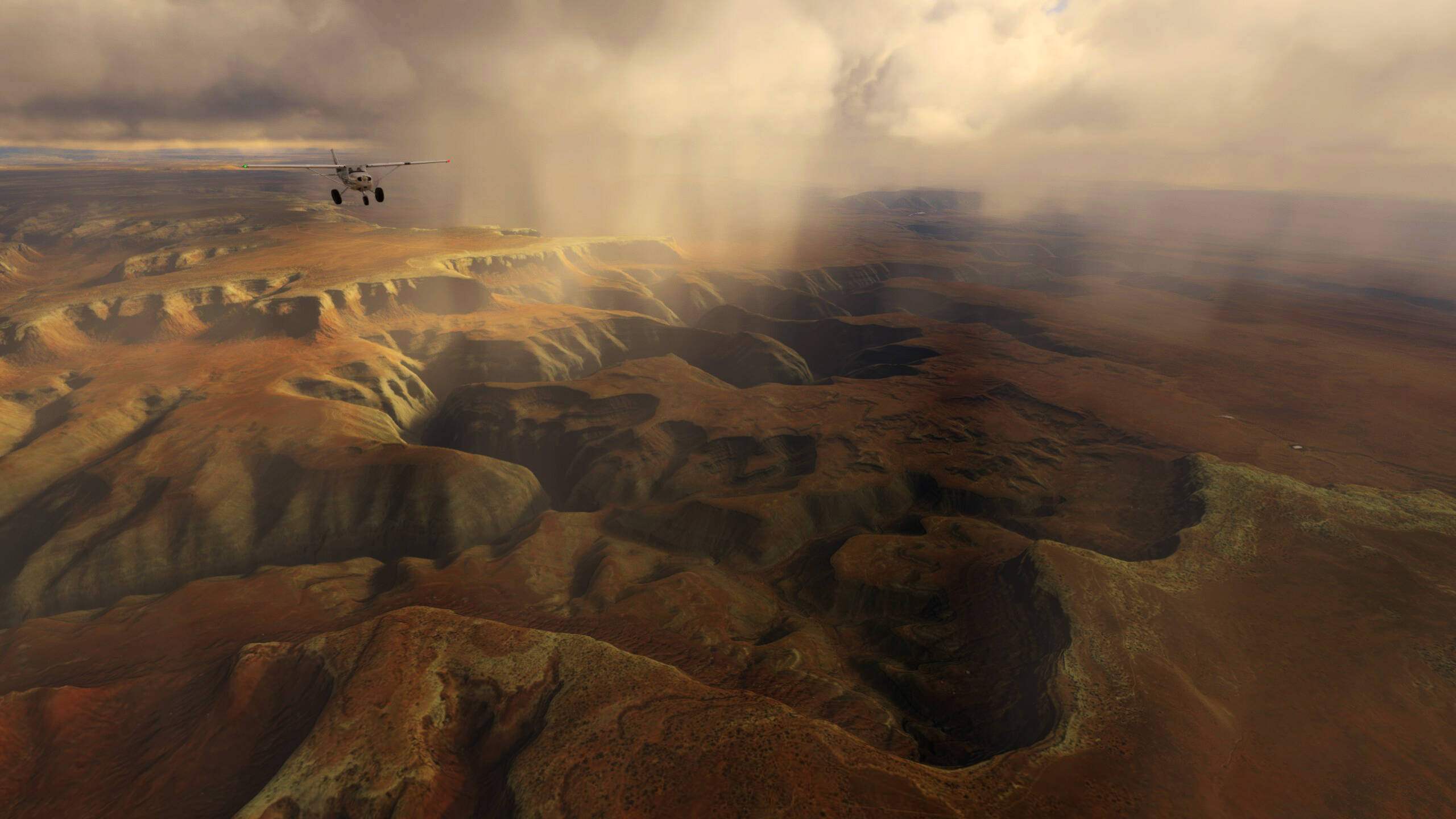 Explored the Goosenecks State Park, Utah, U.S.A., in real-weather, real-time. Then landed in the Monument Valley, which is only about ten minutes from the Goosenecks. The flight ceiling was 11,000 ft, as the ground below was 6,000 ft on average. The natural cloud cover was well above 11,000 ft, so I had no issues with sightseeing.