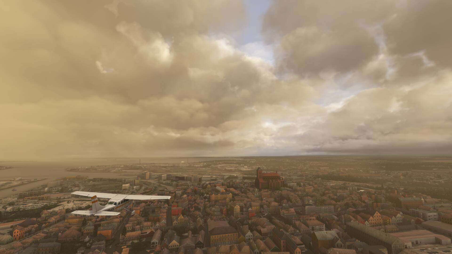 Since I’m unable to travel much in the upcoming years I decided to start a major sightseeing tour in MSFS 2024 instead. I began with a one-hour tour across stormy Schleswig-Holstein, the northernmost state of Germany.