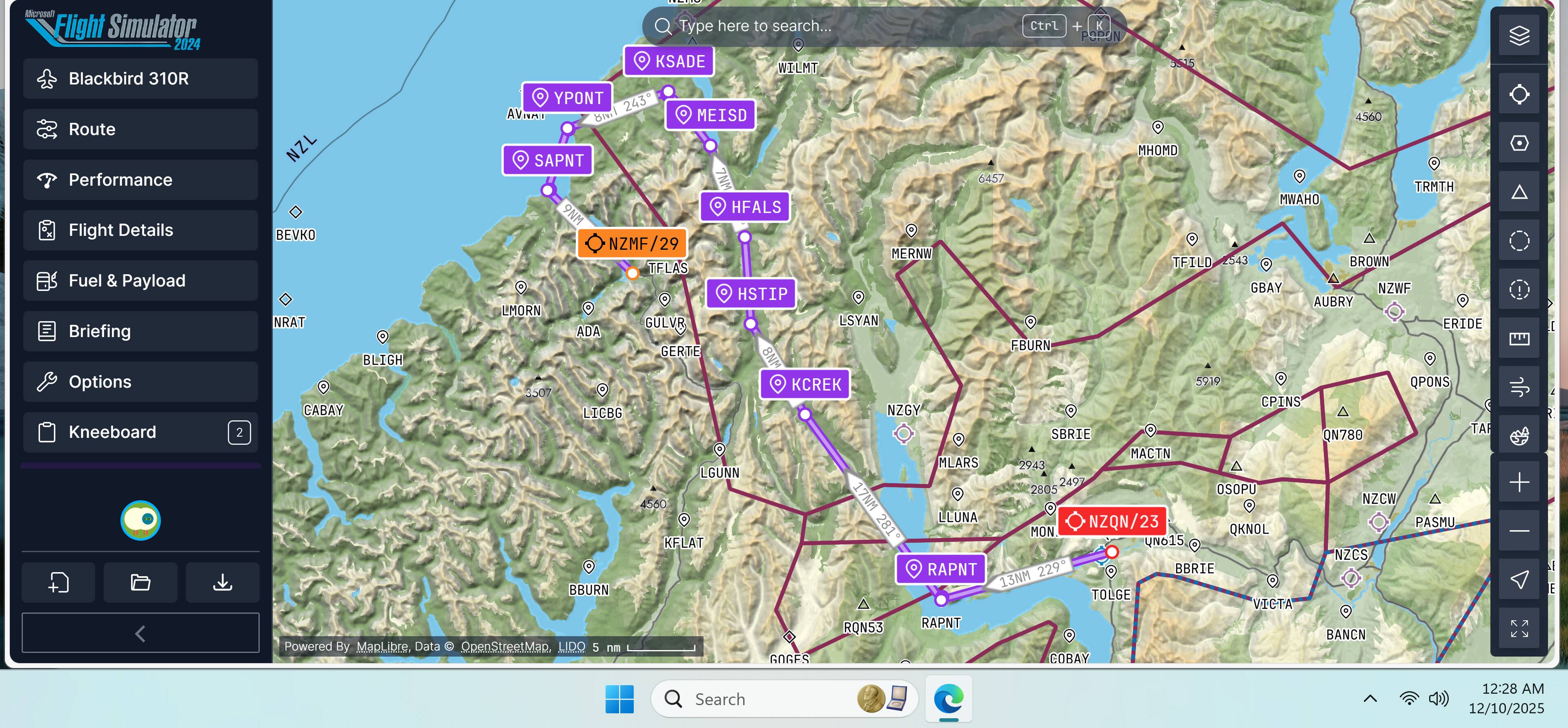 Denver (KDEN) to Ted Steven’s Anchorage (PANC) in the default 787 10 because there was a United flight there from Denver