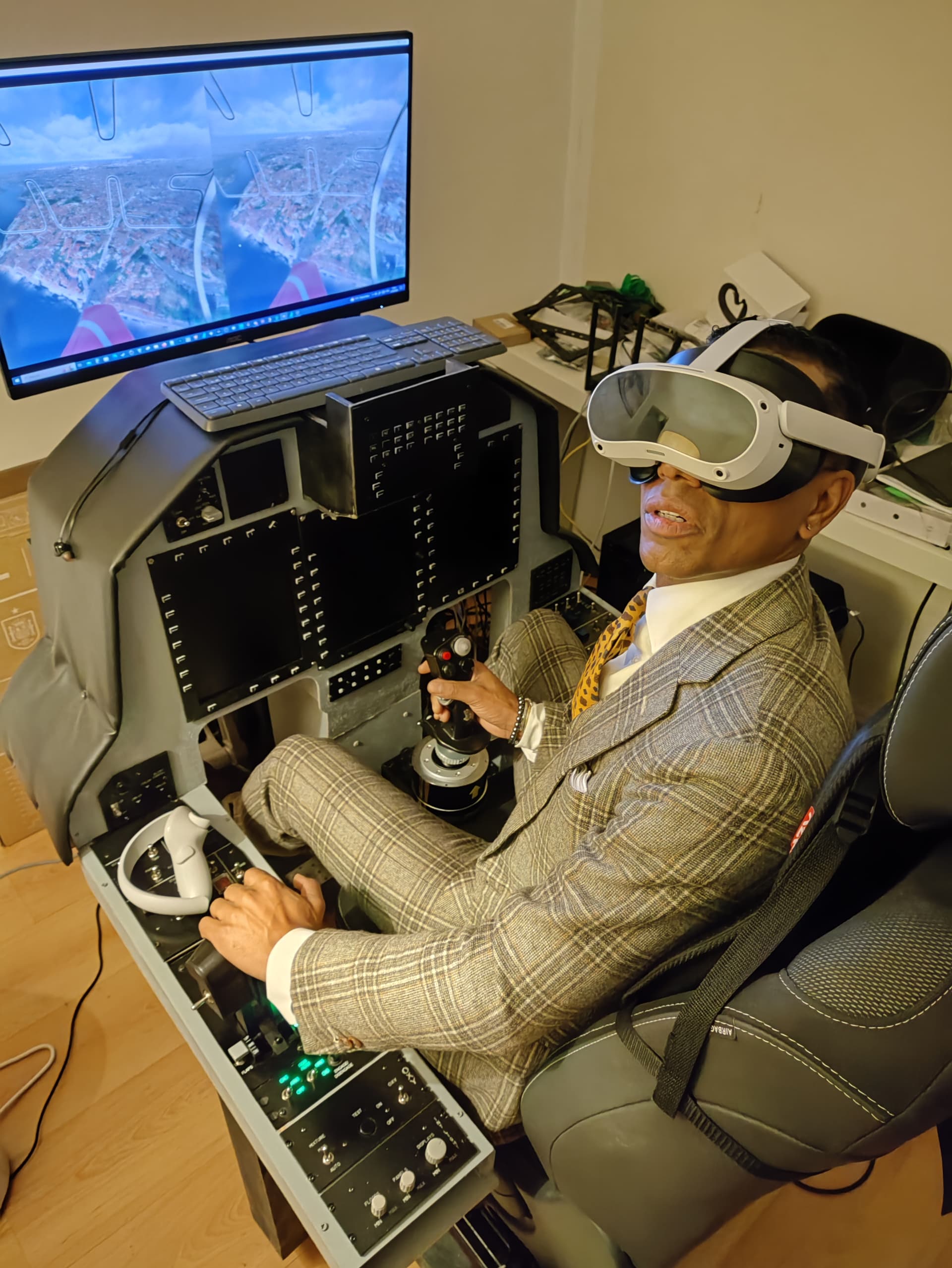 That is a lot of buttons for use with a headset. Do you use mixed reality to see them? Looking very dapper for a pilot there btw ![]()