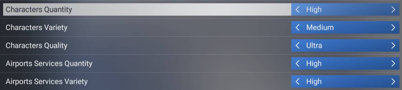 The âcharacter qualityâ need to be at least in âMediumâ to the marsheller and ground workers to be shown. In LOW the FS2024 its considering like âdisableâ wich isnât right.