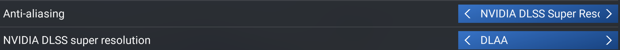 PS I do not have DLAA as an option. I have TAA; DLSS Super; AMD FSR3. DLSS has submenus for Performane/Quality/Balanced etc.