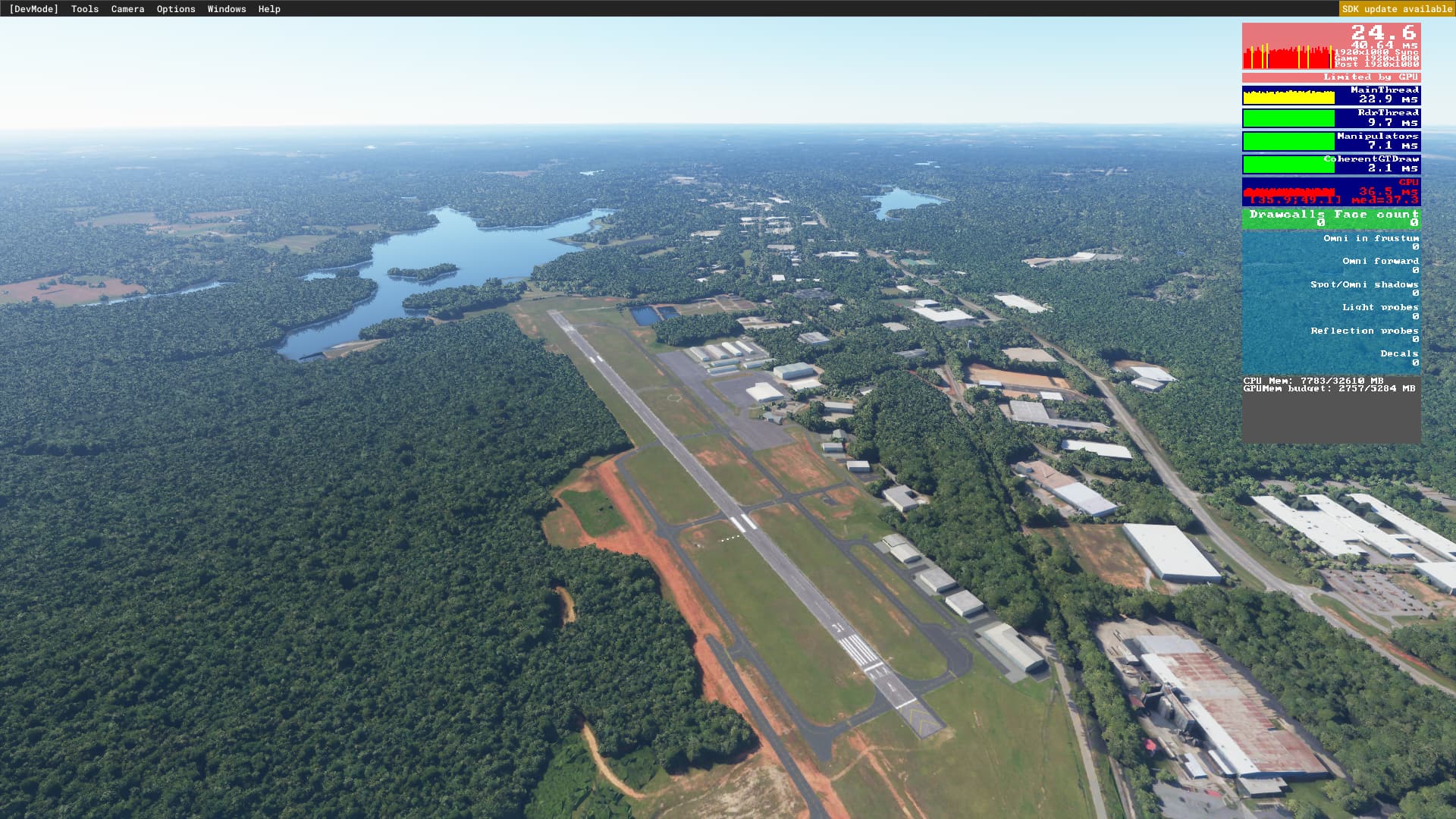 Over PG data I’m CPU limited, the sim has already reduced the draw distance of PG data to be easy on bandwidth. So high object LOD means my CPU can simply send the data on to the GPU which can handle it fine, both happy.