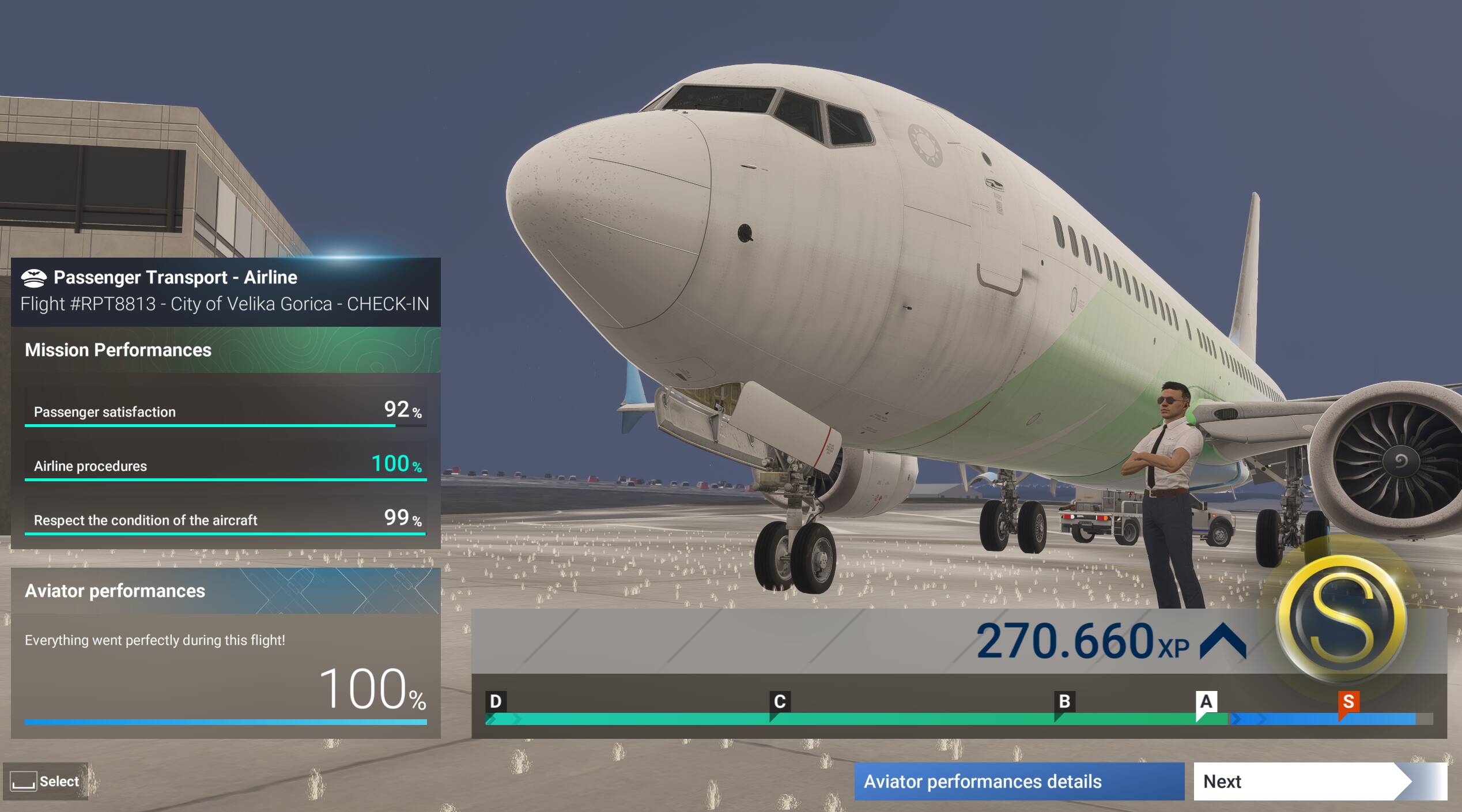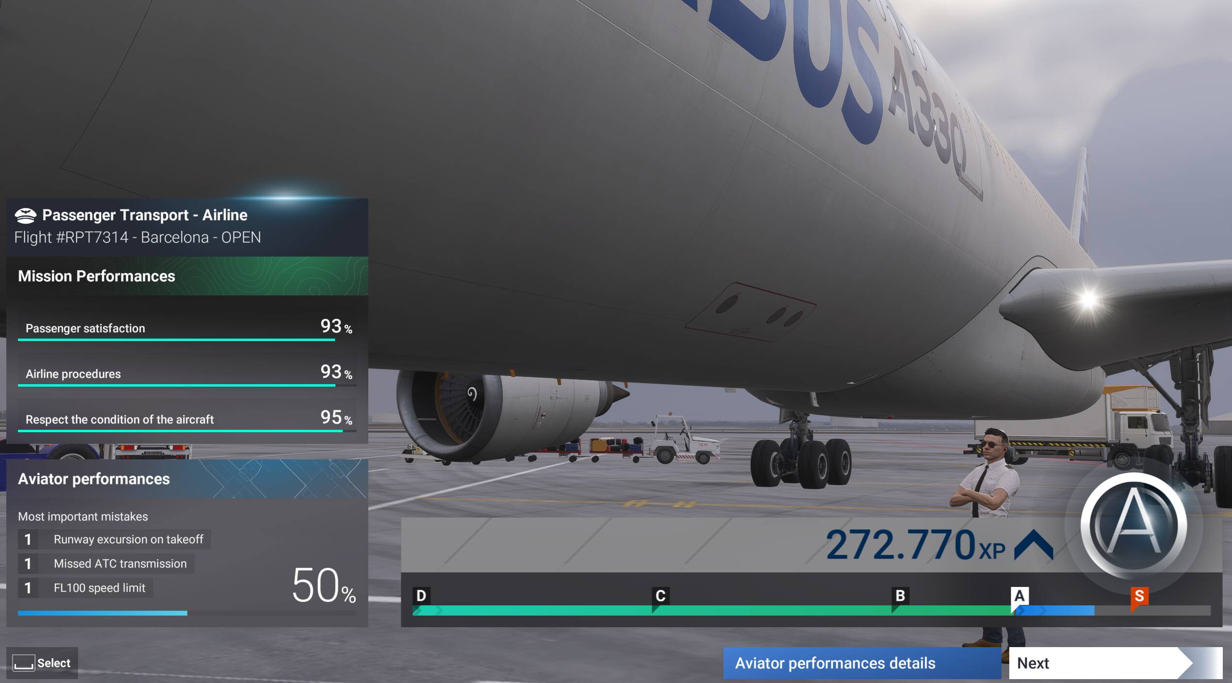 i pick a 30 min mission, never skip anything, did all of these passenger annoucment , plus taxi safety procedure announcement. I still get 95%. the 5% is mysterious. again, you must achieve 0fpm landing, otherwise, you get 1-5% deduction.