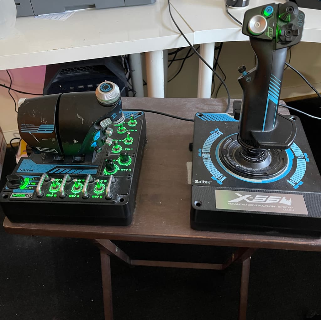 I’ve recently started to build my Windows PC-based MSFS 2020 system. I have a small, narrow computer desk and the monitor,throttle and joystick are on there. However, I want to place the joystick much lower down, just at the end of my chair’s left armrest as it’s too high on the desk for my liking.