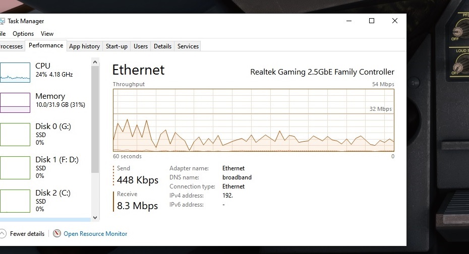 It was downloading at around 10-15 Mb/s which is slow. I then connected to the Internet through my VPN to a different Country ( not UK ) and the download speed reached 62 Mb/s very close to my maximum of 65Mb/s