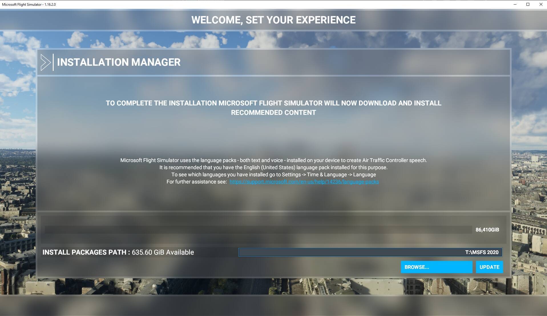 MSFS 2020 Premium Deluxe download size 86.4GB