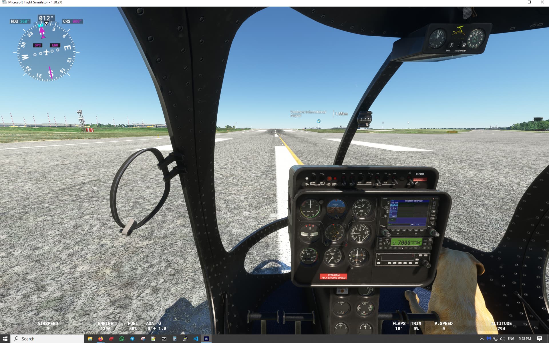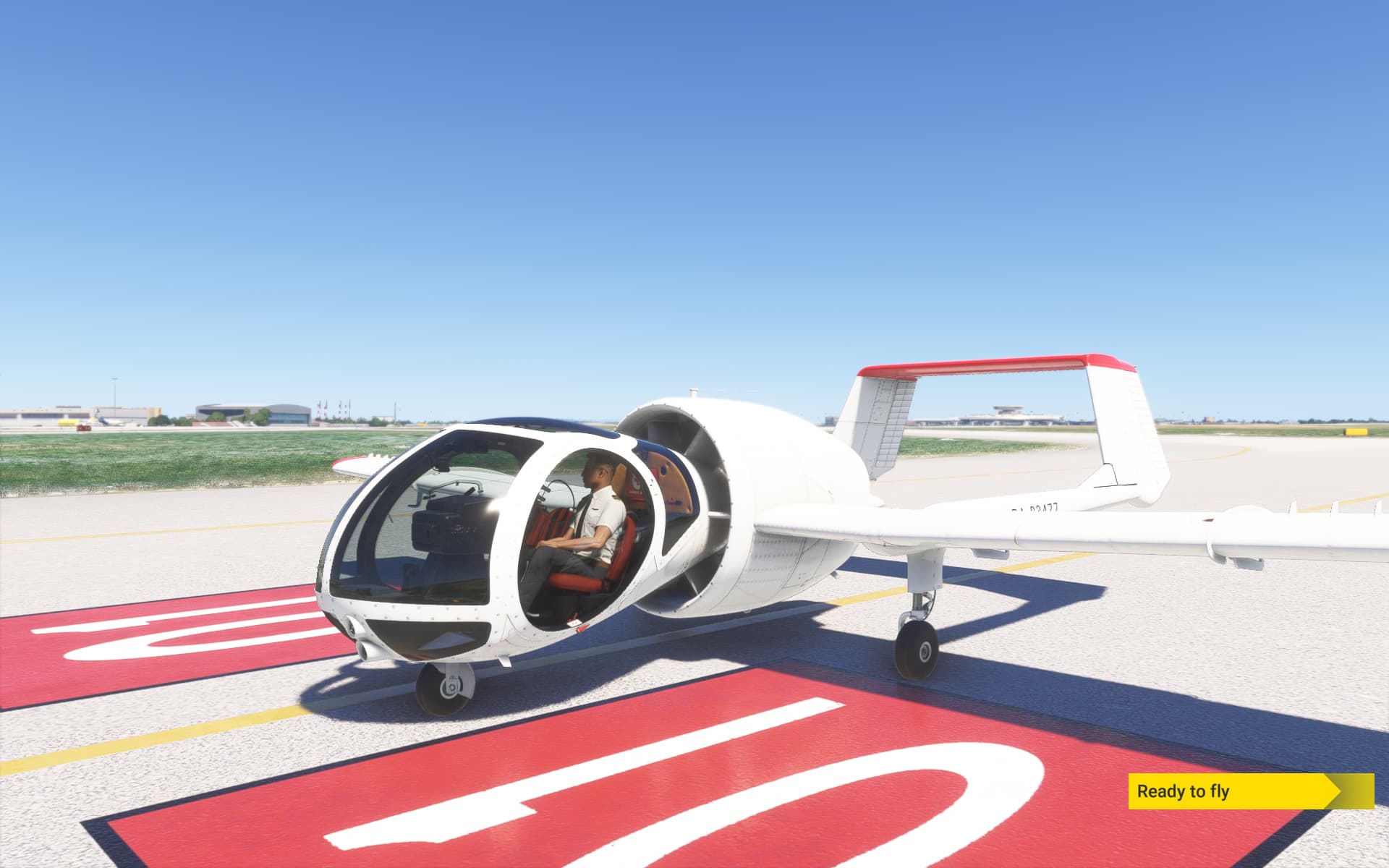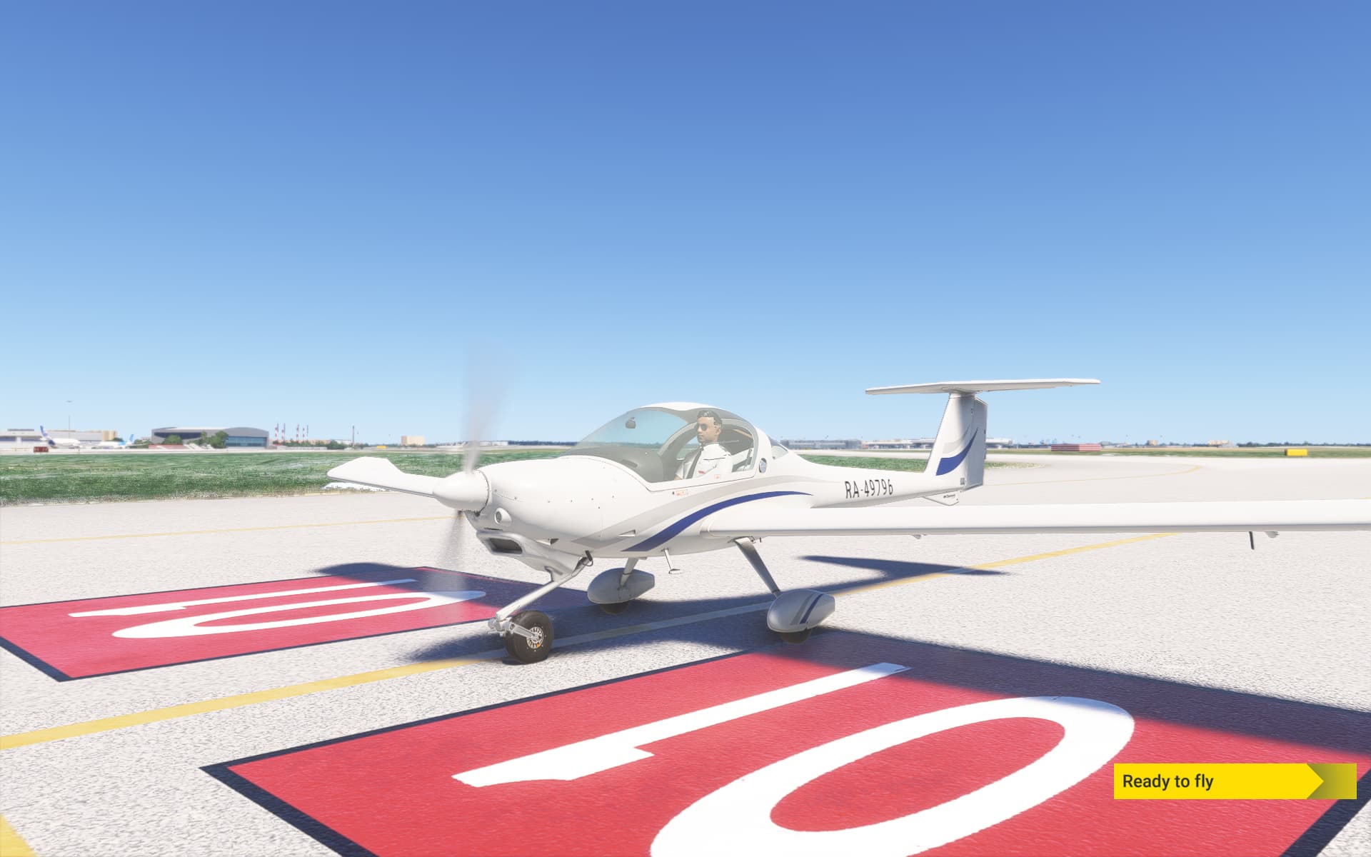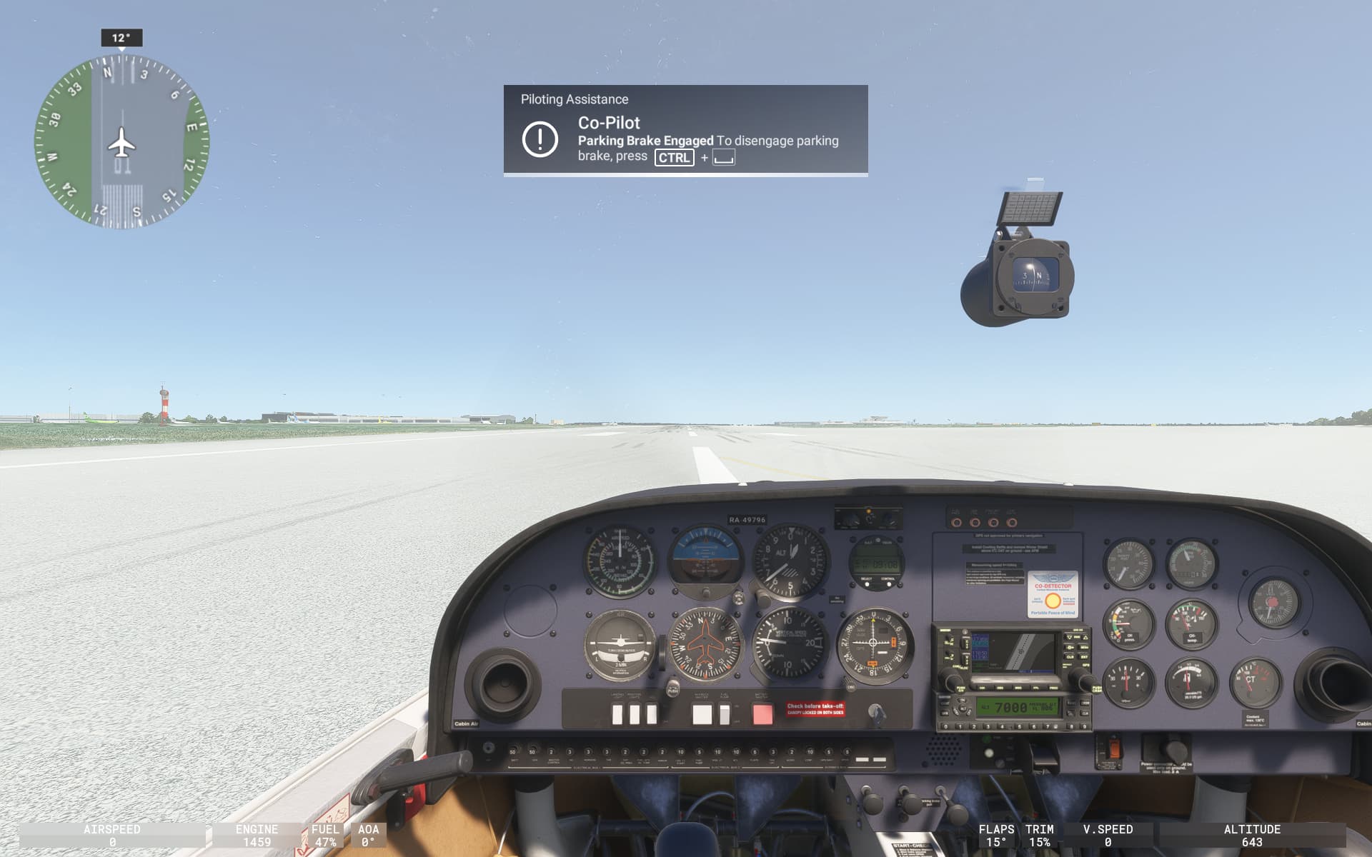 I’m sitting on the runway, brakes set, idle power, and I change the camera view to outside.